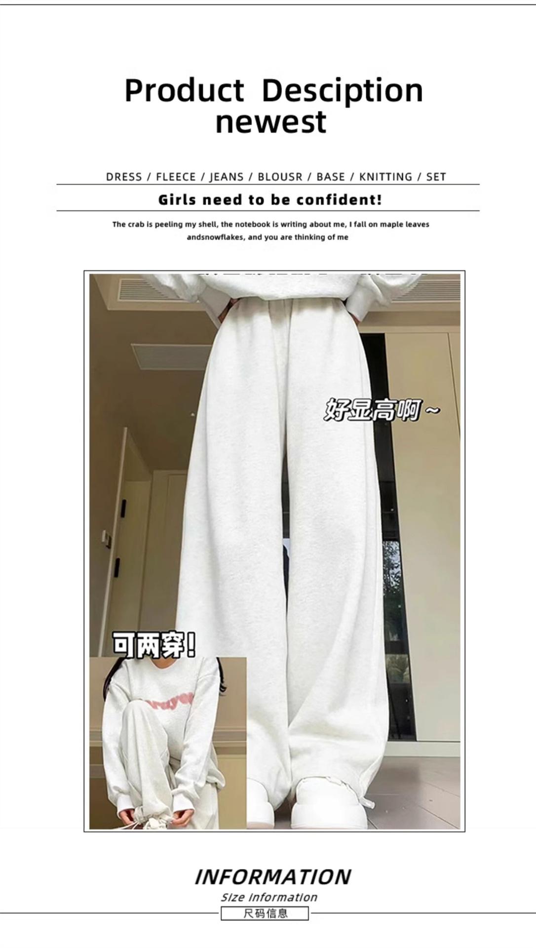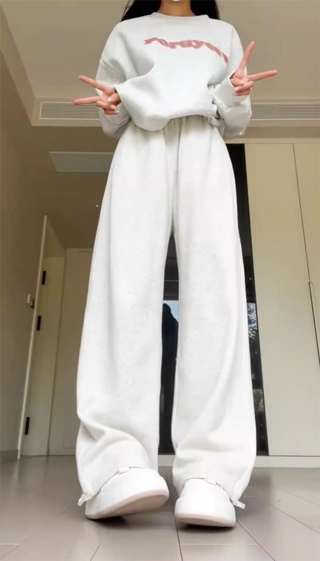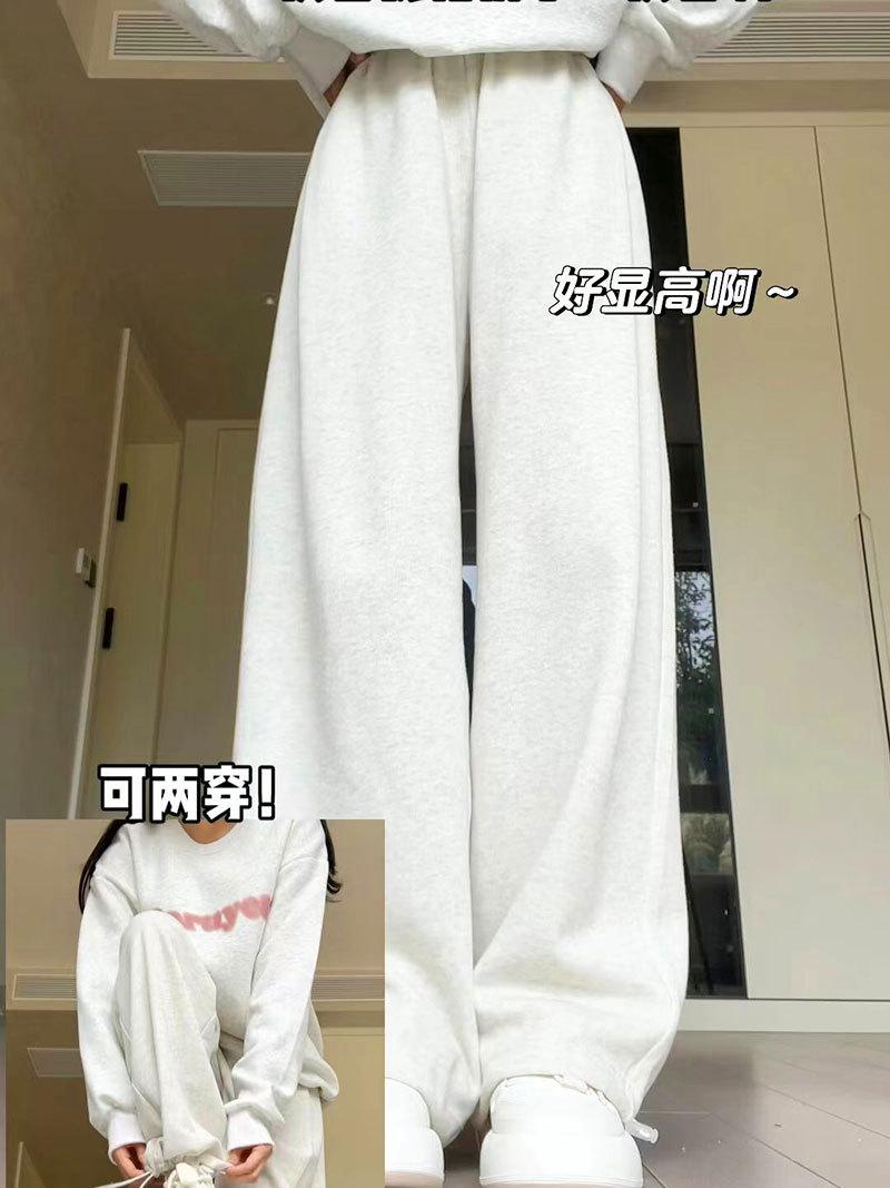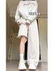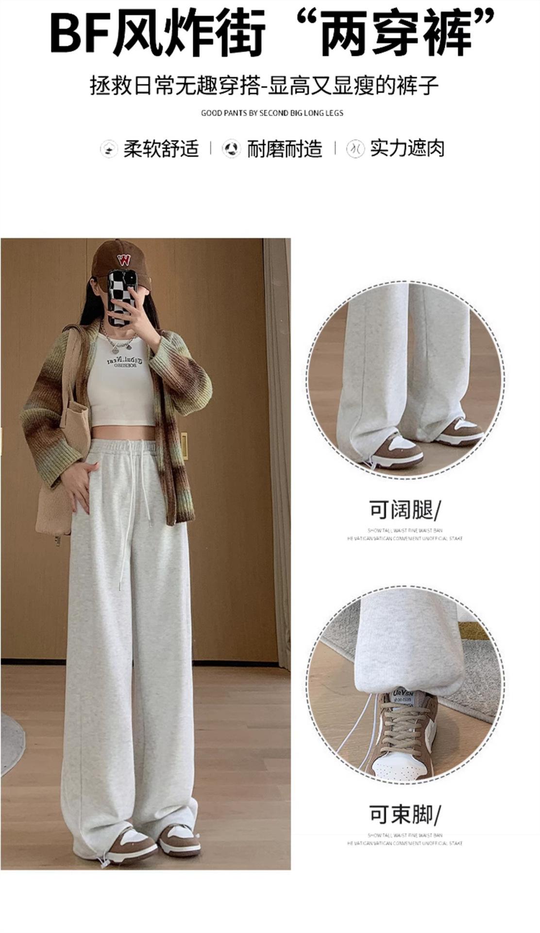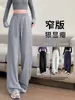 Pantalón de chándal gris para mujer 2025 Verano Nuevo estilo Pequeño Suelto Pierna ancha Recto Casual Deportivo Leggings Pantalón de chándal para mujer