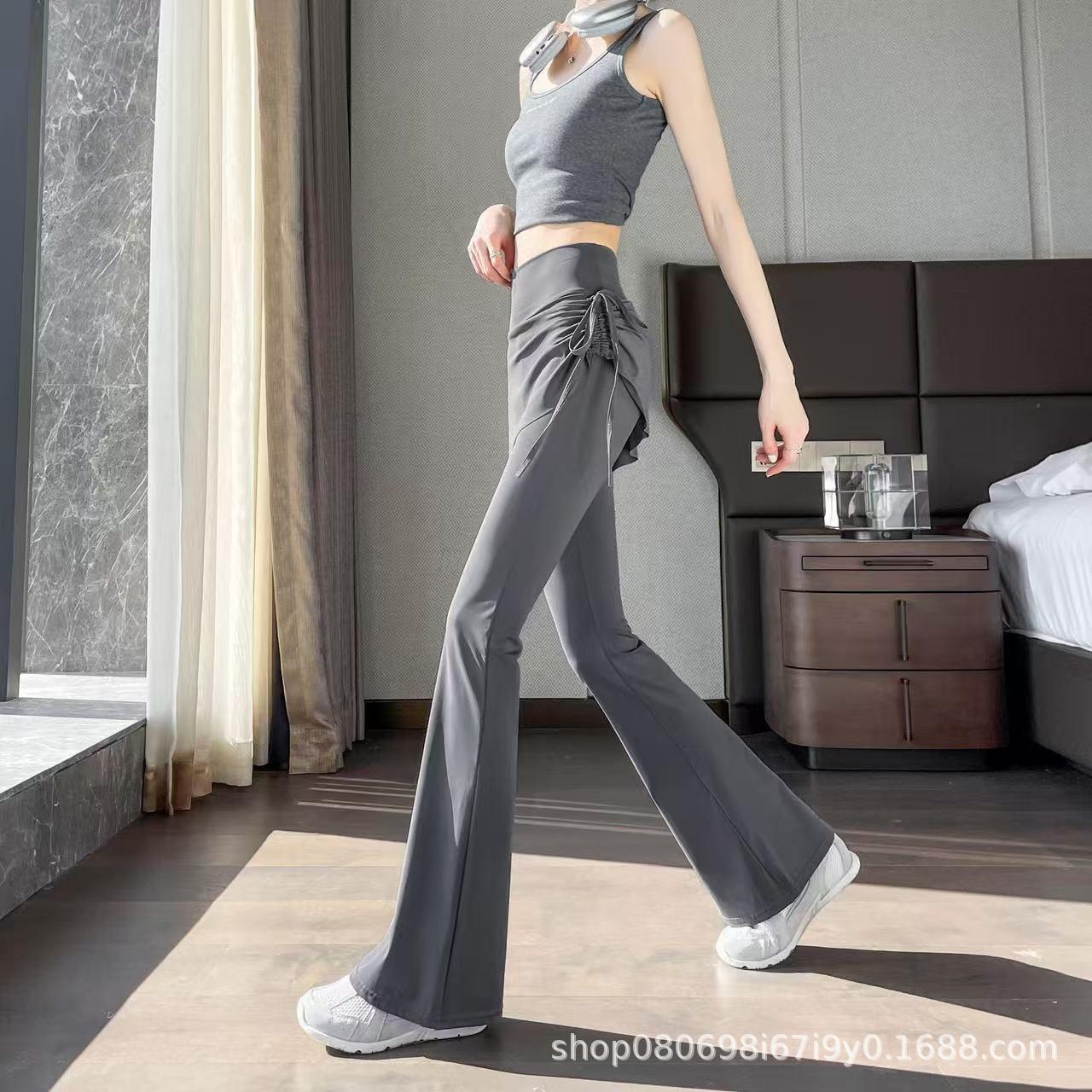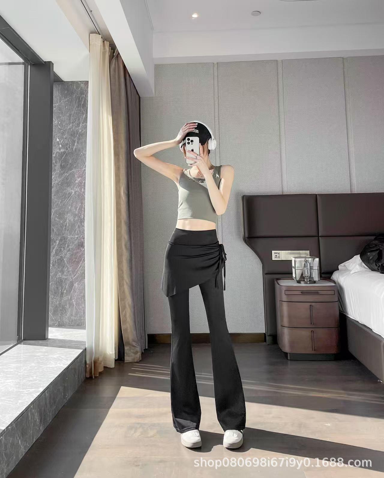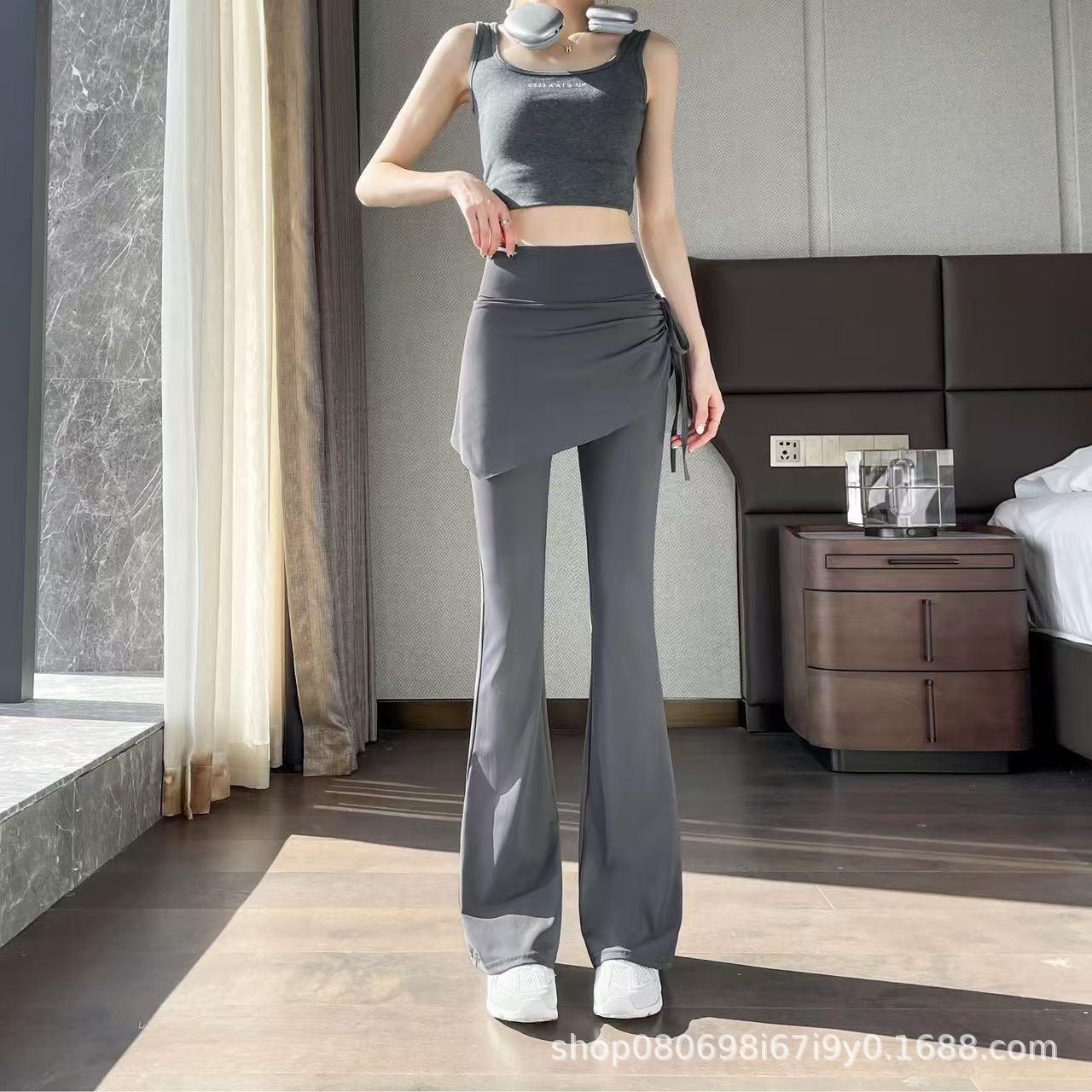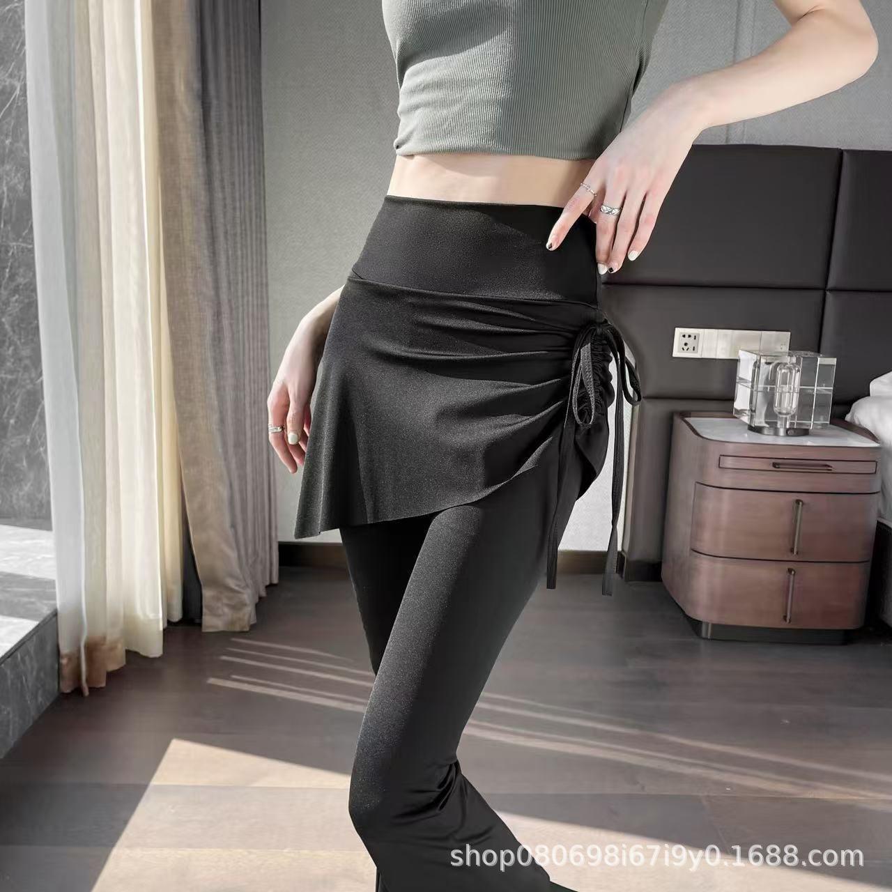 Pantalones de yoga falsos de dos piezas para mujer, de cintura alta, adelgazantes, con cordón lateral y cobertura de cadera, para entrenamiento deportivo.