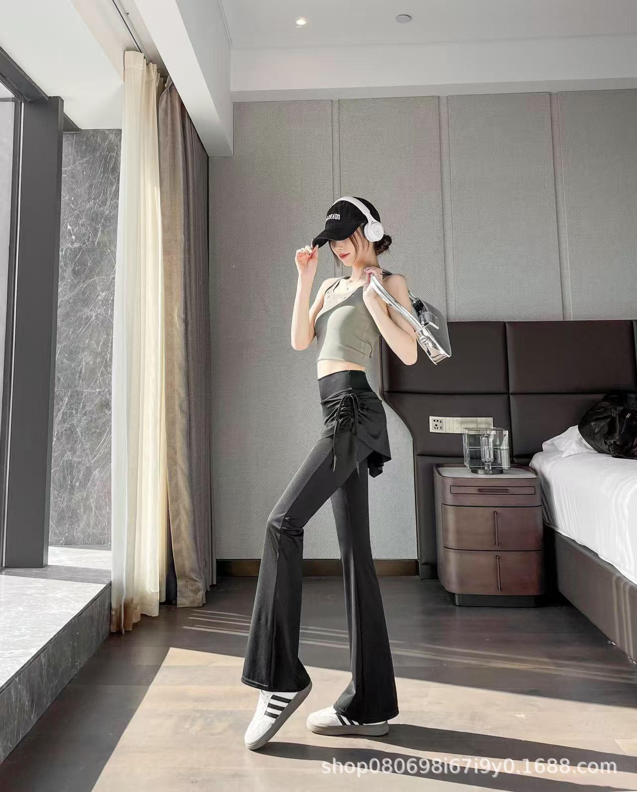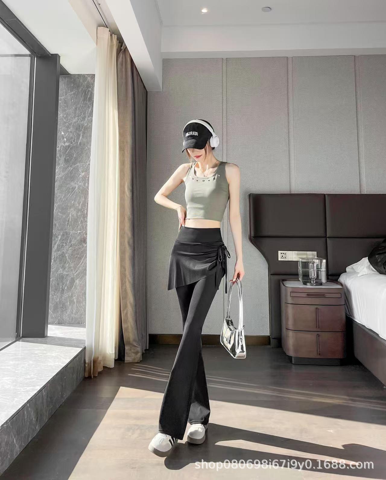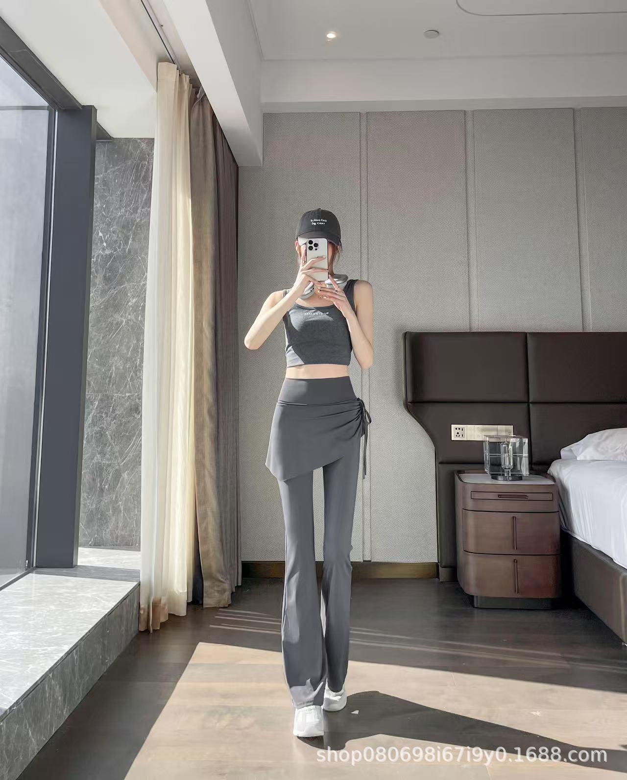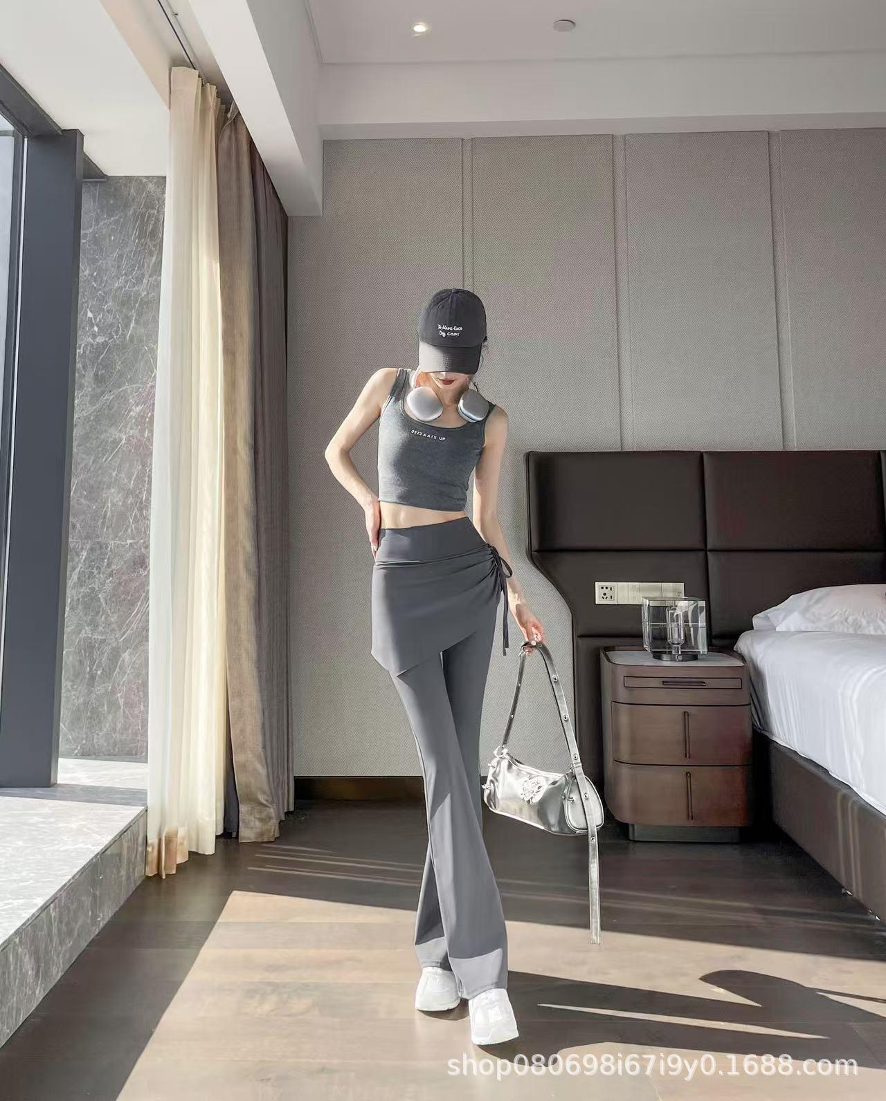 Pantalones de yoga falsos de dos piezas para mujer, de cintura alta, adelgazantes, con cordón lateral y cobertura de cadera, para entrenamiento deportivo.