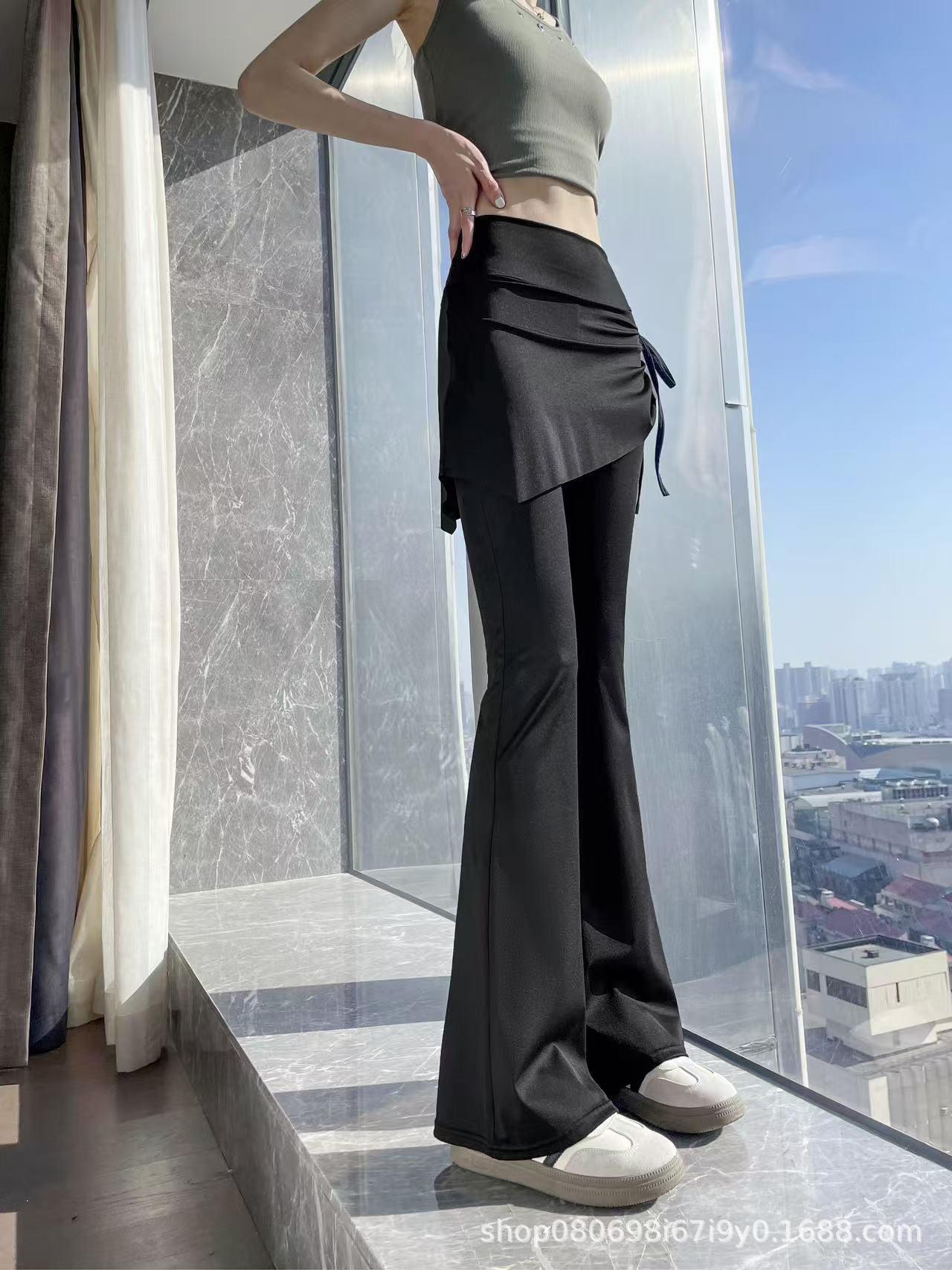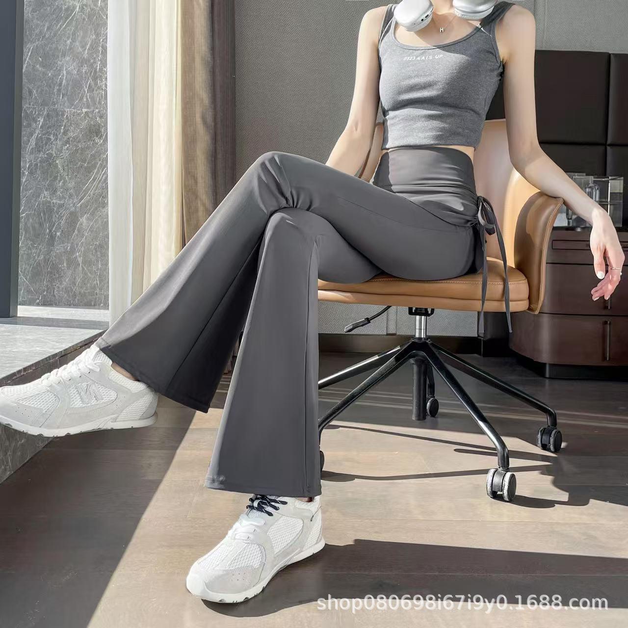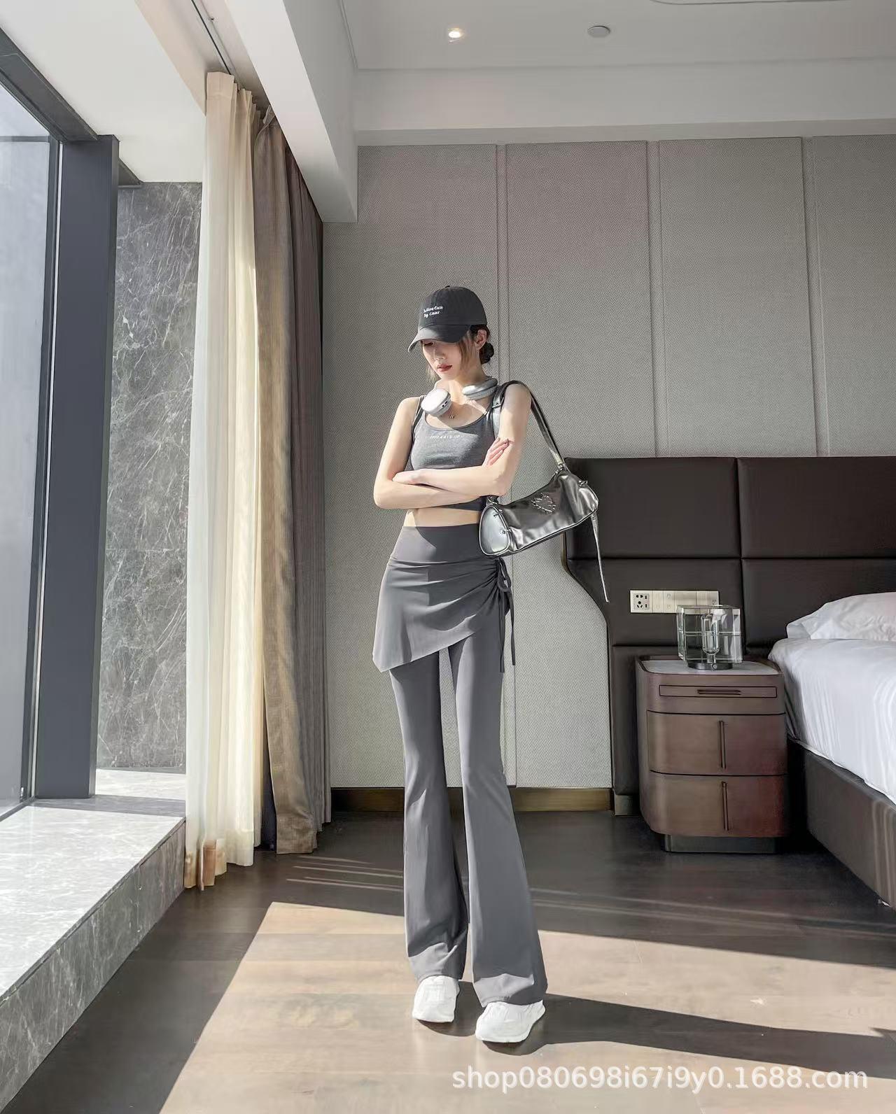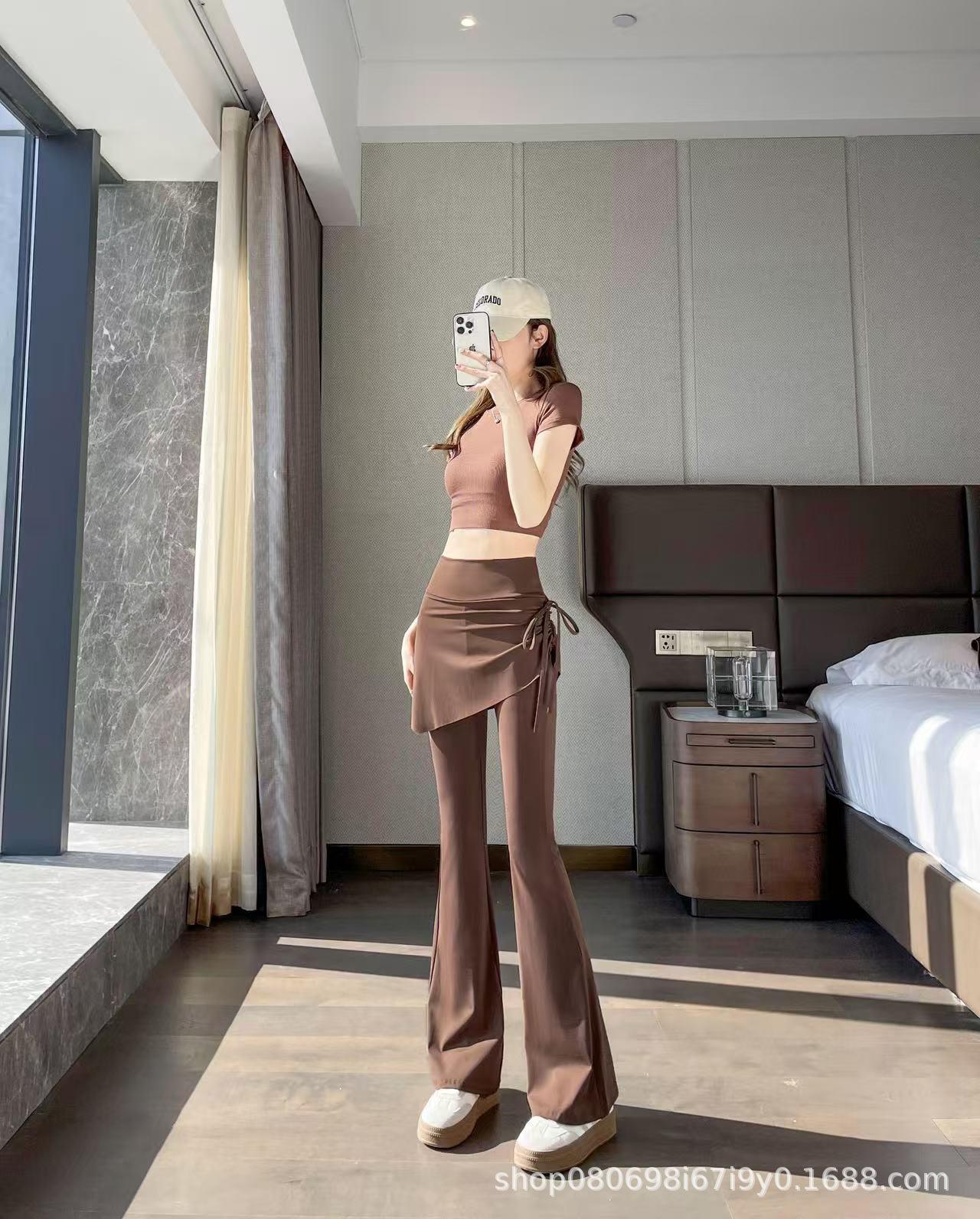 Pantalones de yoga falsos de dos piezas para mujer, de cintura alta, adelgazantes, con cordón lateral y cobertura de cadera, para entrenamiento deportivo.