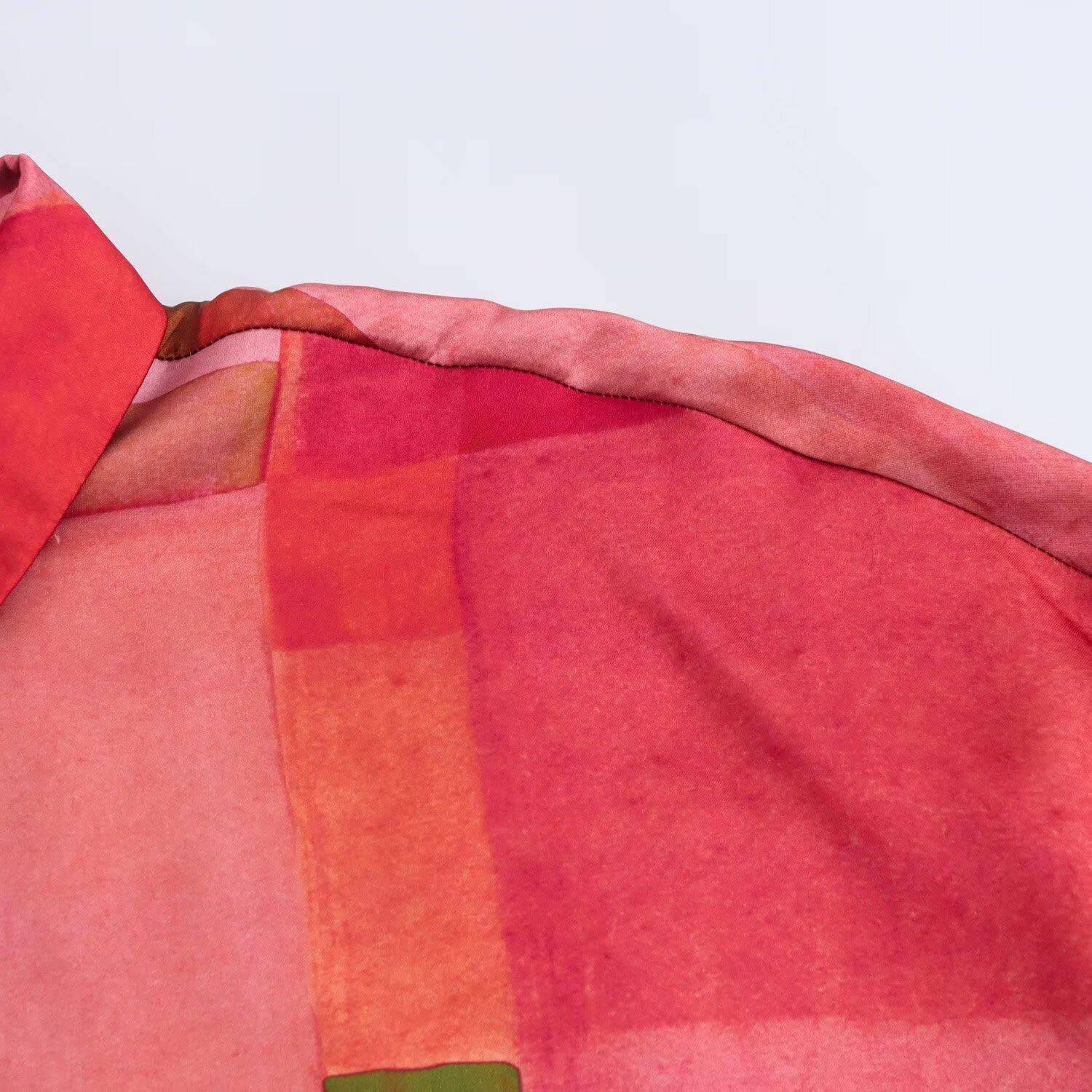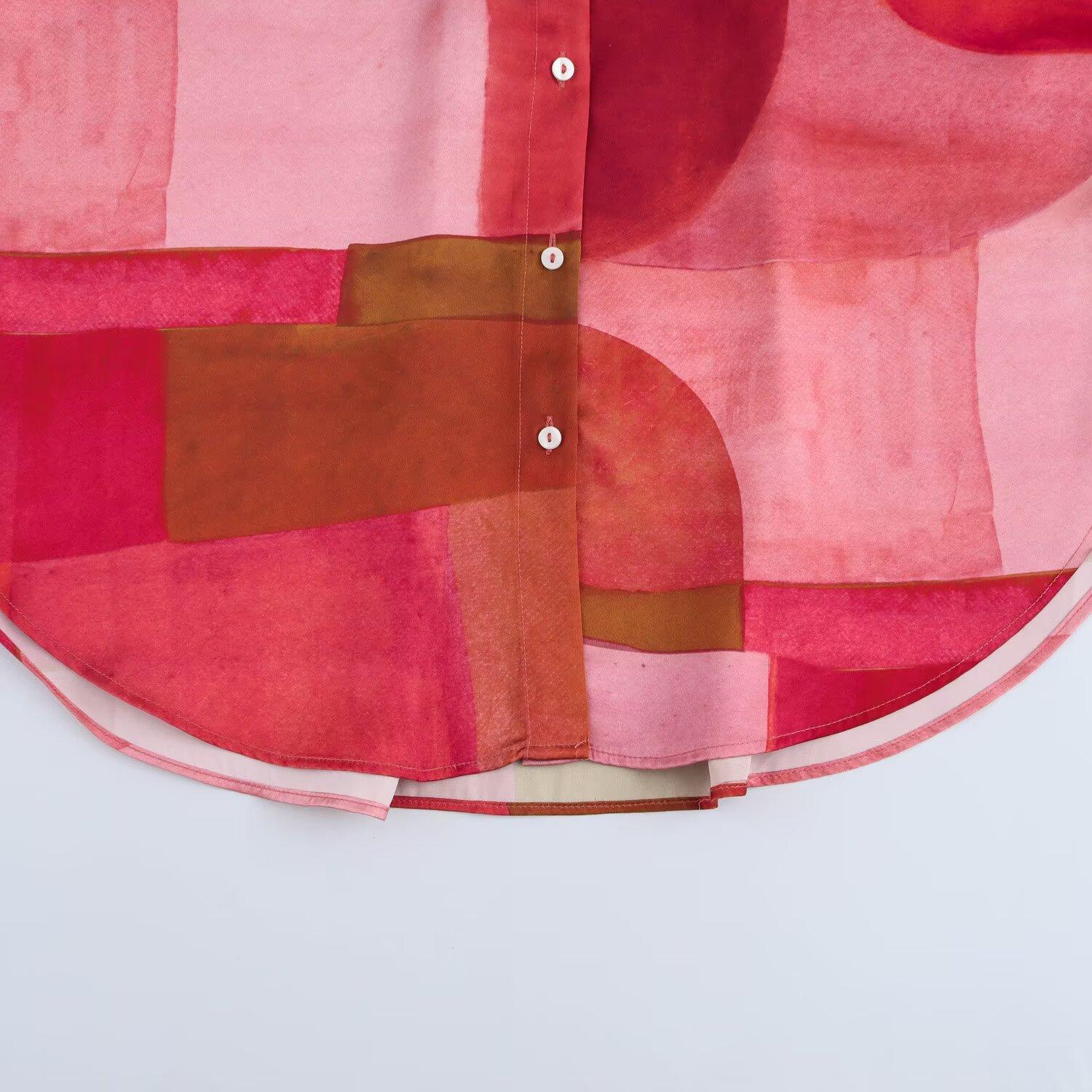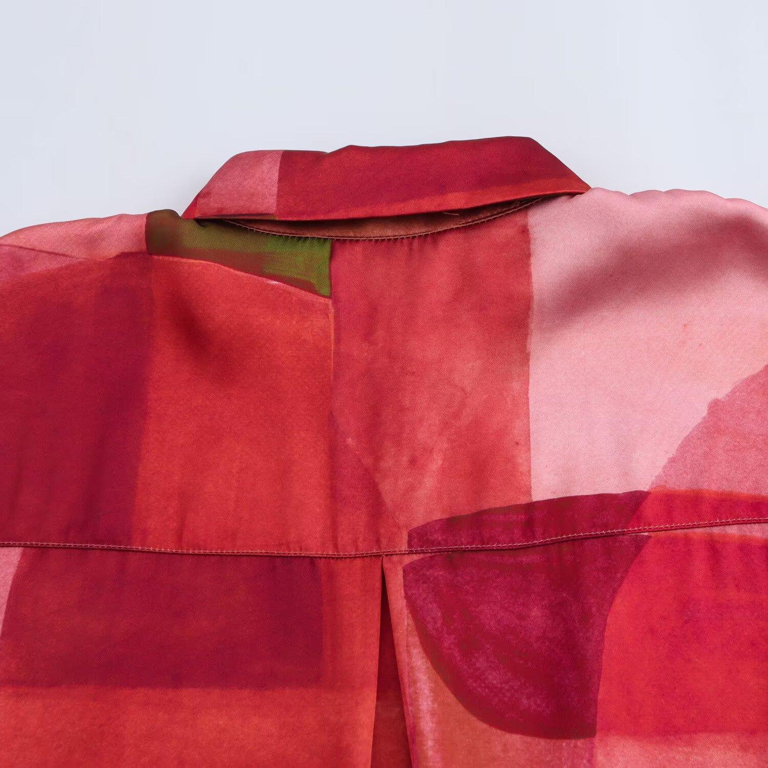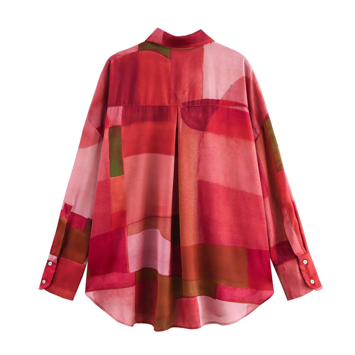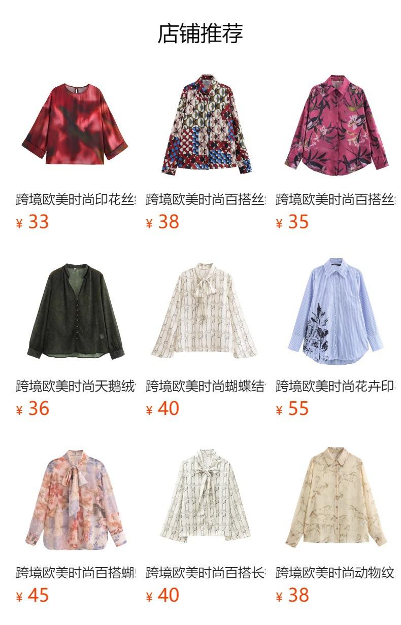 Ropa de mujer de comercio exterior al por mayor transfronterizo primavera 2025 estilo europeo y americano nueva moda camisa de textura de satén de seda geométrica F6
