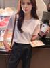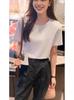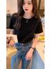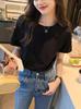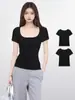 Camiseta de manga corta con cuello redondo y hombros descubiertos para mujer, novedad de verano 2024, sencilla, holgada, ajustada, elegante, de media manga.