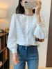 Camisa de manga larga estilo francés romántico de primavera 25 con cuello redondo, mangas abullonadas y bordado exquisito.