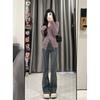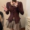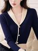 Cárdigan de punto de manga larga con colores a juego de Niche Design Sense, camisa adelgazante de corte entallado, suéter cómodo y combinable.