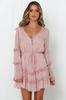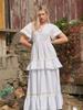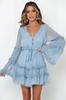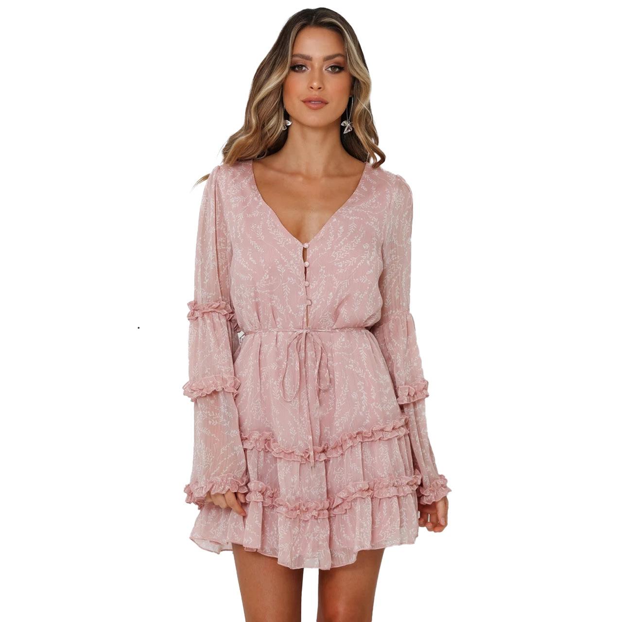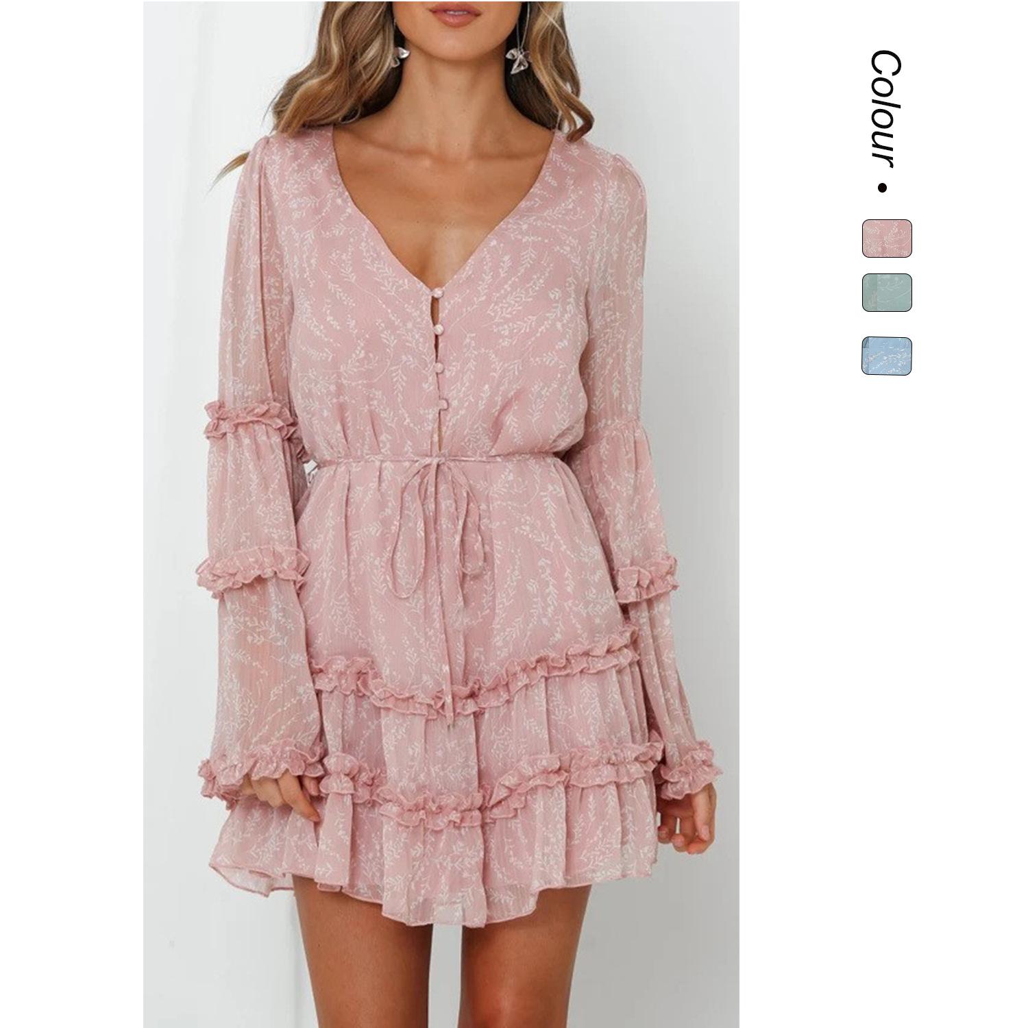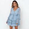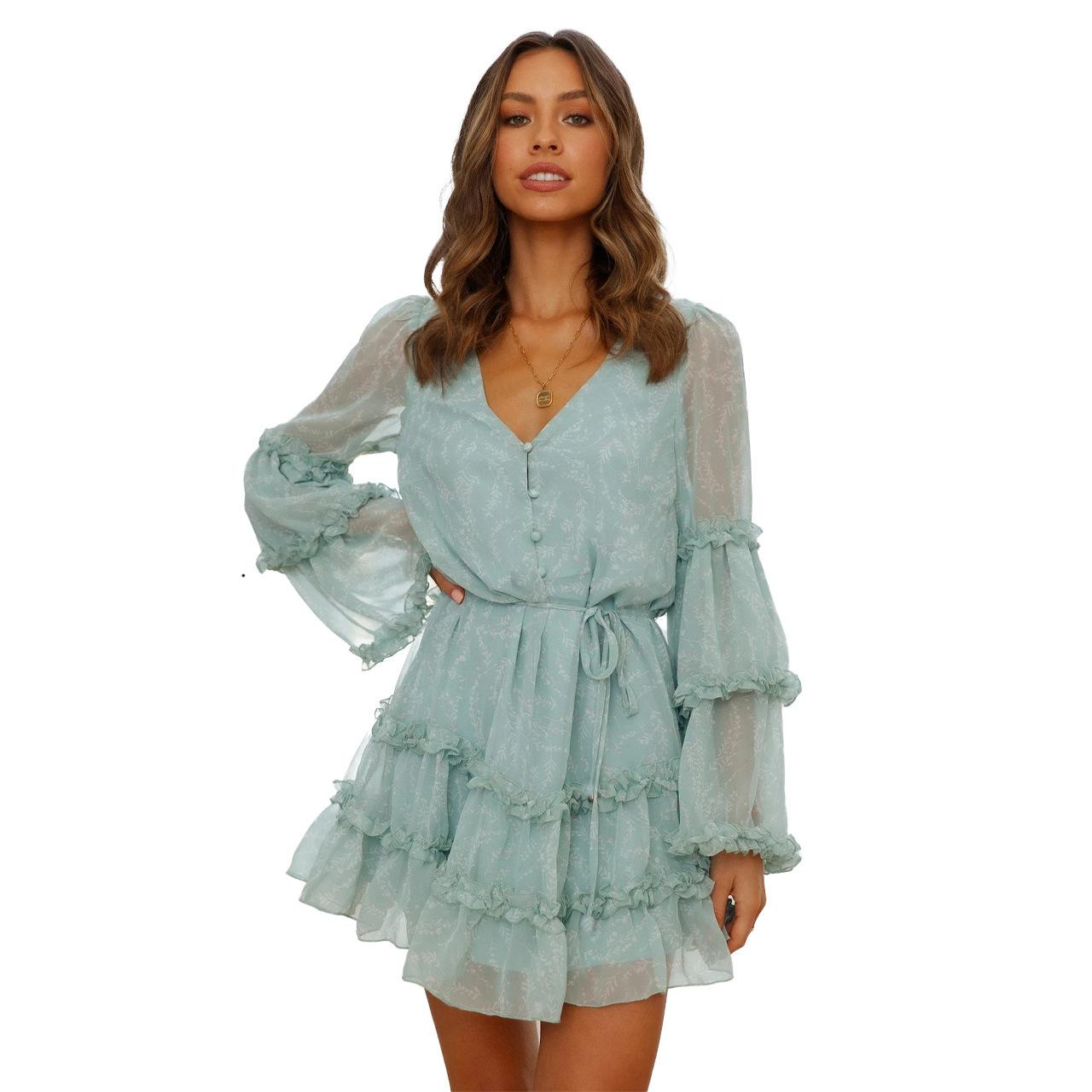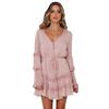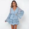2025 Europeo y Americano Transfronterizo Primavera y Verano Nuevo Encaje Moda Encaje Cintura con Cordones Vestido Corto de Gasa 8510