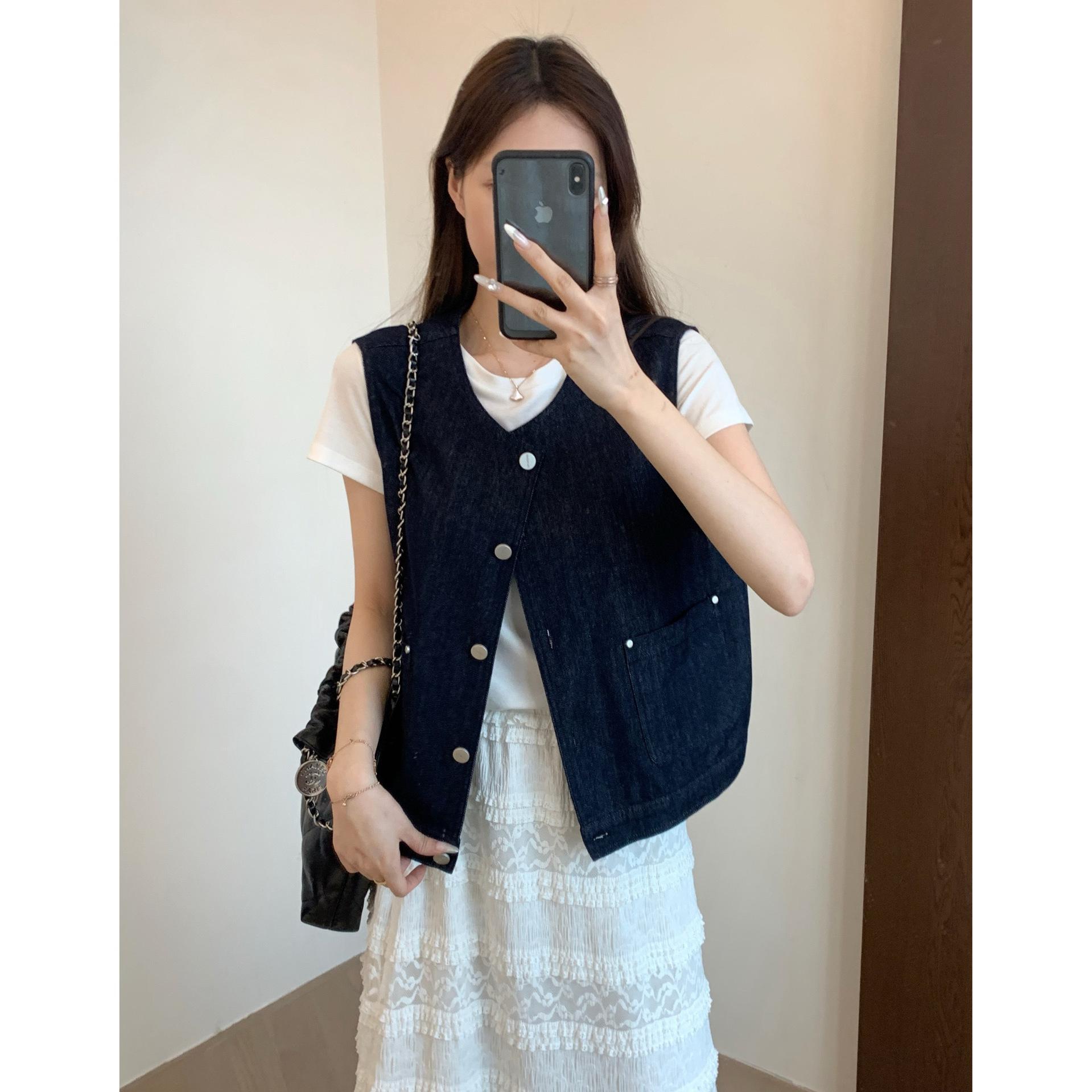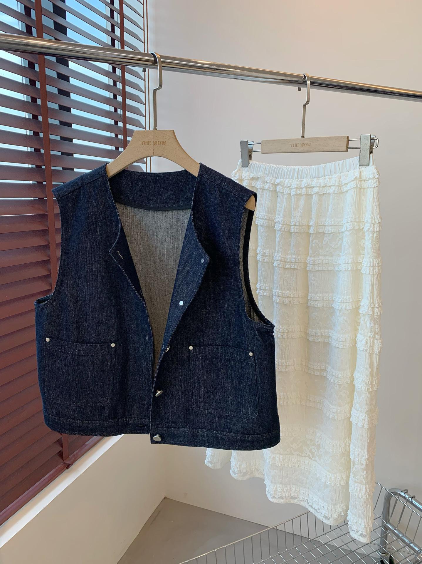 La mano de obra general de este chaleco de mezclilla también lleva mucho tiempo.