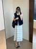 El elegante escote redondo pequeño muestra una belleza simple y generosa.