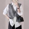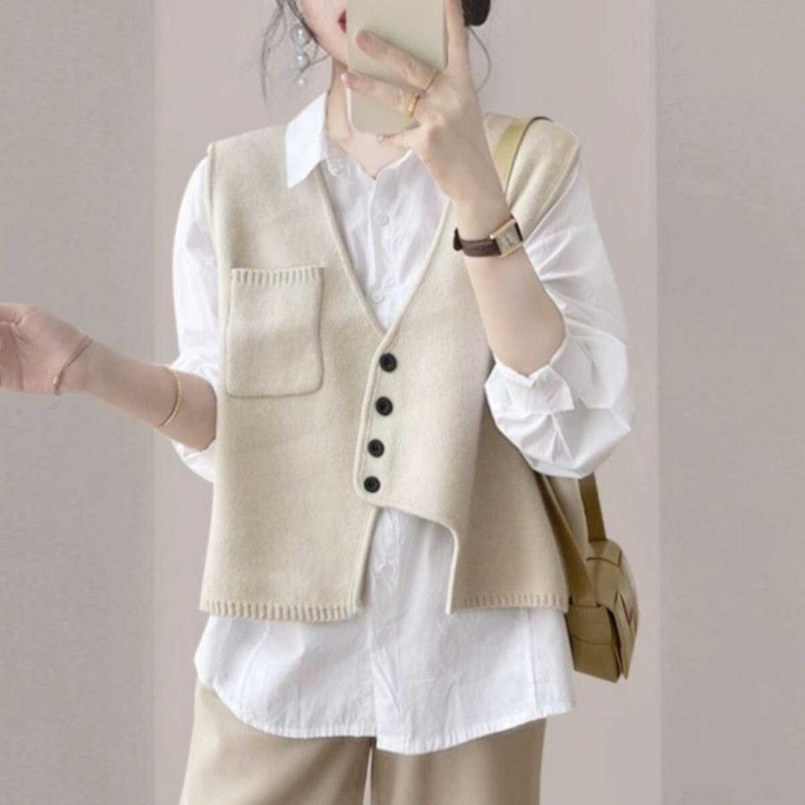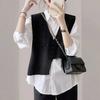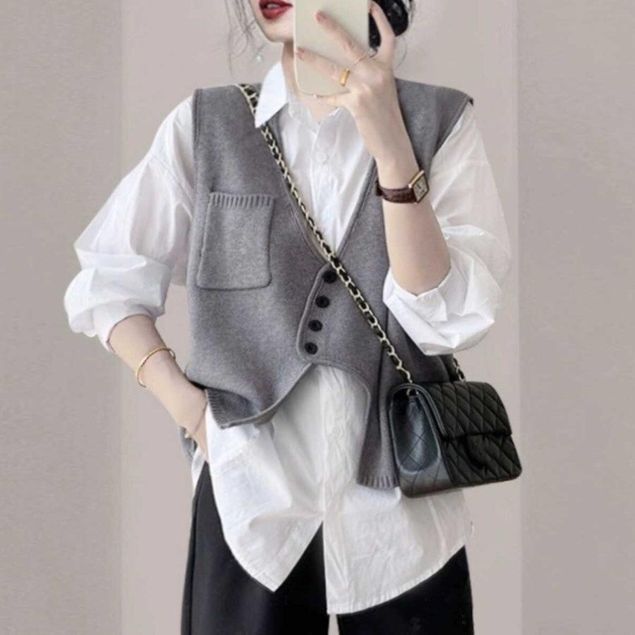 Camisa Blanca de Manga Larga Estilo Nuevo Primavera 2025 Top Chaleco de Punto Casual con Top de Moda
