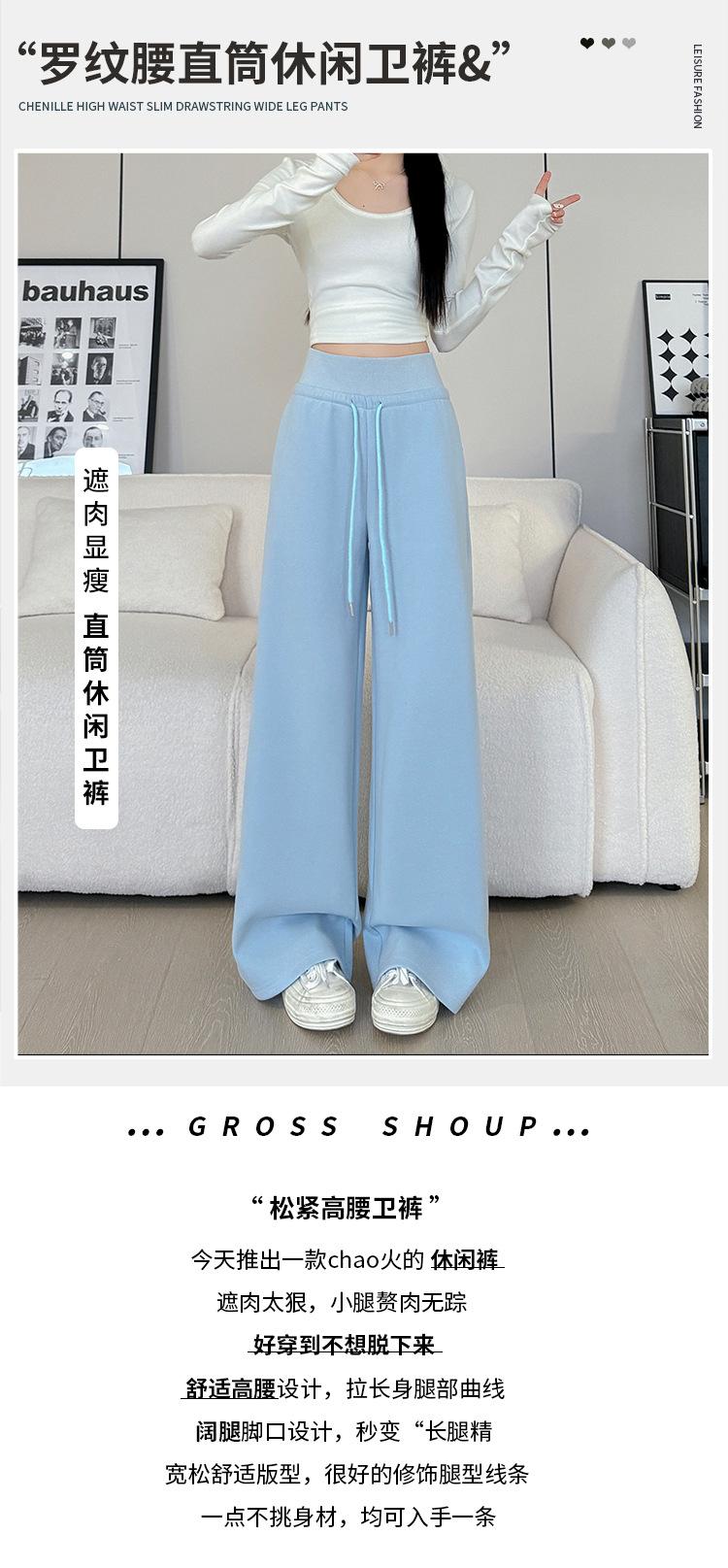 Pantalones deportivos de cintura alta estilo americano para mujer, primavera y otoño 2025, nuevos pantalones holgados y rectos, pantalones casuales de pierna ancha.