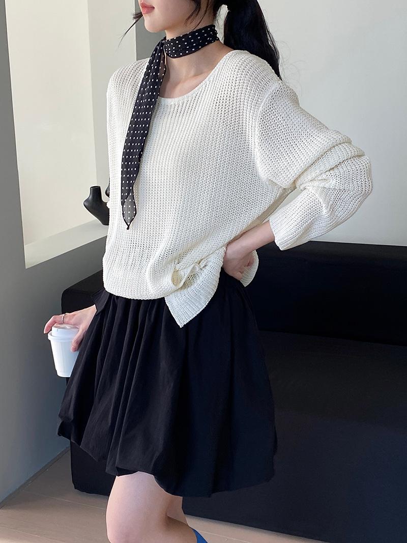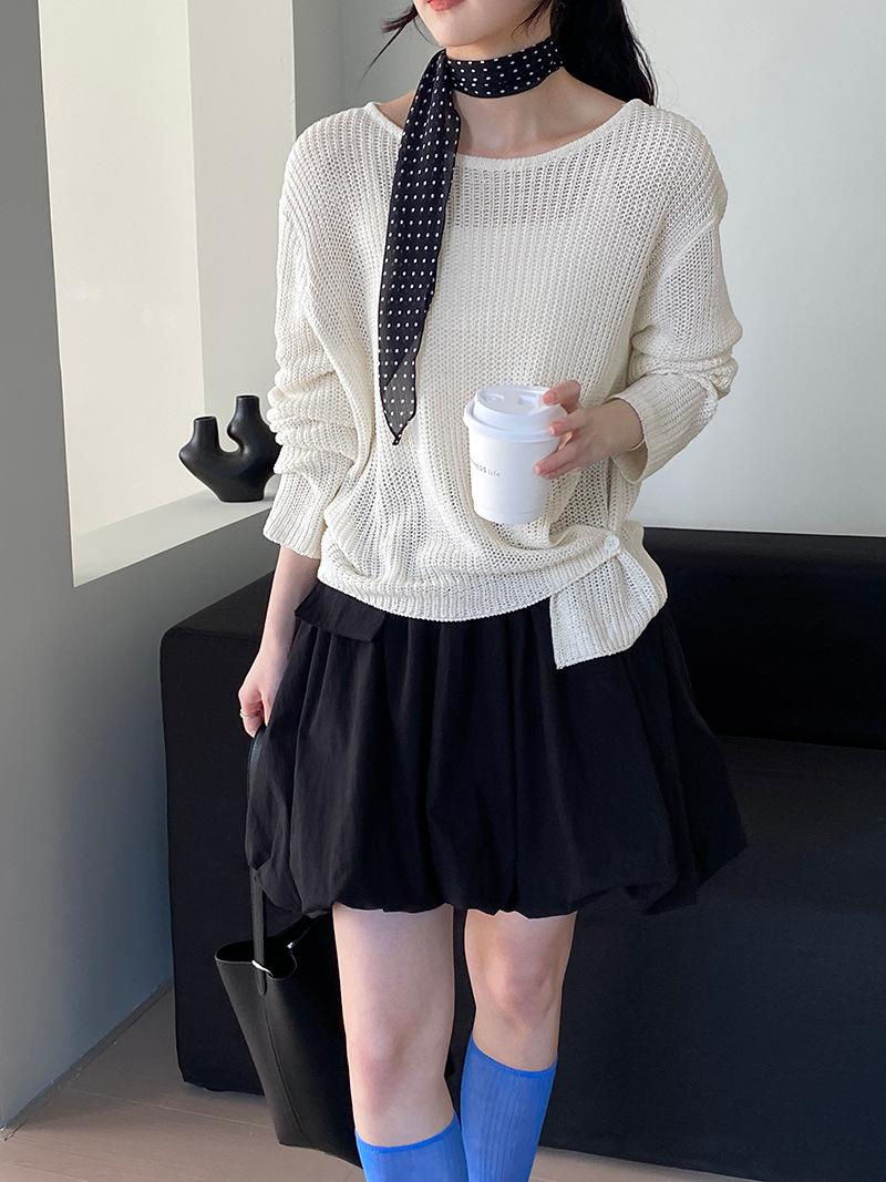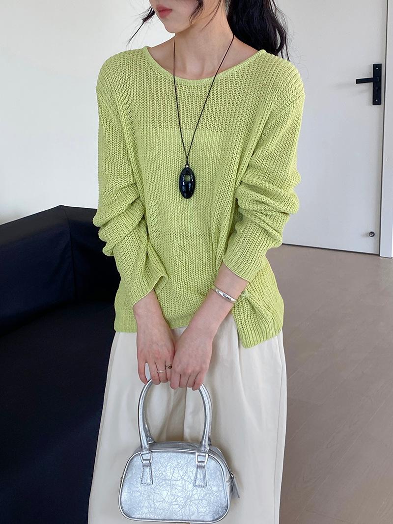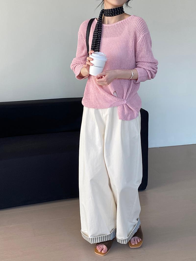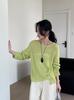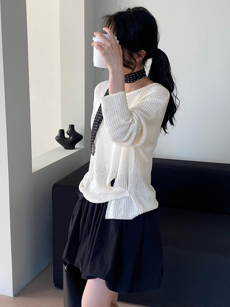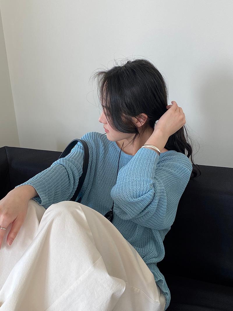 [Modelo de Bienestar, No Reembolsable] Nomo Estilo Coreano Abertura Lateral con Botones Cuello Redondo Ligeramente Transparente Blusa de Punto para Mujer D0205