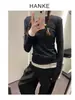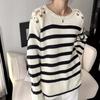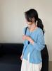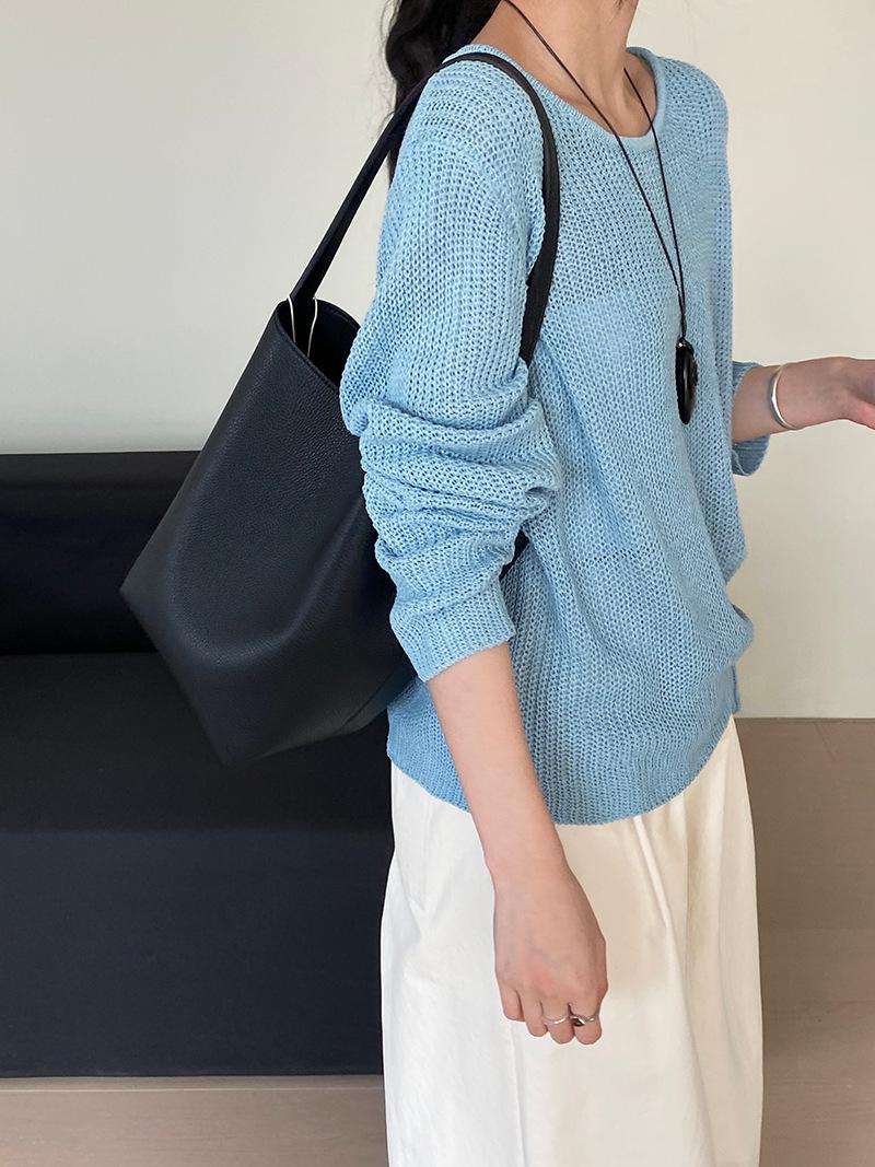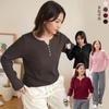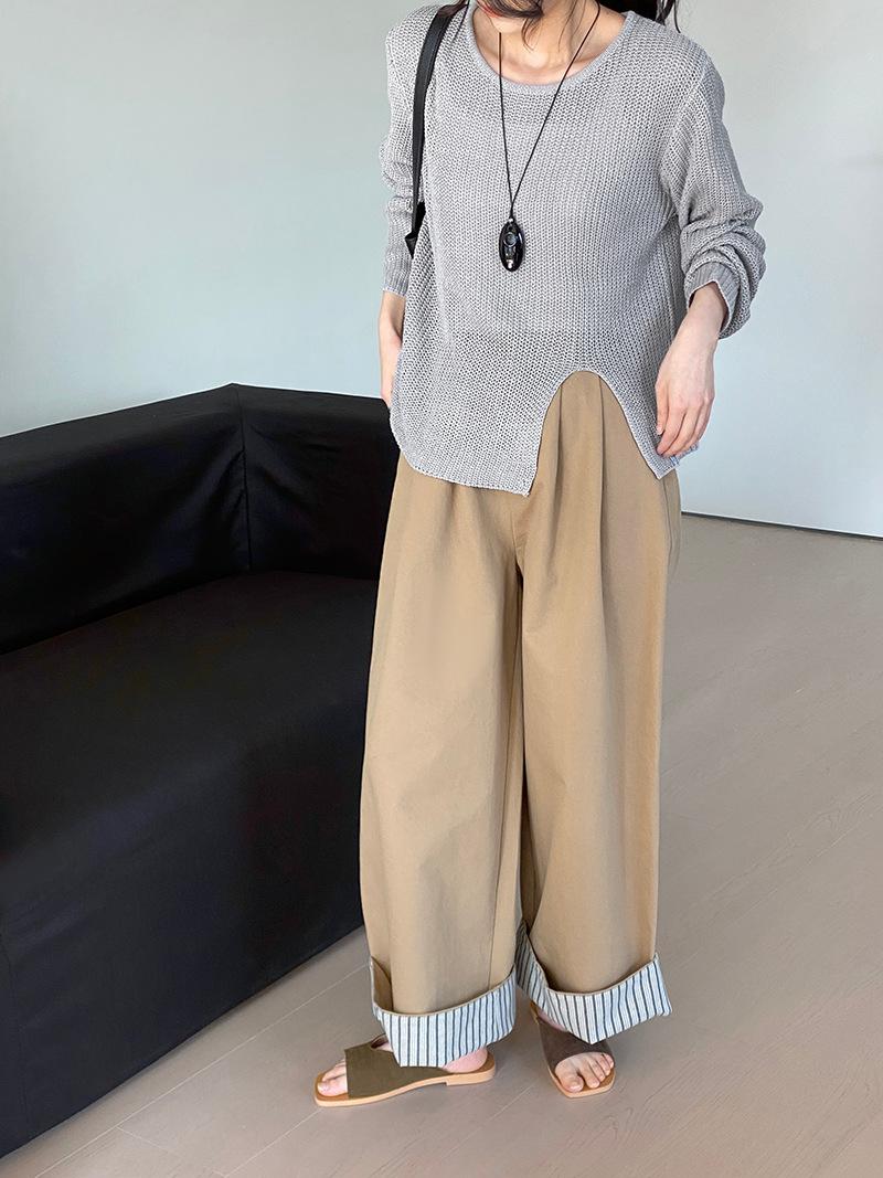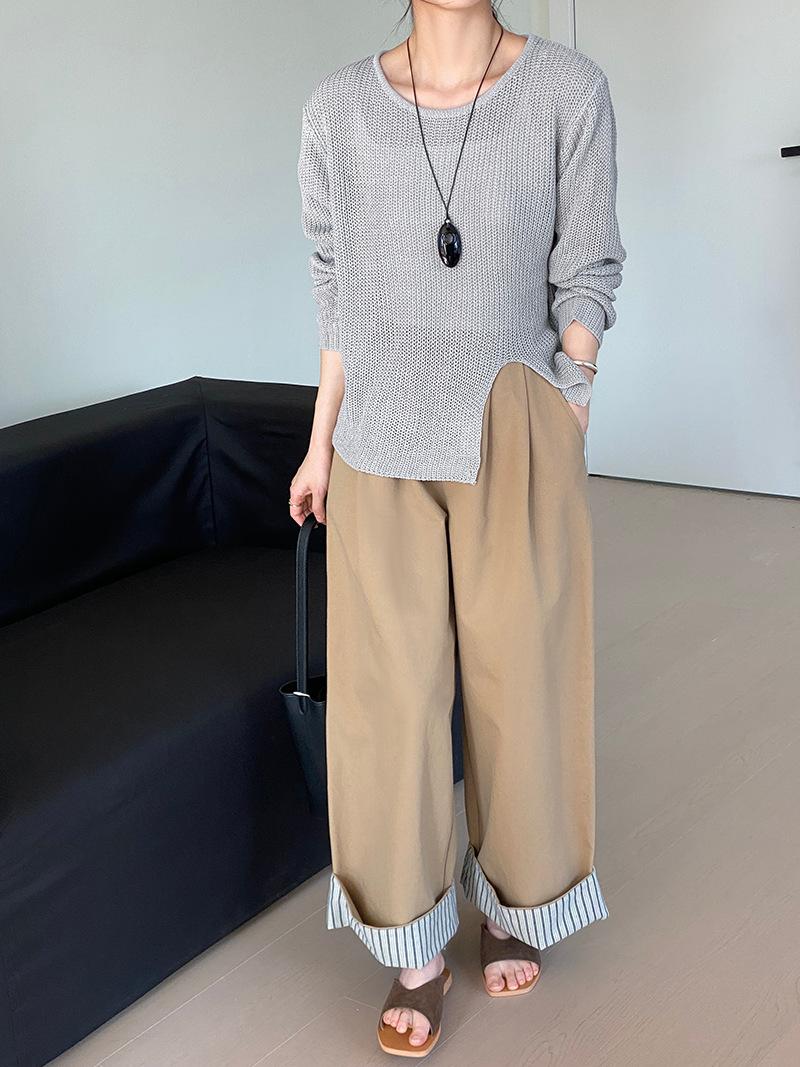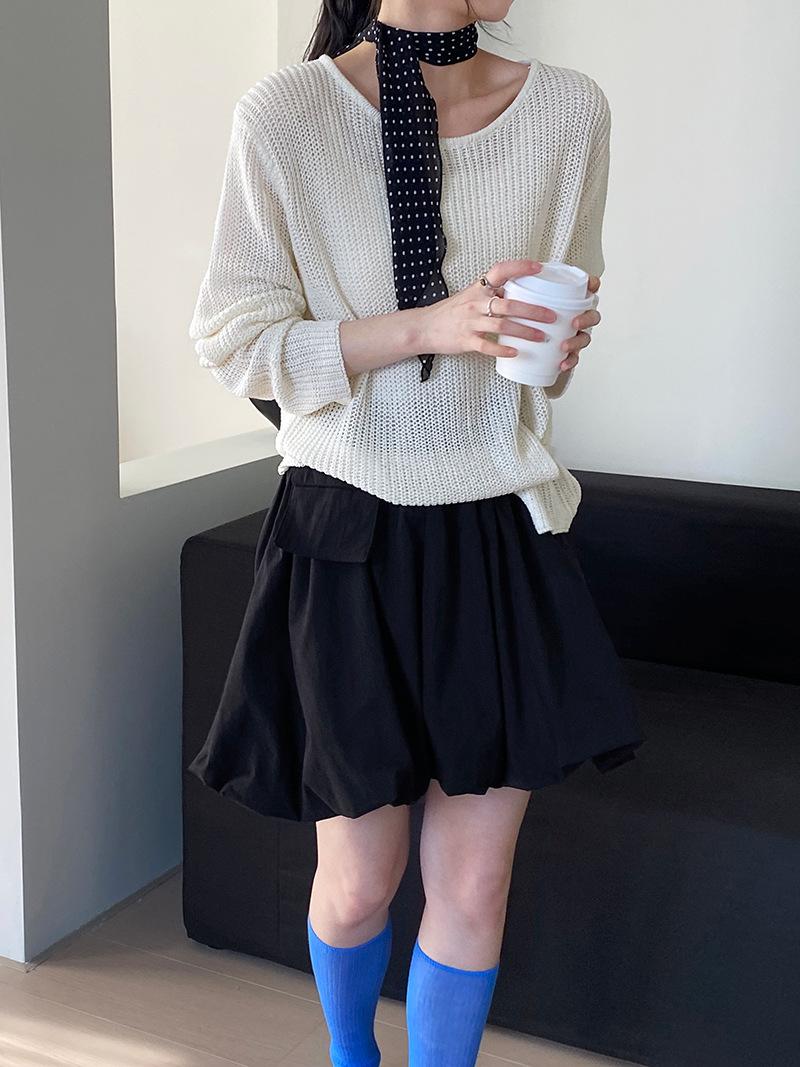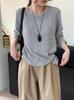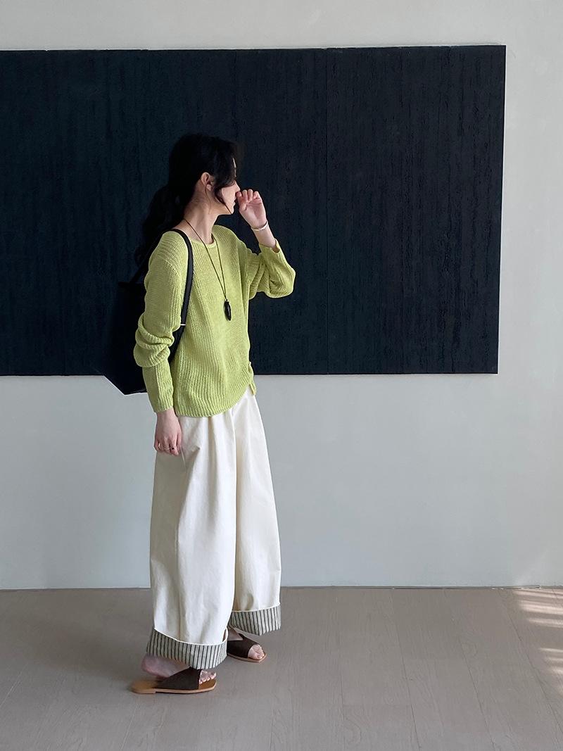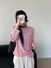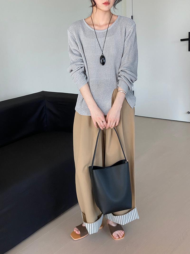 [Modelo de Bienestar, No Reembolsable] Nomo Estilo Coreano Abertura Lateral con Botones Cuello Redondo Ligeramente Transparente Blusa de Punto para Mujer D0205