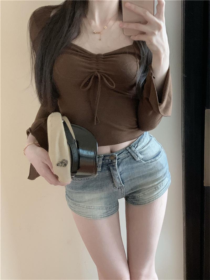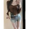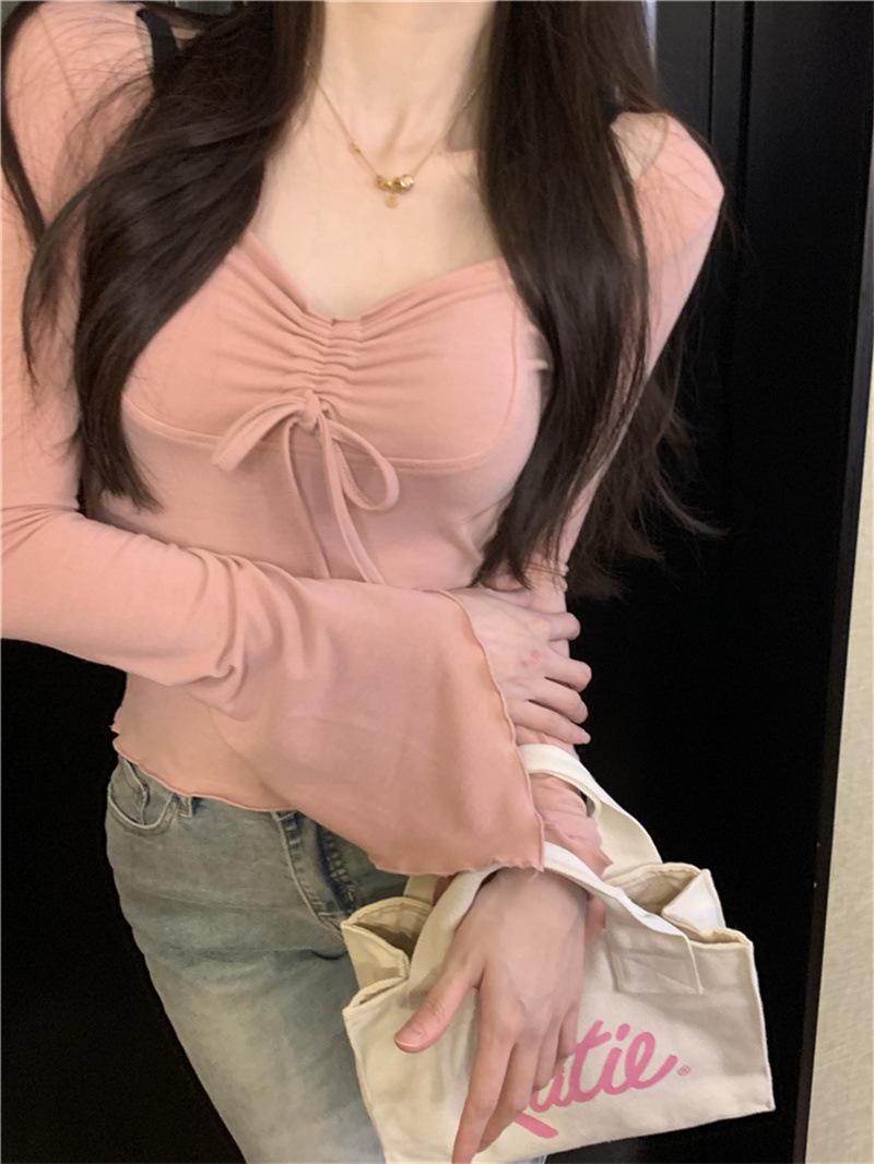 Camiseta de manga larga con cuello cuadrado, estilo Spice Girl, ajustada y sexy, combina con todo, estilo chic y único.