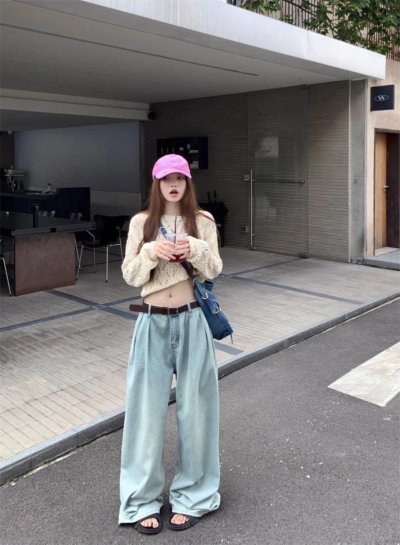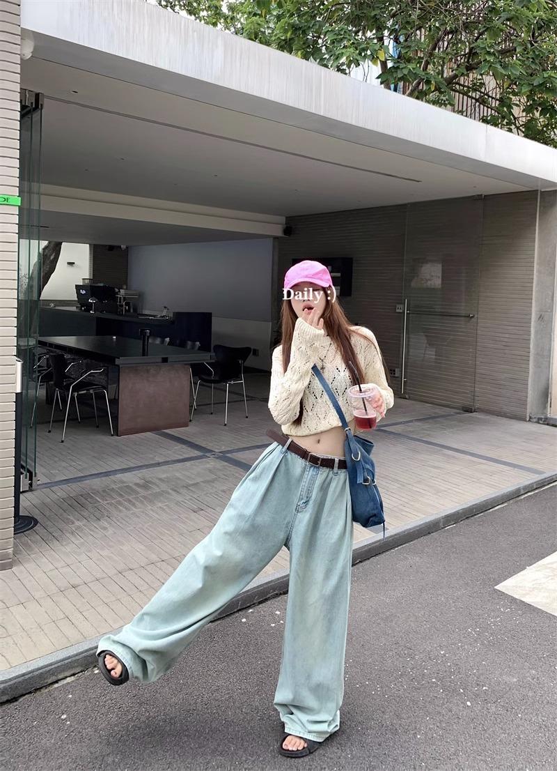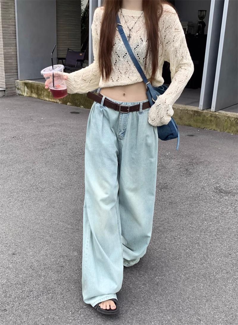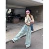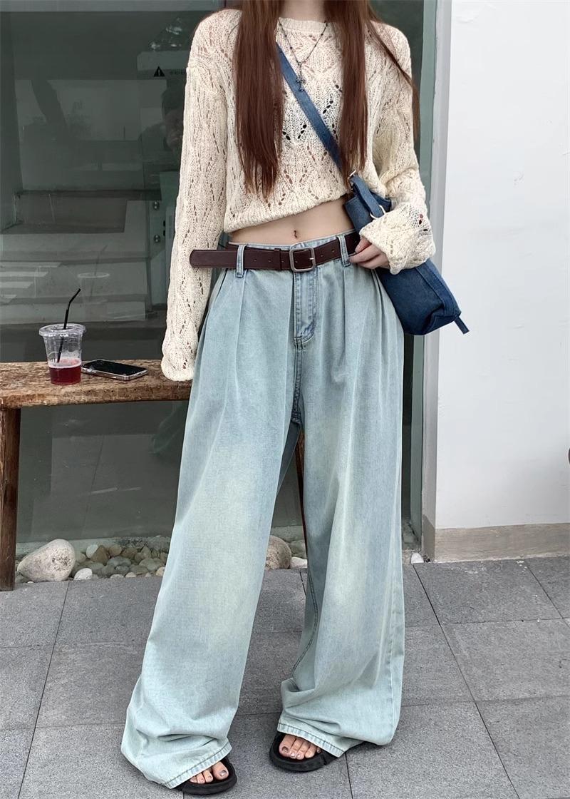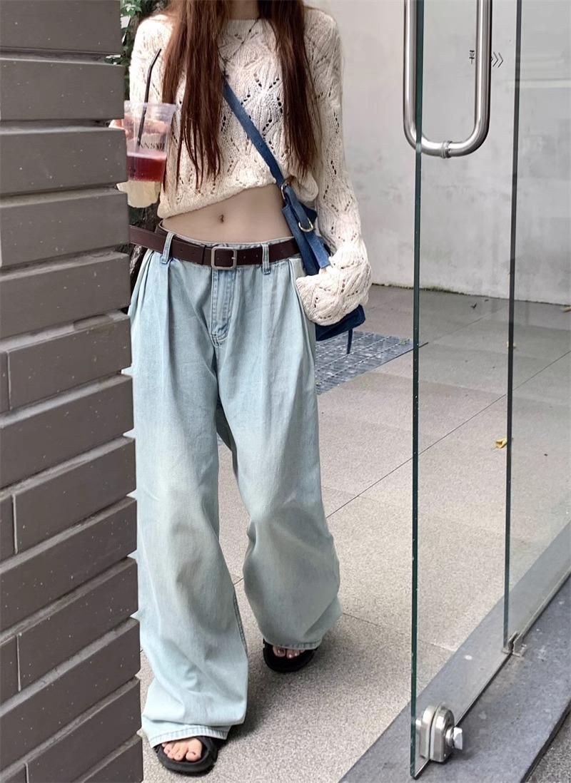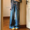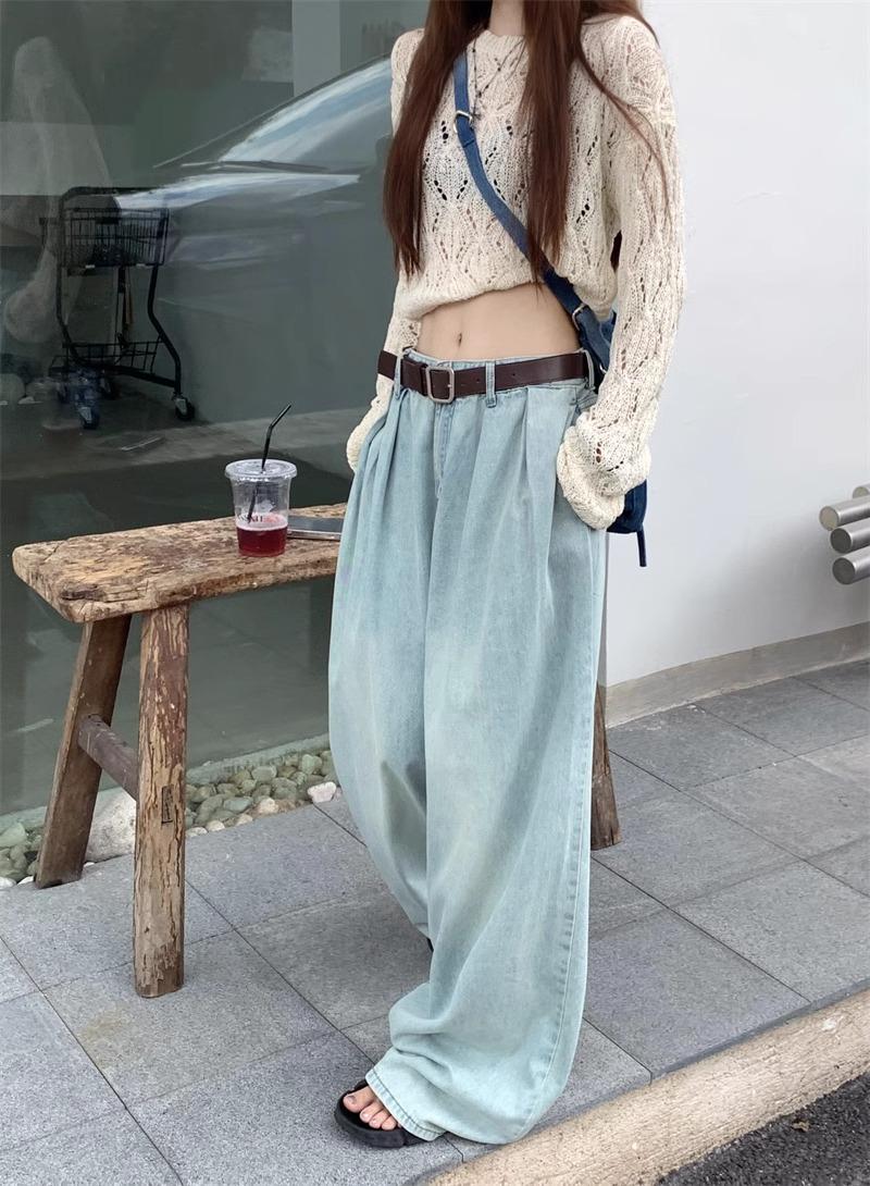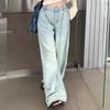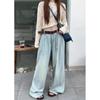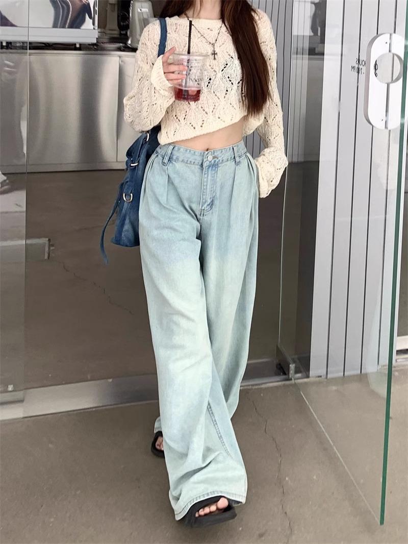 Pantalones vaqueros vintage de pierna ancha, lavados, de color claro, con diseño plisado y corte recto, para mujer, holgados y adelgazantes.