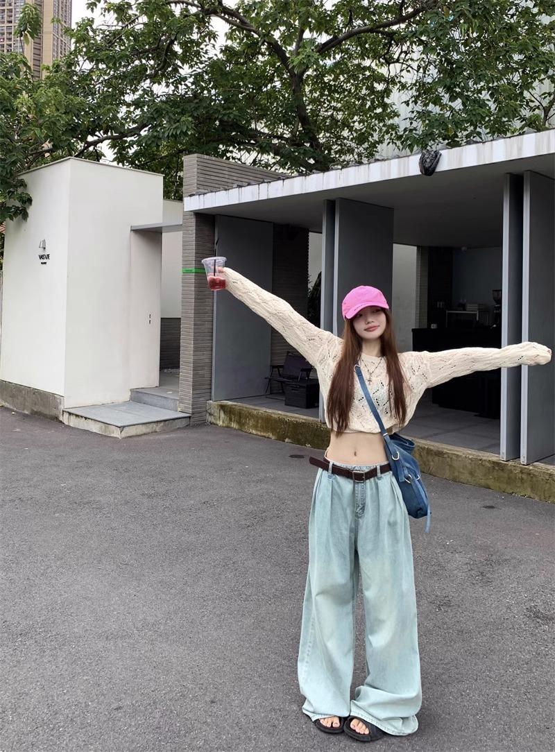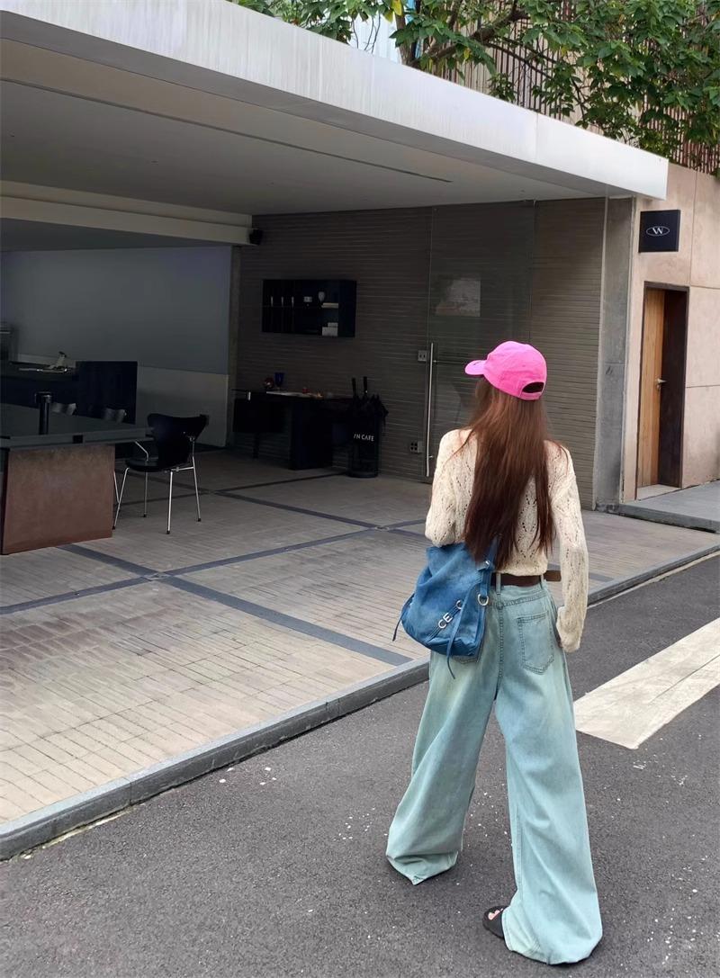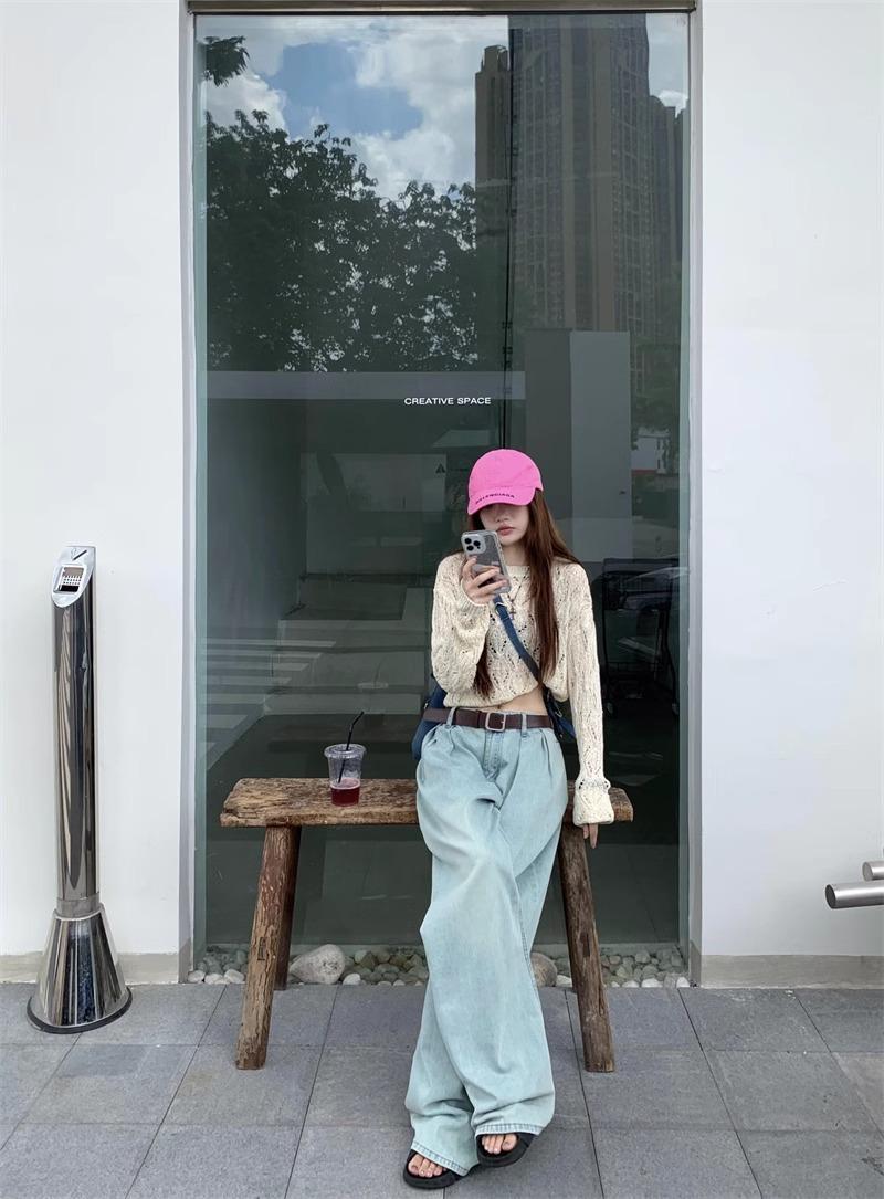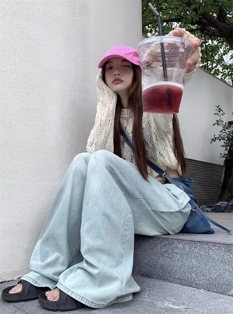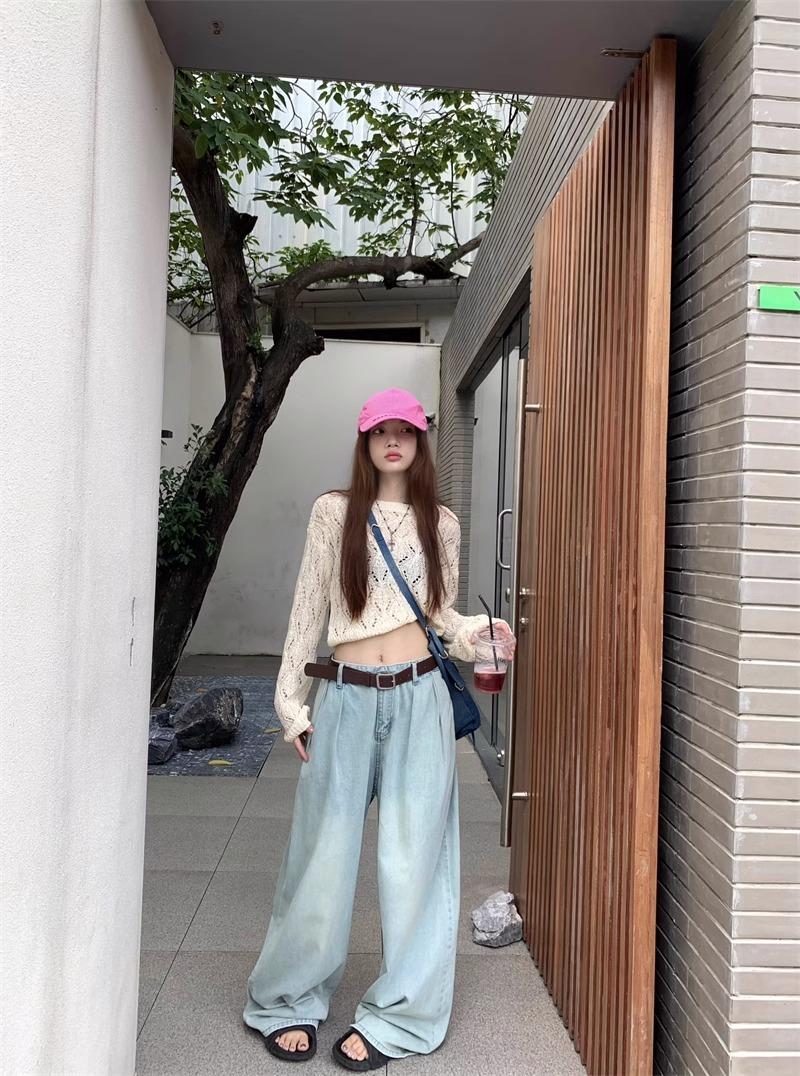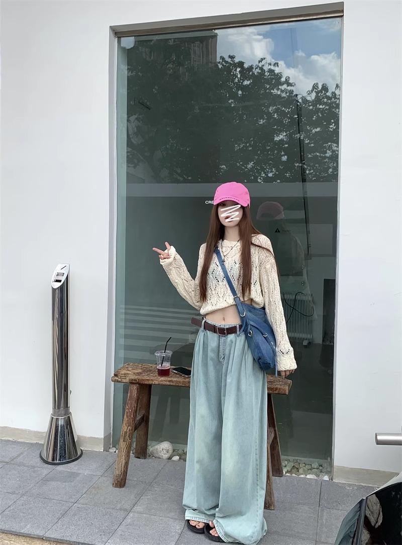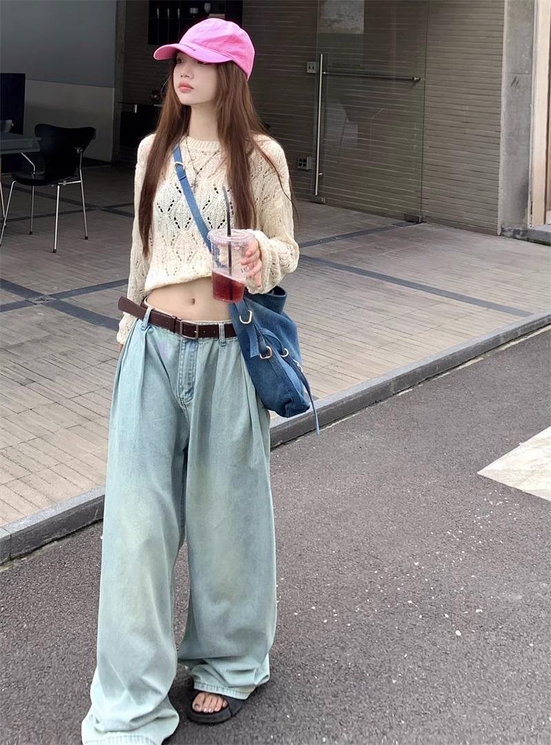 Pantalones vaqueros vintage de pierna ancha, lavados, de color claro, con diseño plisado y corte recto, para mujer, holgados y adelgazantes.