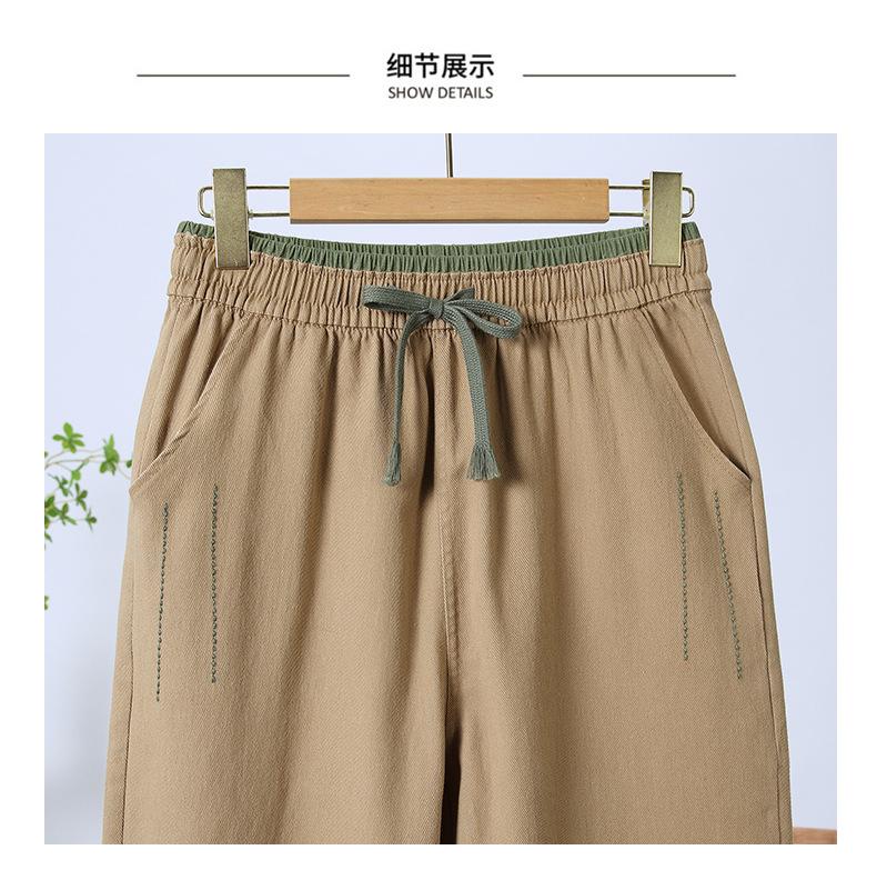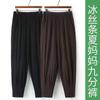 Pantalones cortos de algodón y seda para mujer, de verano 2025, de cintura alta, finos y rectos, holgados, transpirables, informales, para madres de mediana edad.