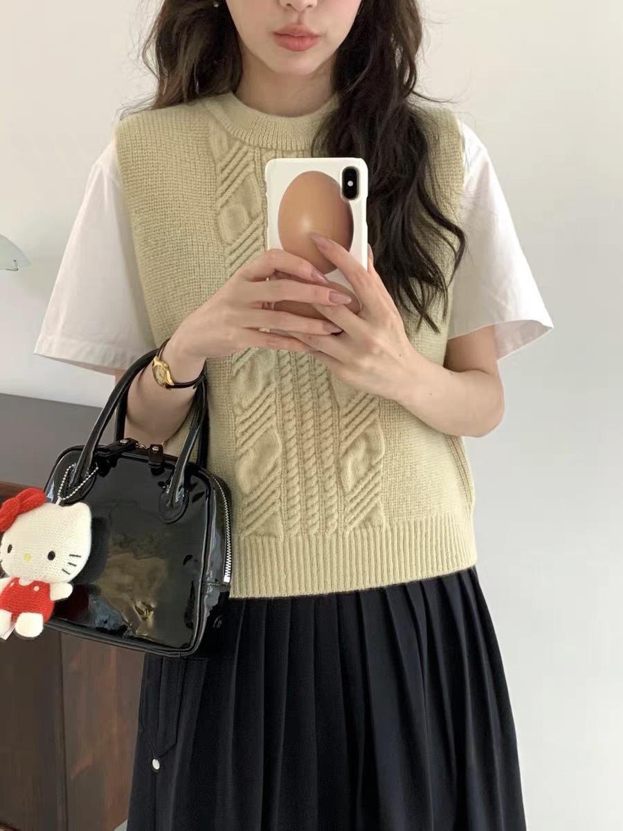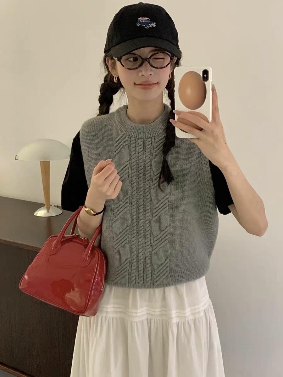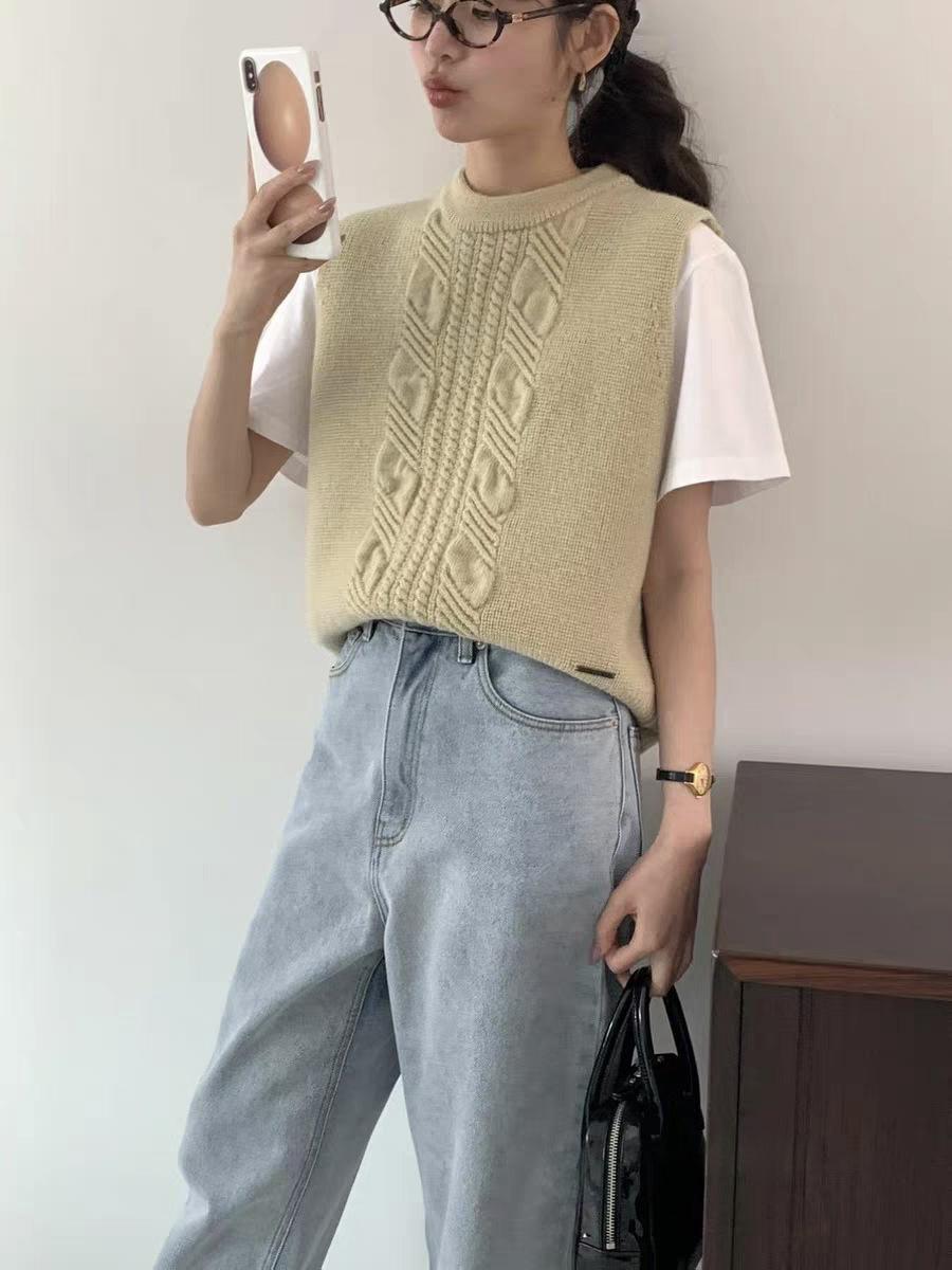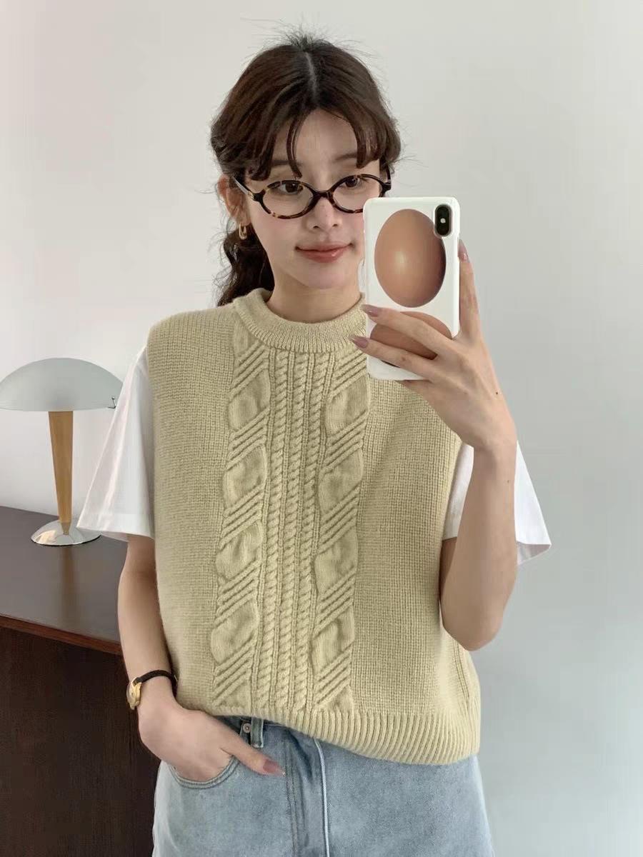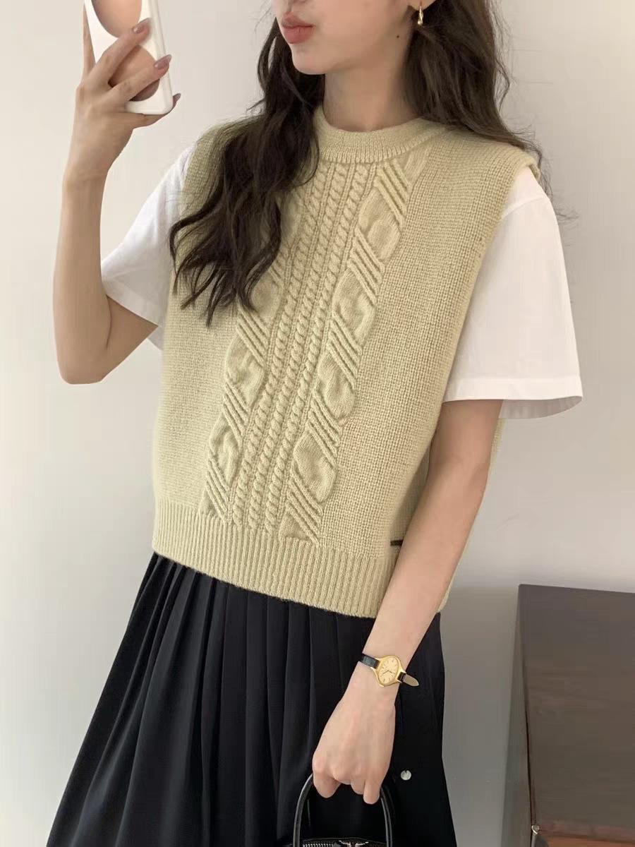 Pre-Otoño 2024 Estilo Coreano Dongdaemun Chaleco de Punto Simple de Lana Suave sin Mangas Versátil Cuello Redondo