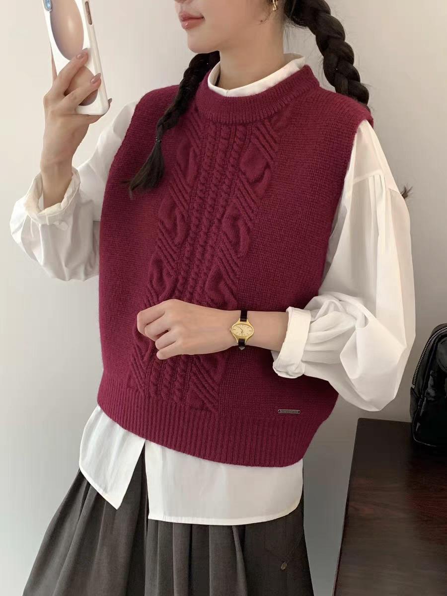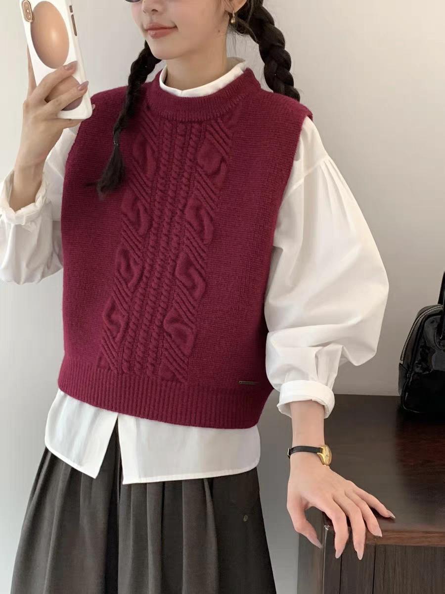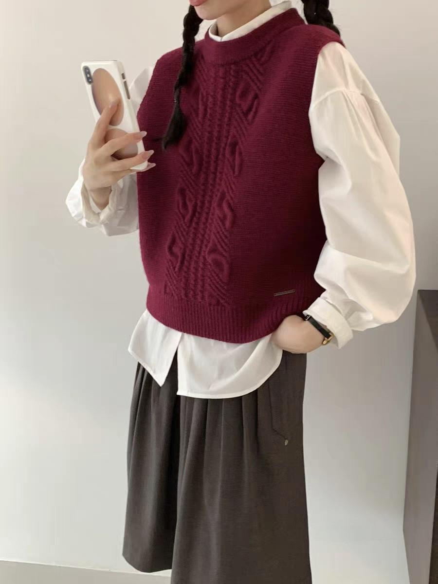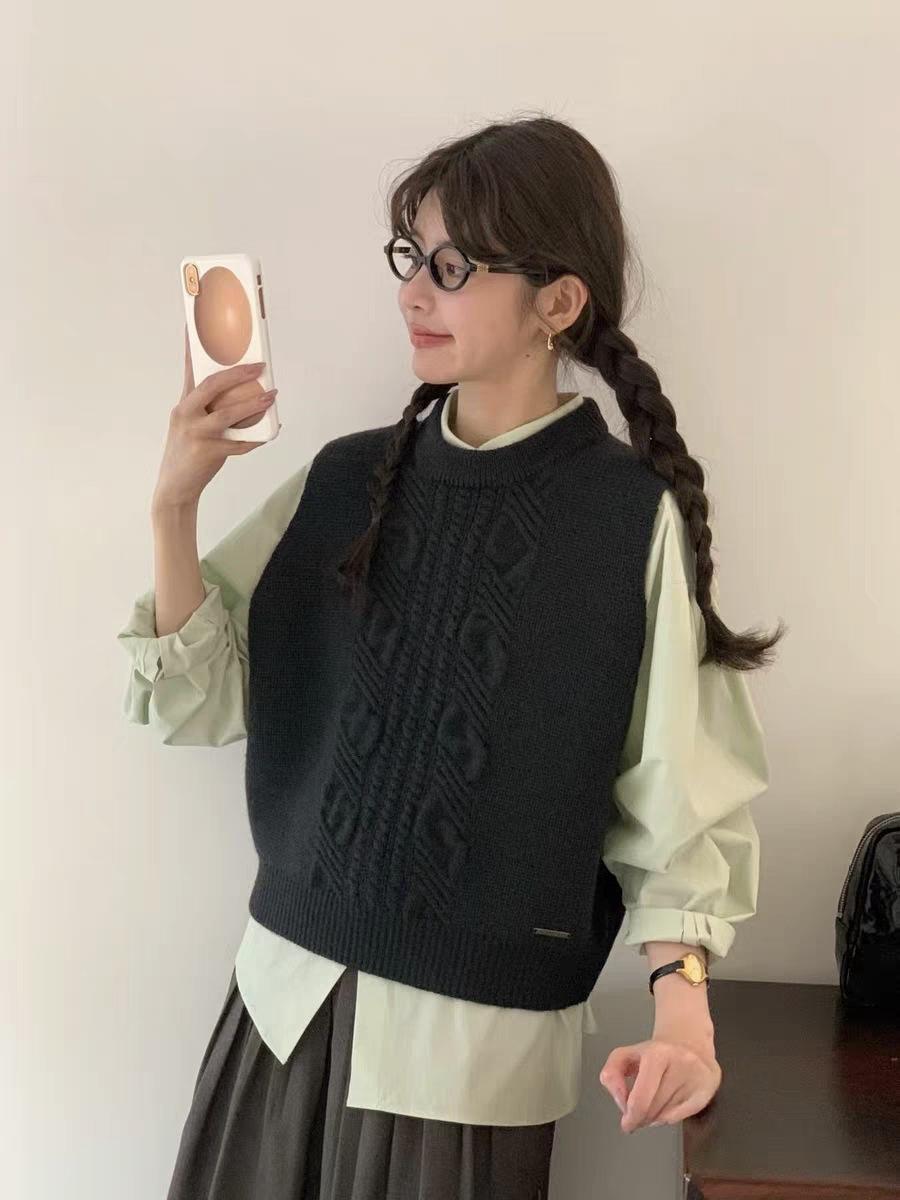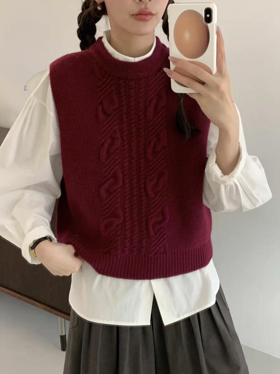 Pre-Otoño 2024 Estilo Coreano Dongdaemun Chaleco de Punto Simple de Lana Suave sin Mangas Versátil Cuello Redondo