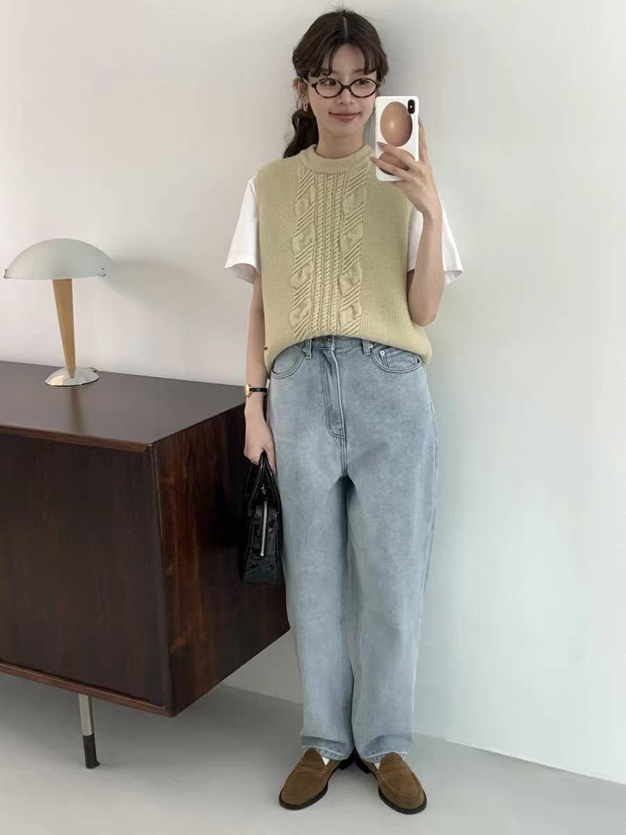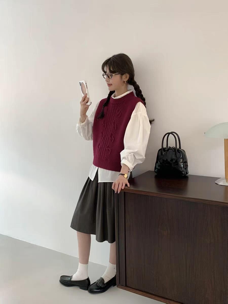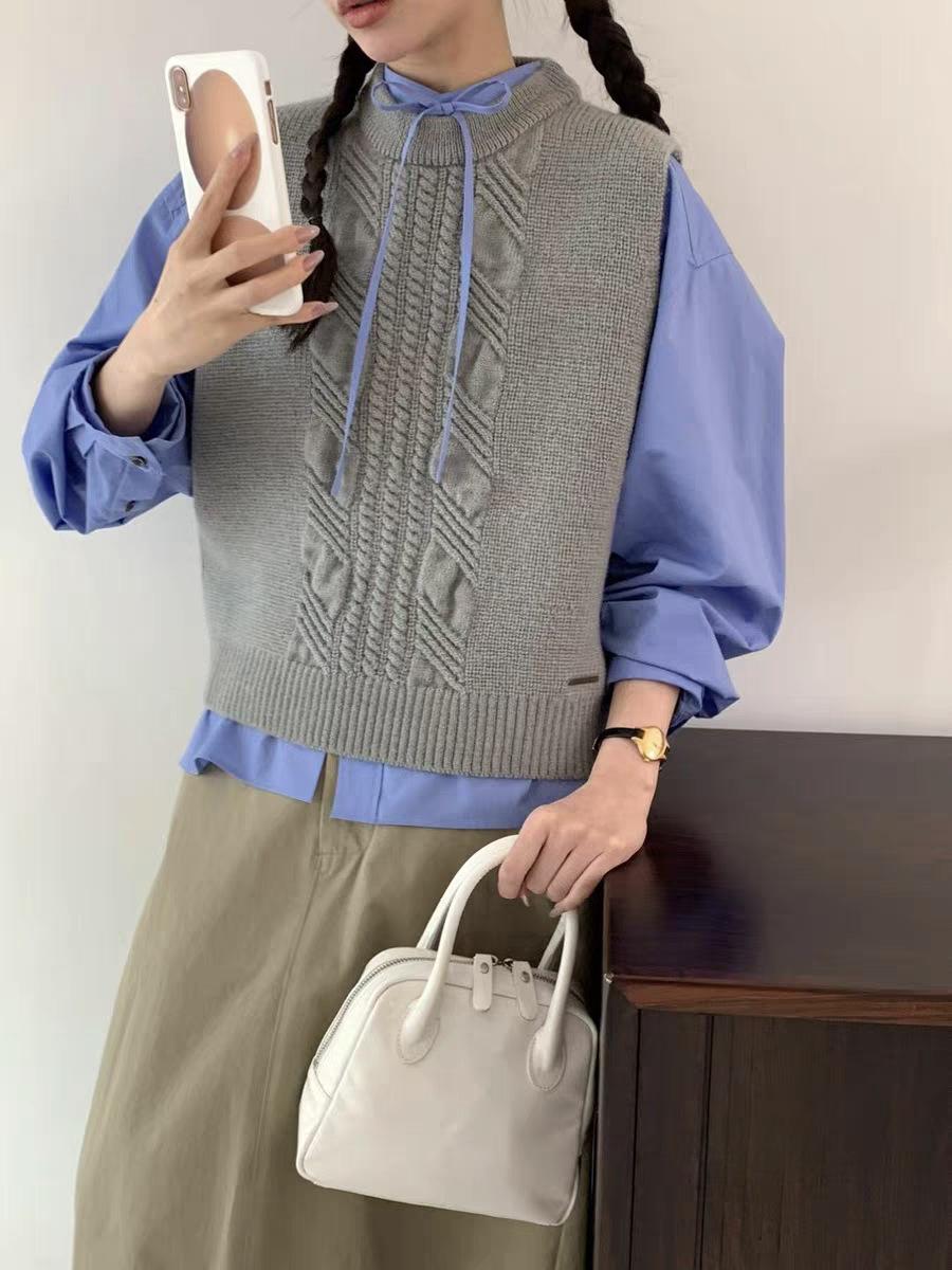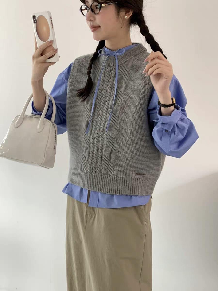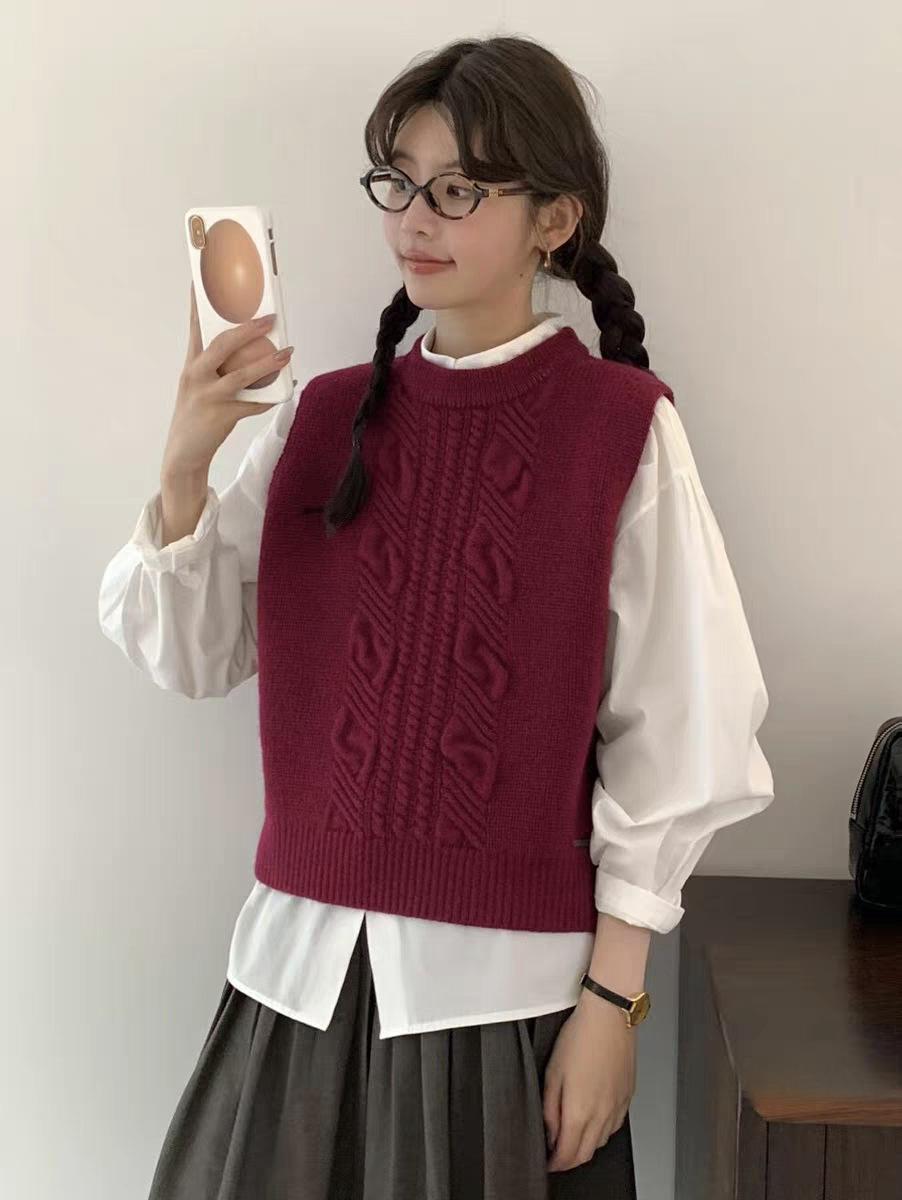 Pre-Otoño 2024 Estilo Coreano Dongdaemun Chaleco de Punto Simple de Lana Suave sin Mangas Versátil Cuello Redondo