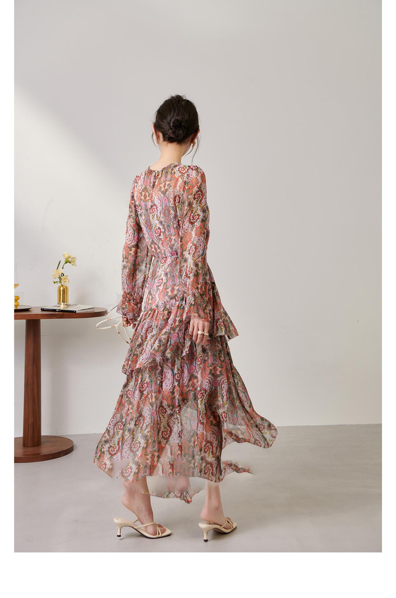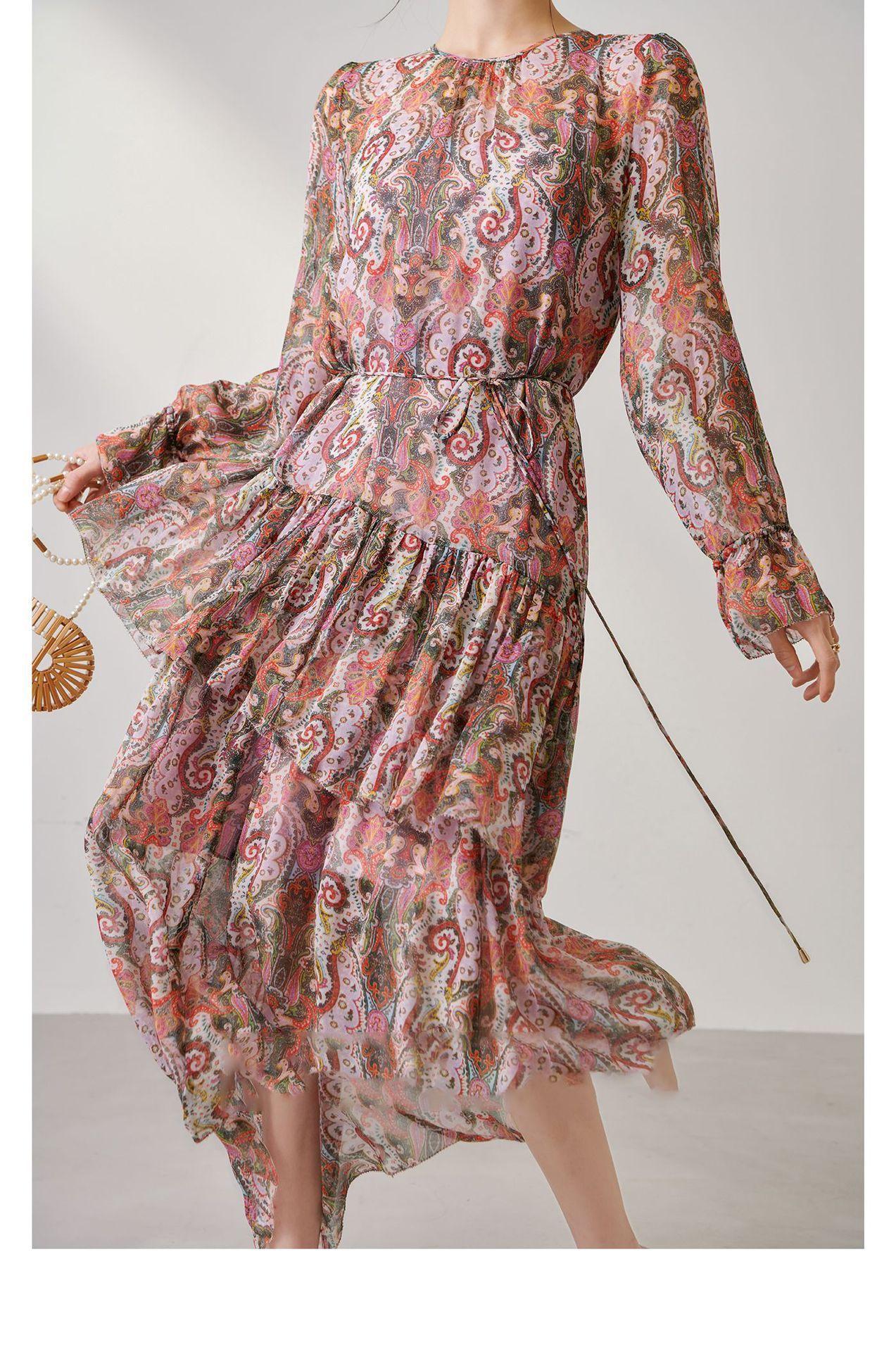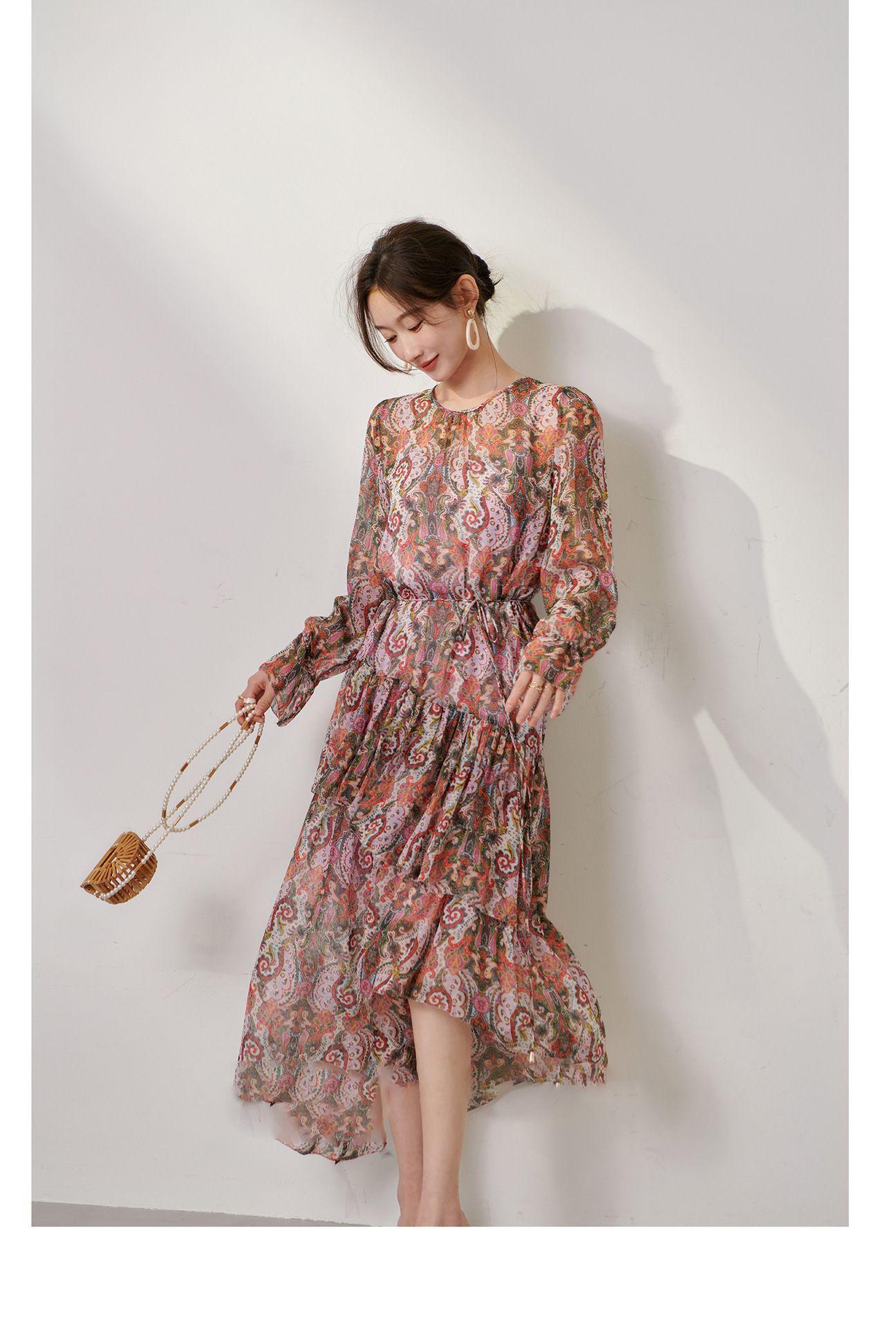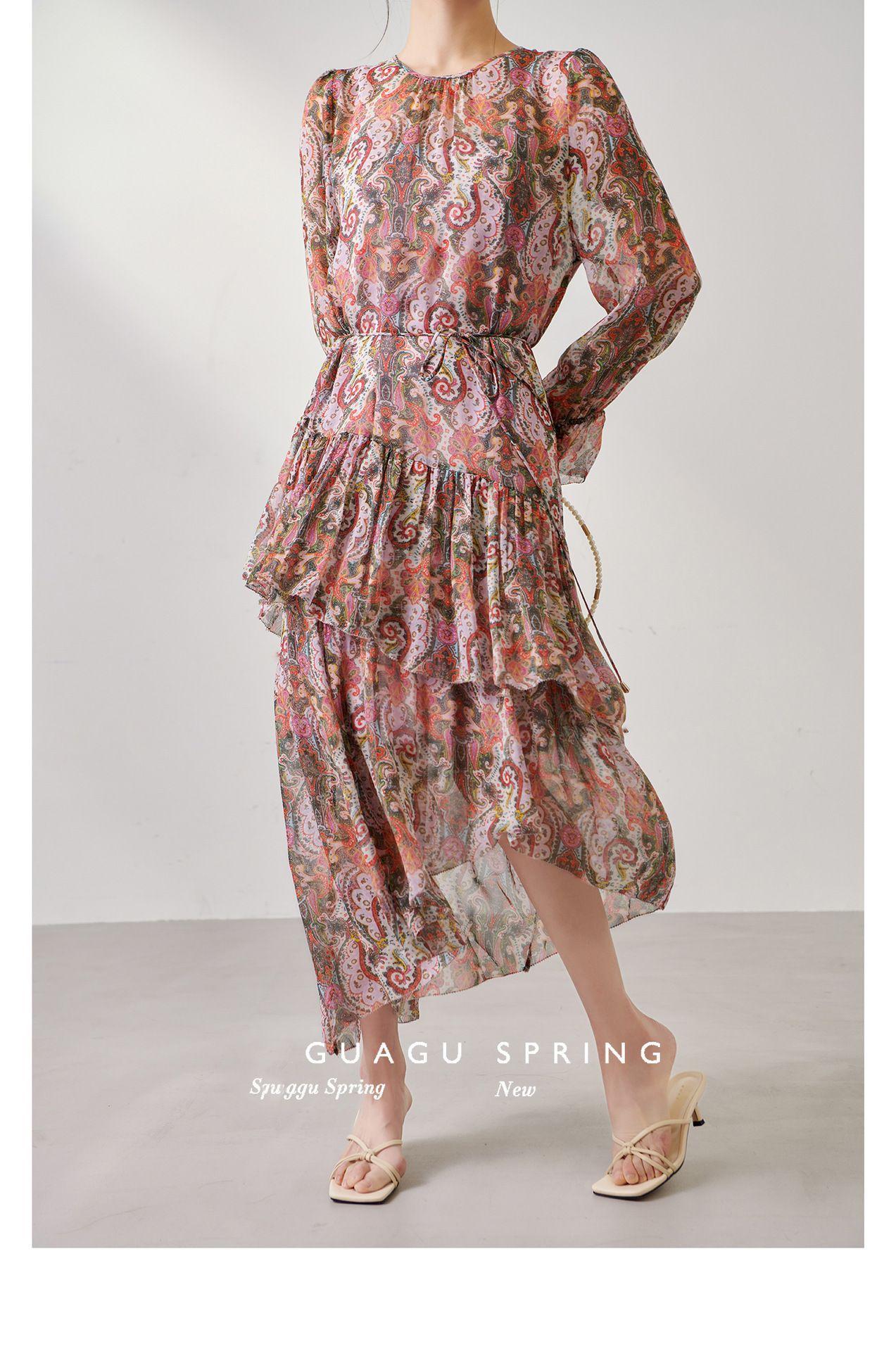 Vestido de seda Primavera/Verano 2024 Nuevo Vestido de Hada de Manga Larga para Vacaciones Estampado Georgetown 100 Seda de Morera Vestido Largo