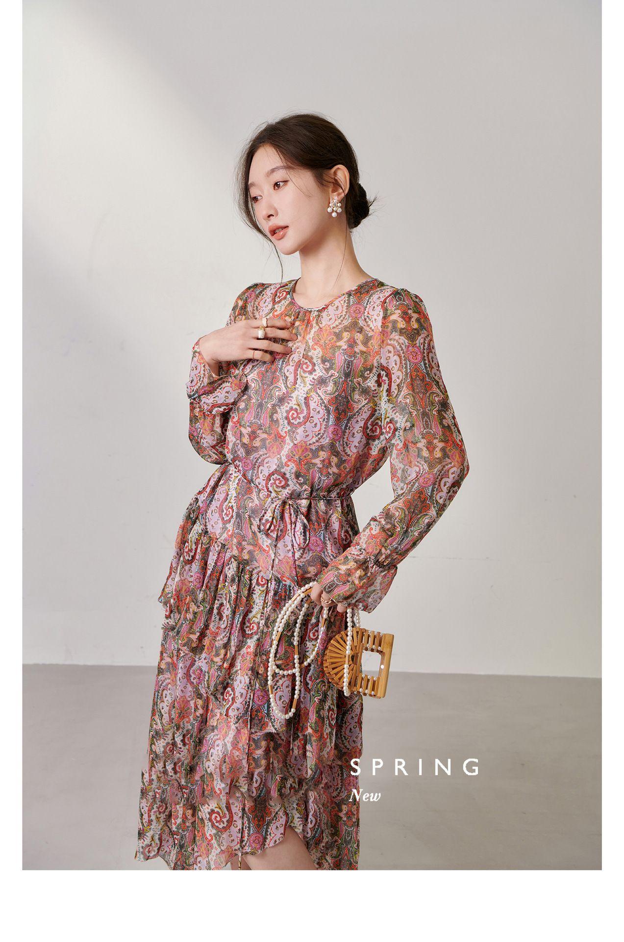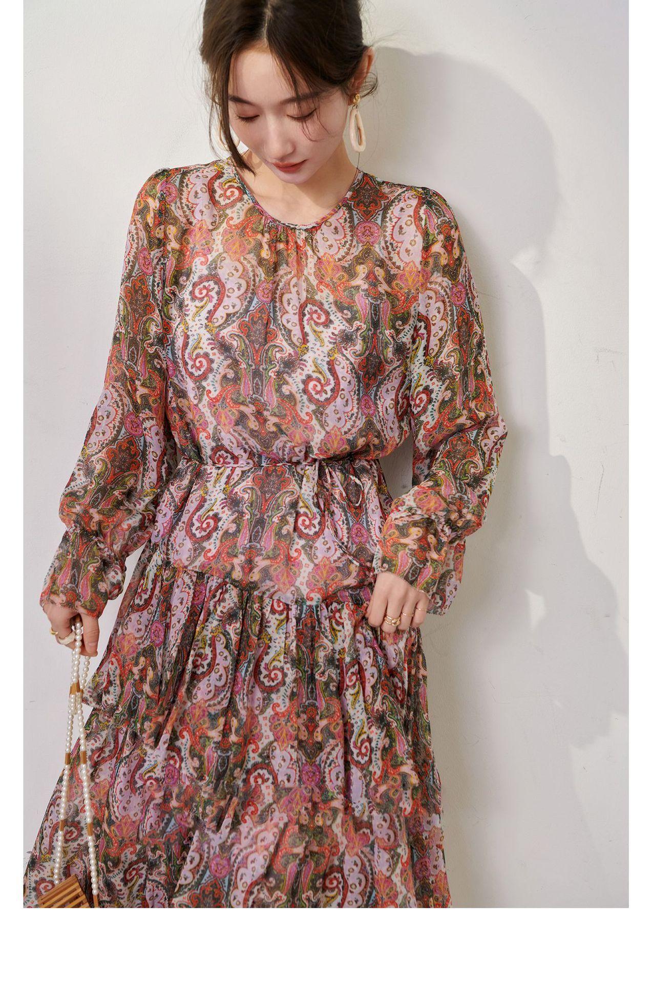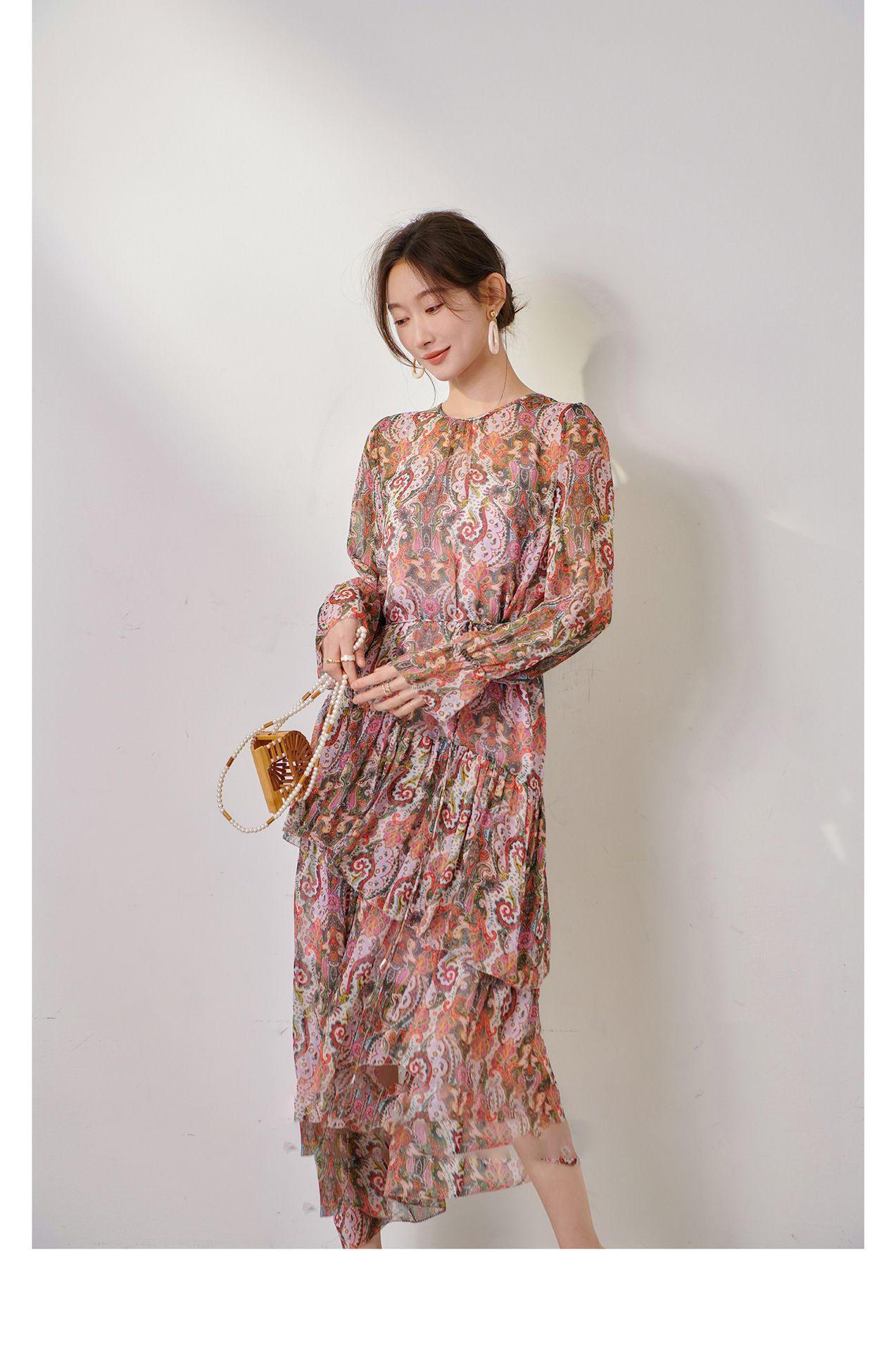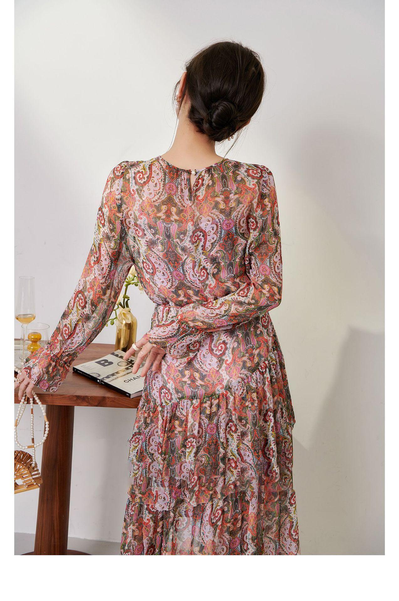 Vestido de seda Primavera/Verano 2024 Nuevo Vestido de Hada de Manga Larga para Vacaciones Estampado Georgetown 100 Seda de Morera Vestido Largo