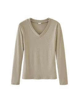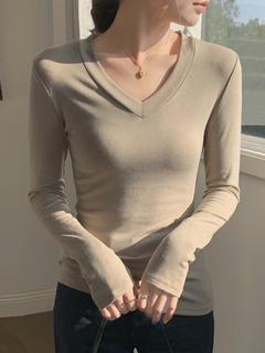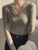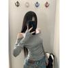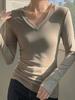 Otoño 2024 Nueva camiseta elegante de manga larga con cuello en V estilo Spice Girl adelgazante y entallada, top de moda que combina con todo.