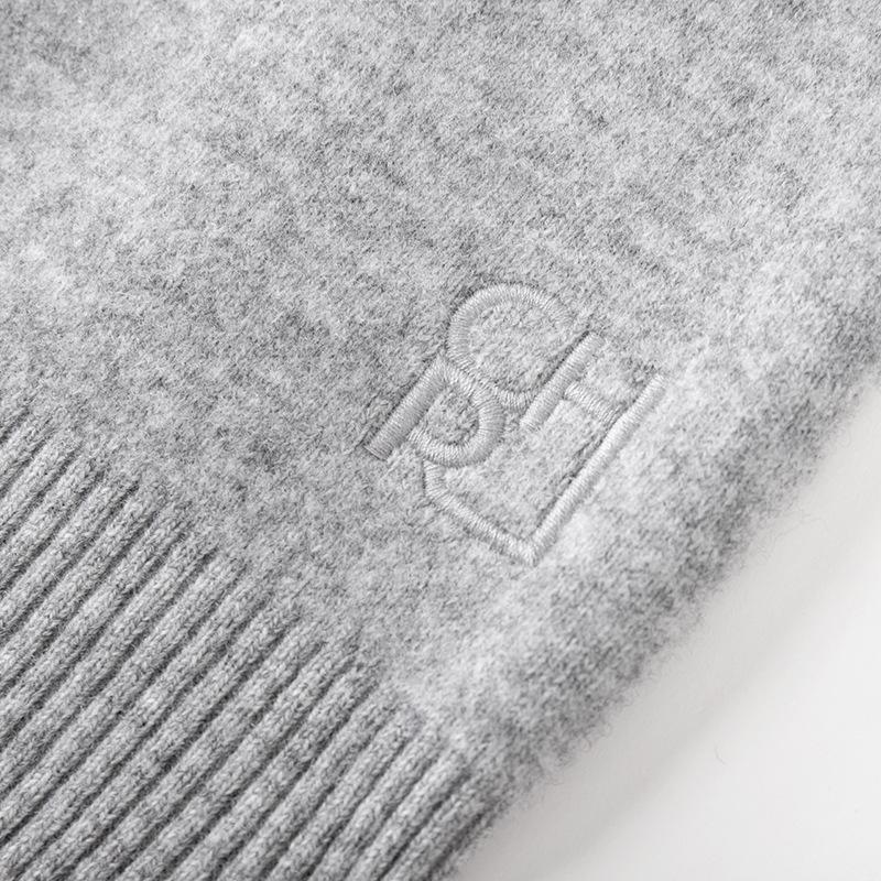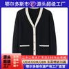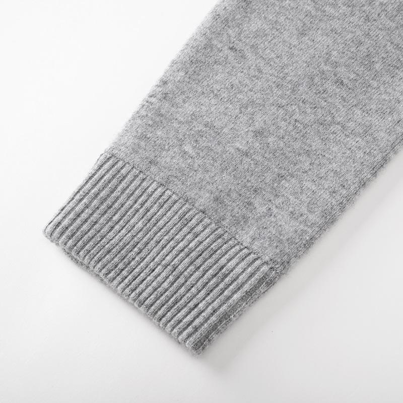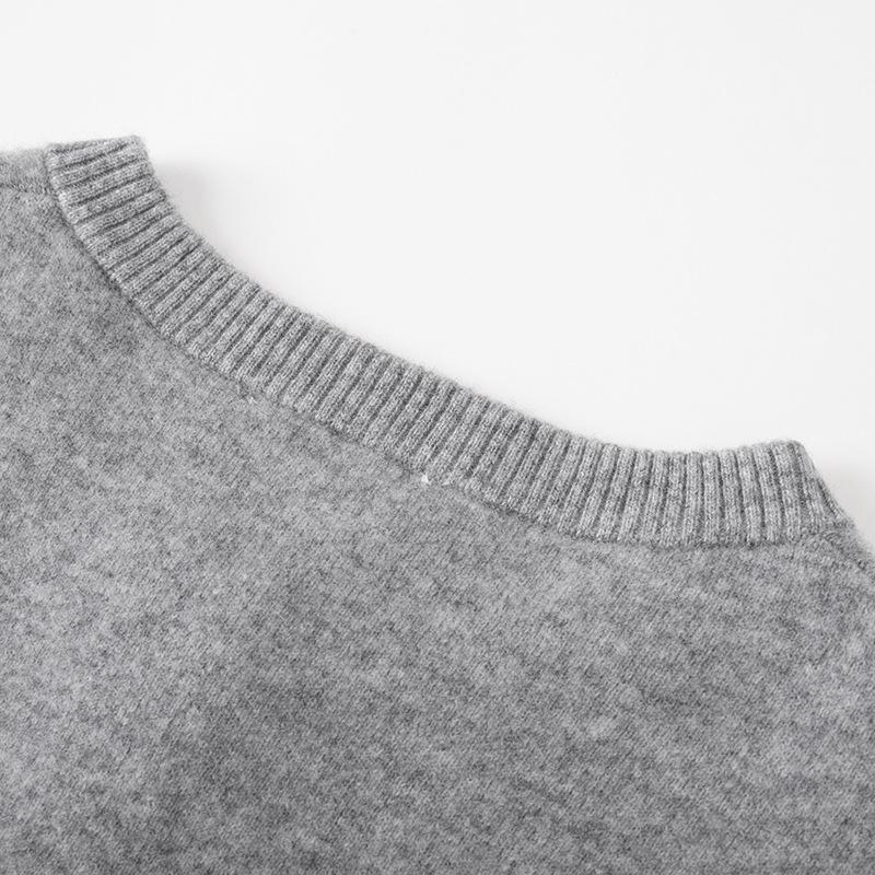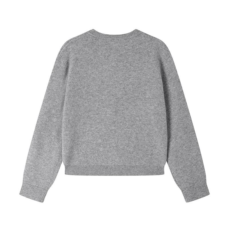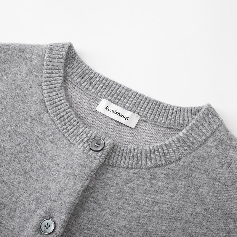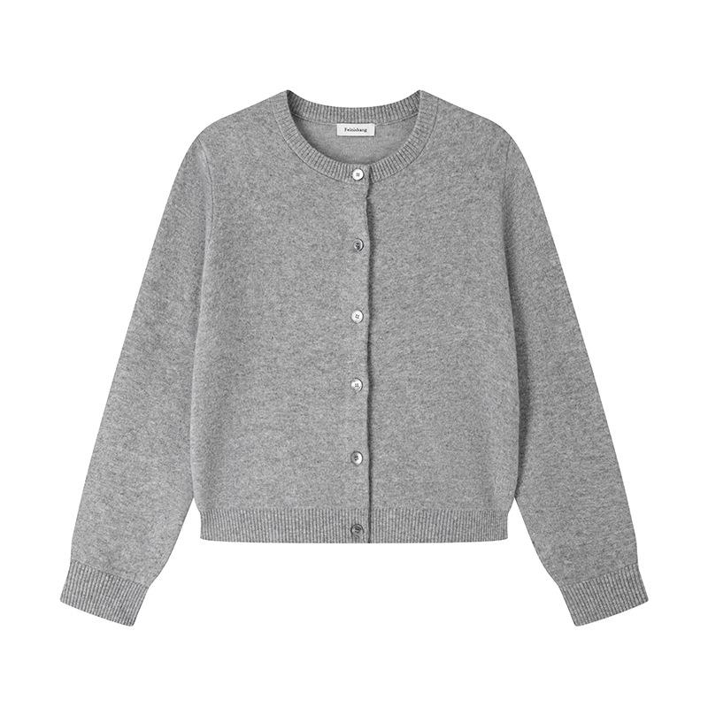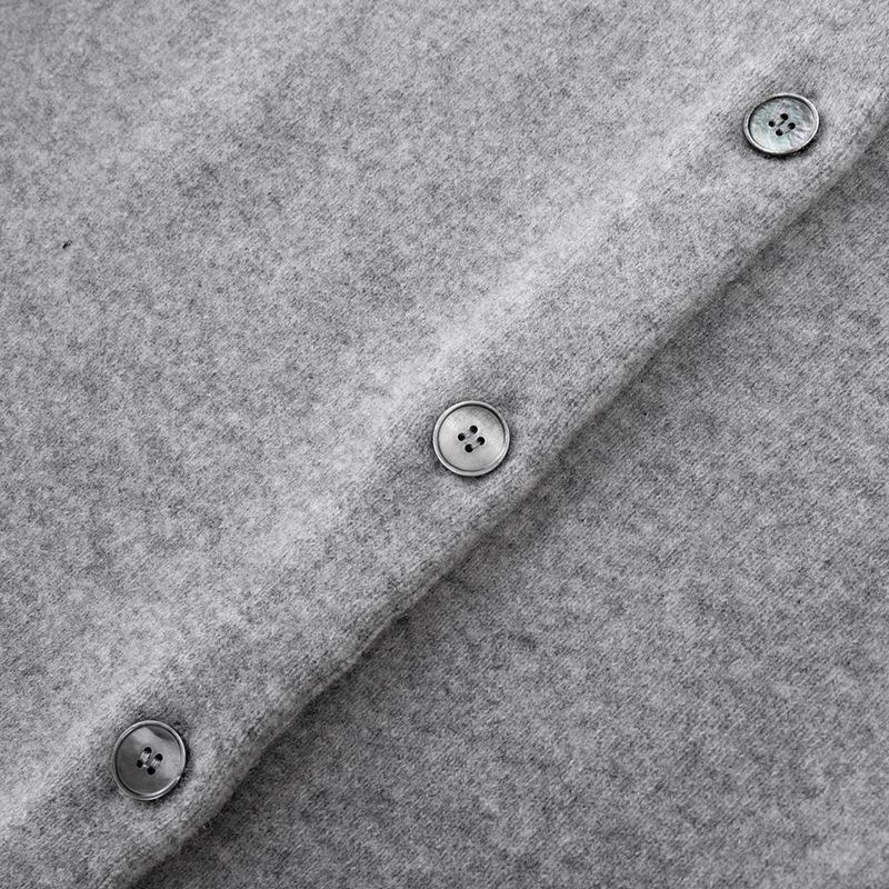Lujo Ligero Otoño e Invierno Nuevo Elegante Dama Gris Cuello Redondo Manga Larga Botonadura Sencilla 100% Lana Cárdigan Tejido para Mujer