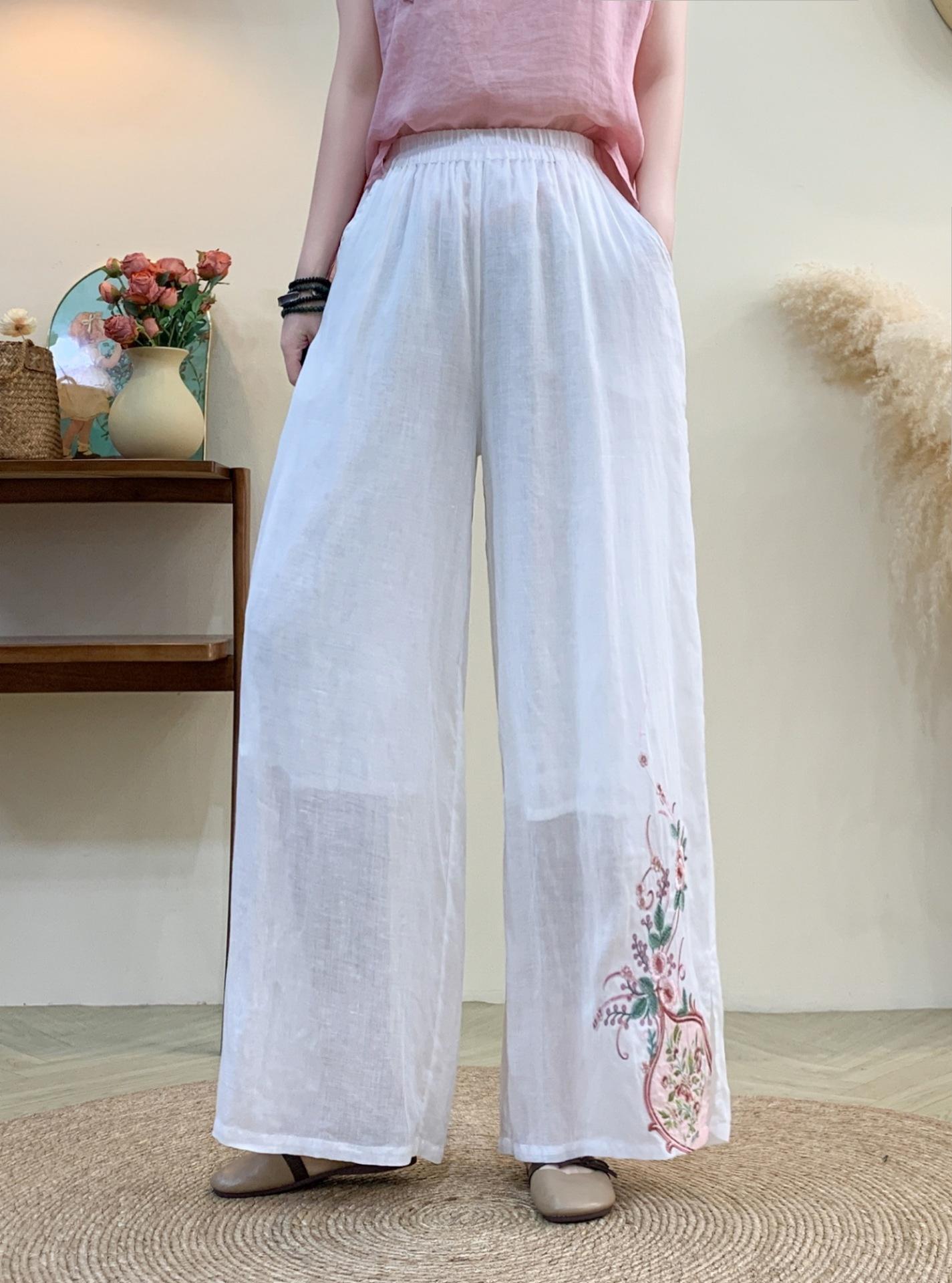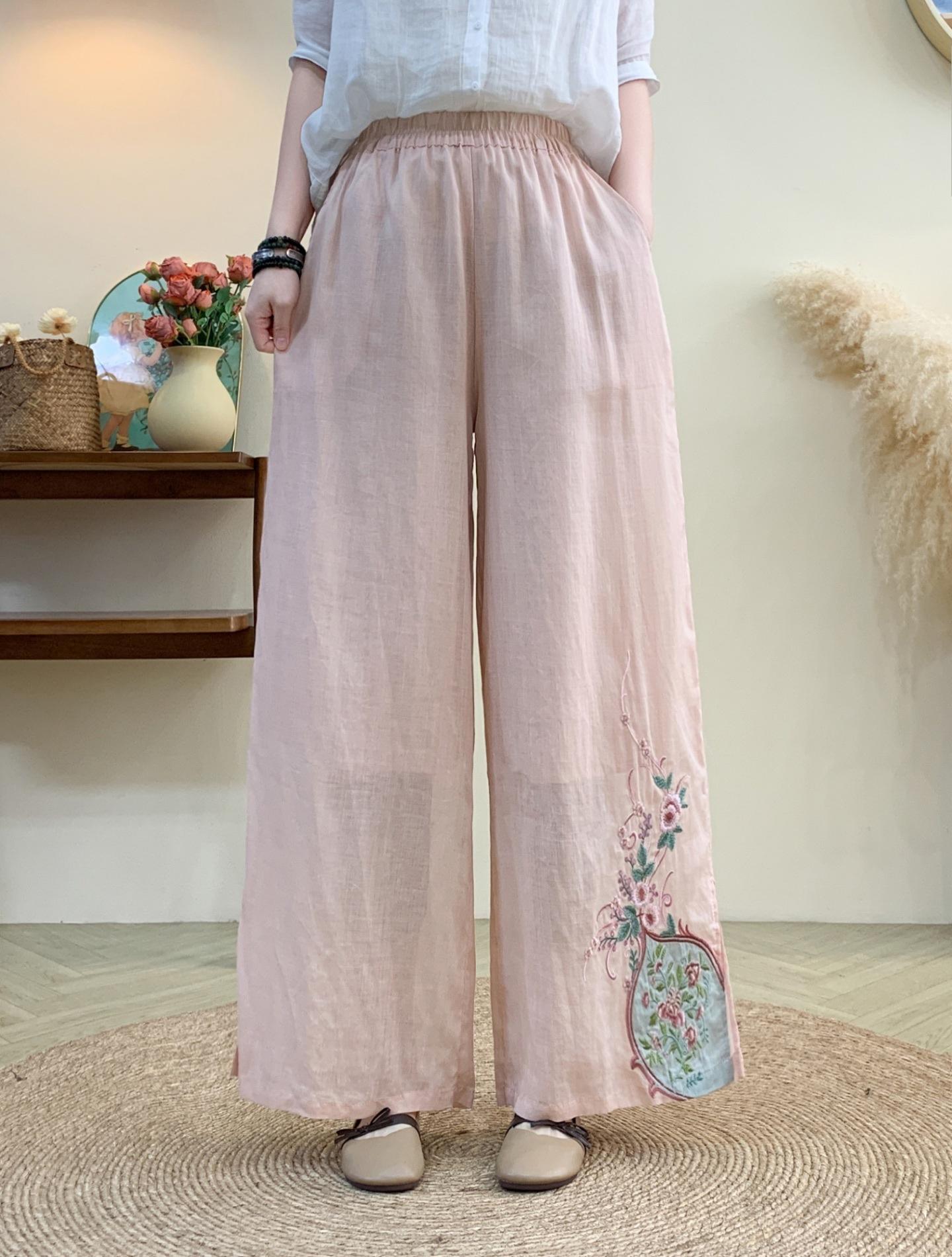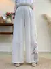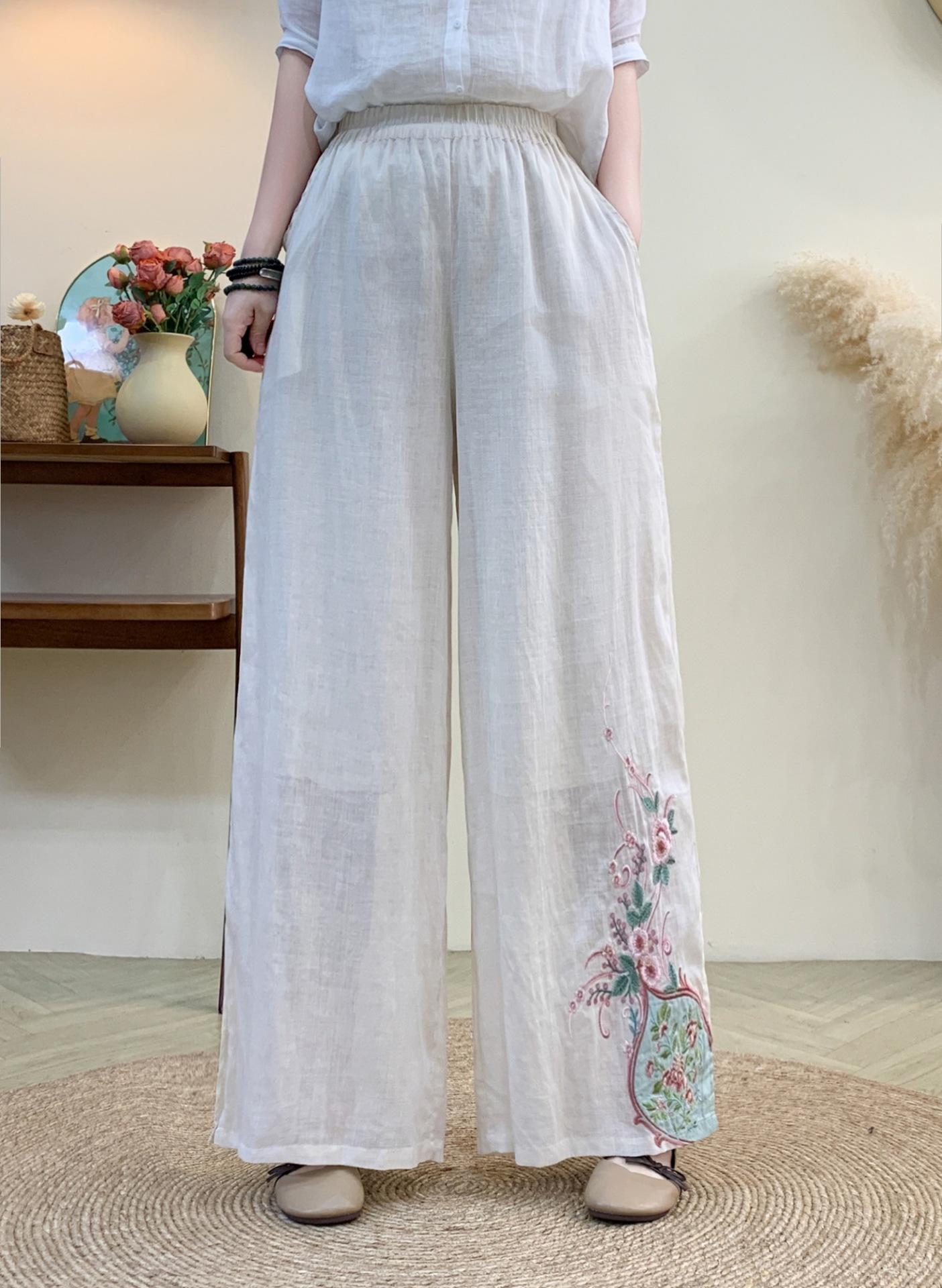 Pantalones casuales de ramio para mujer, verano 2025, bordados industriales, sueltos, adelgazantes, artísticos, ligeros, de pierna ancha y rectos, finos, 6963