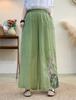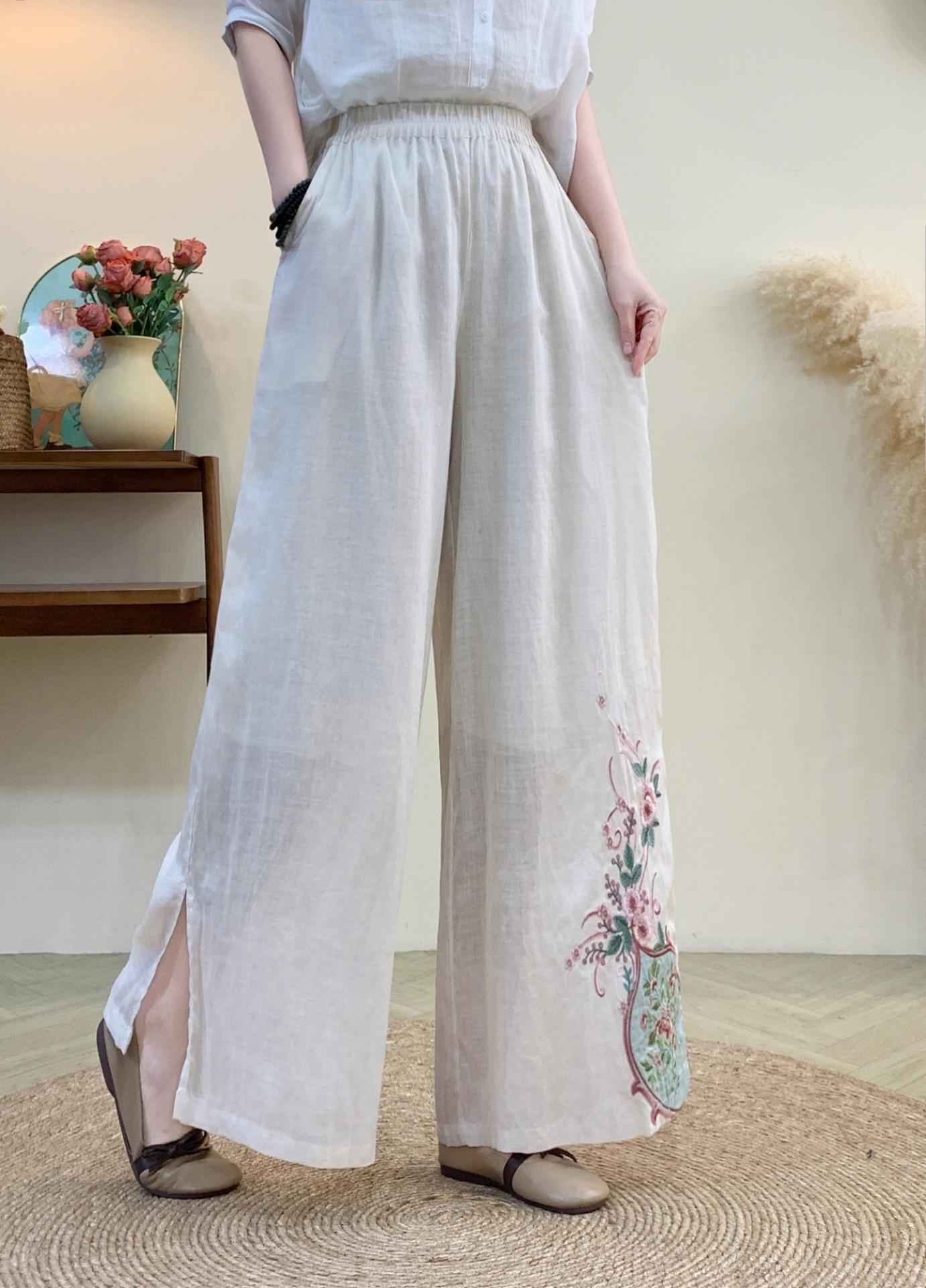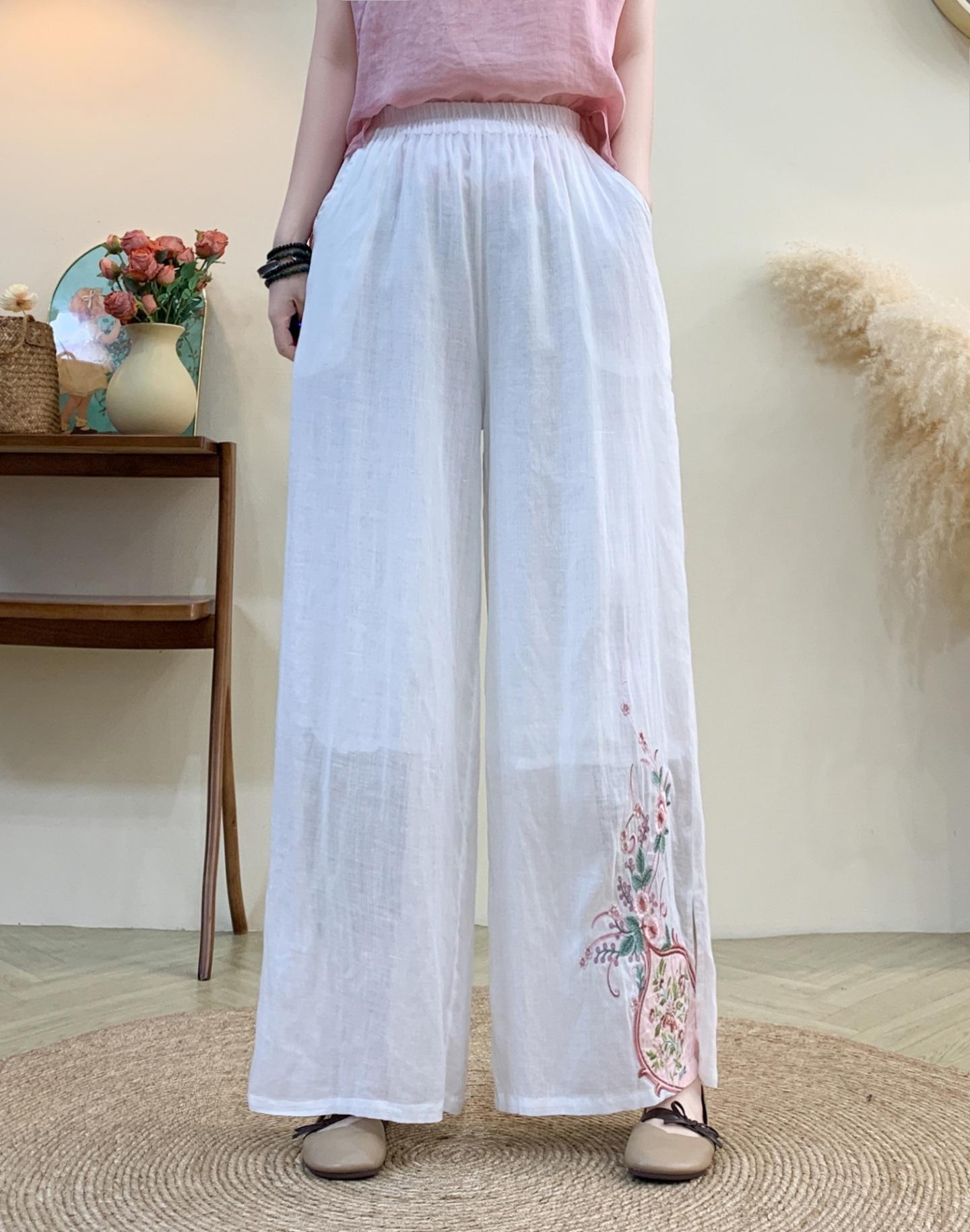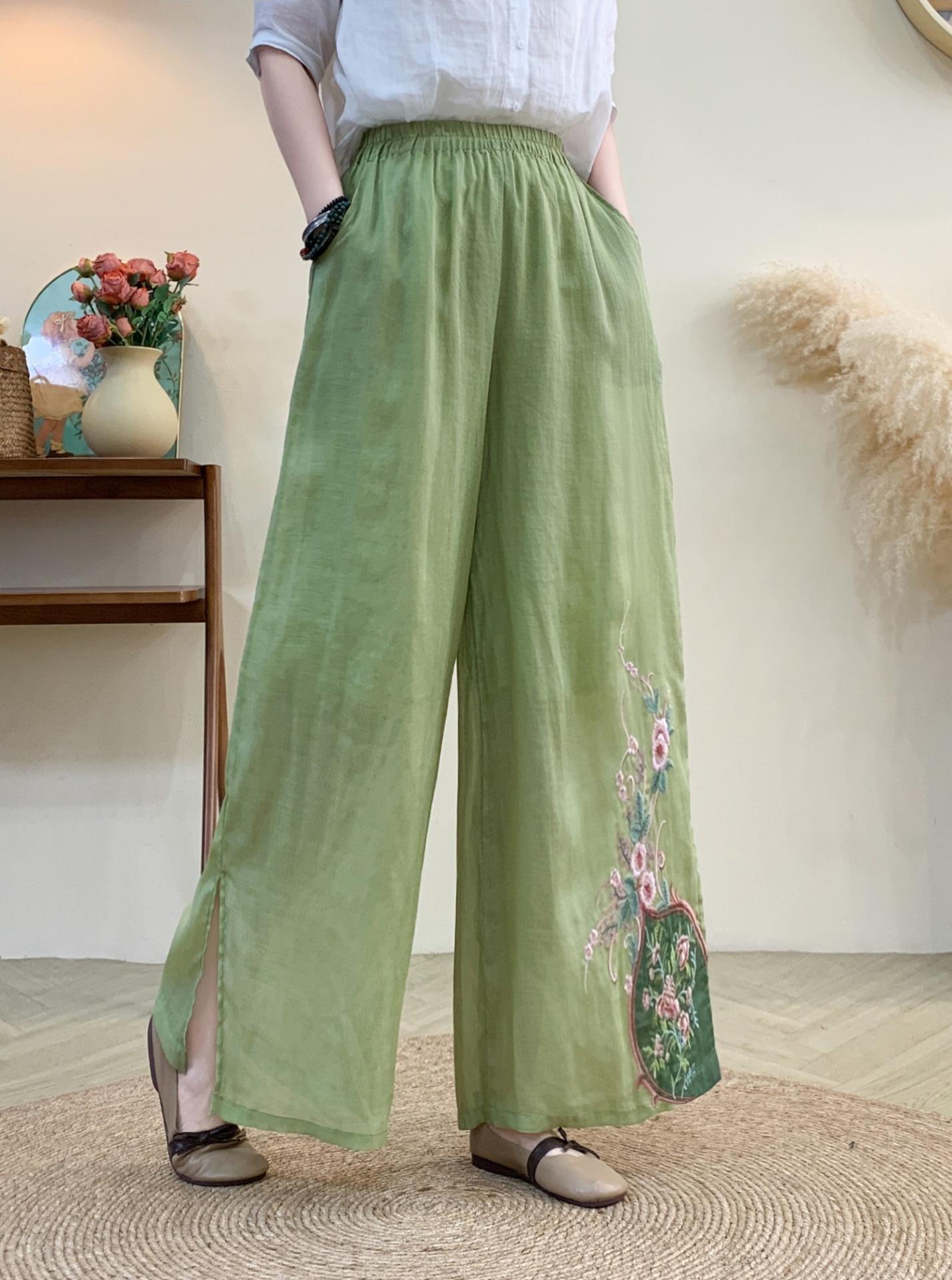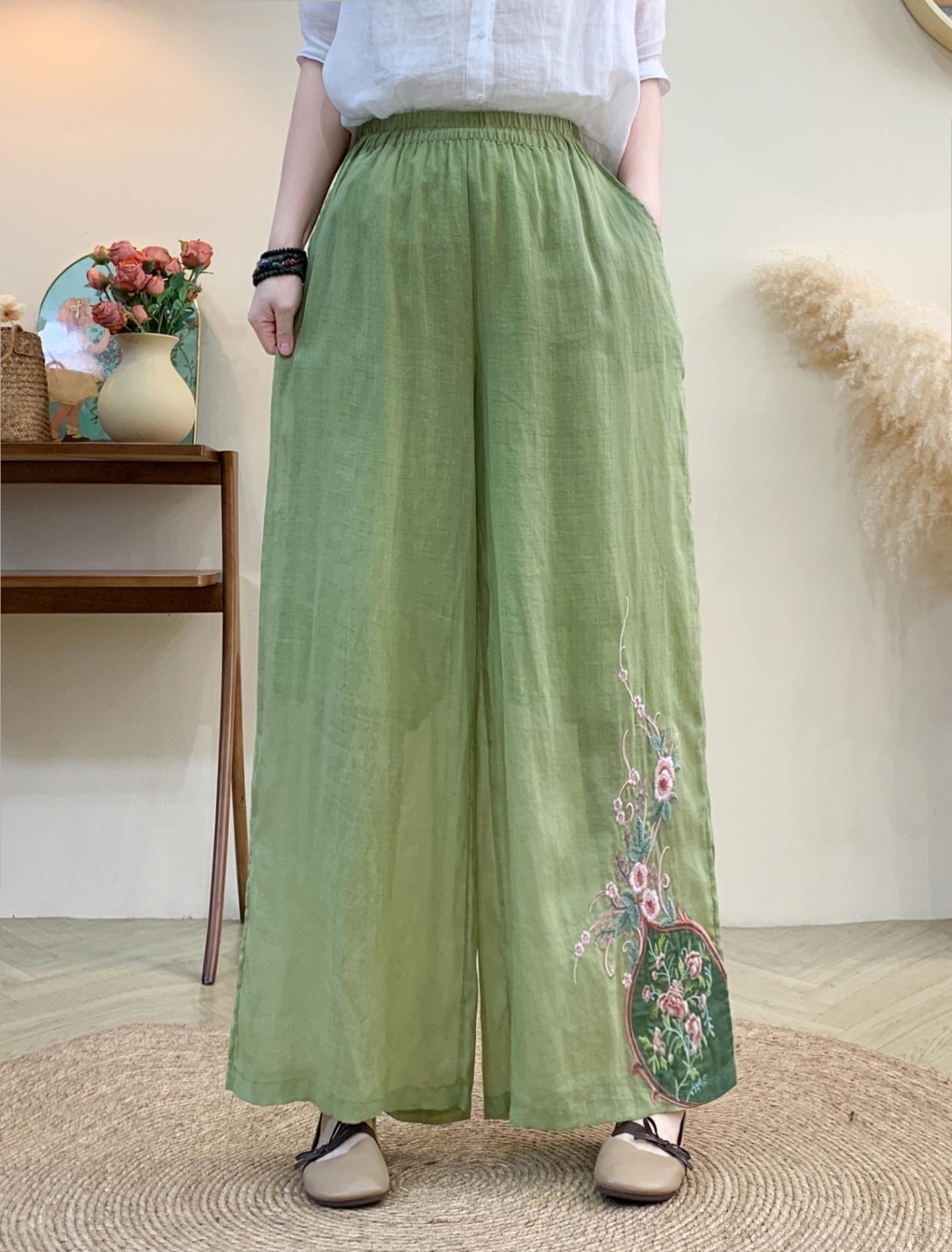 Pantalones casuales de ramio para mujer, verano 2025, bordados industriales, sueltos, adelgazantes, artísticos, ligeros, de pierna ancha y rectos, finos, 6963