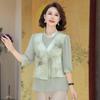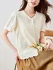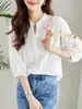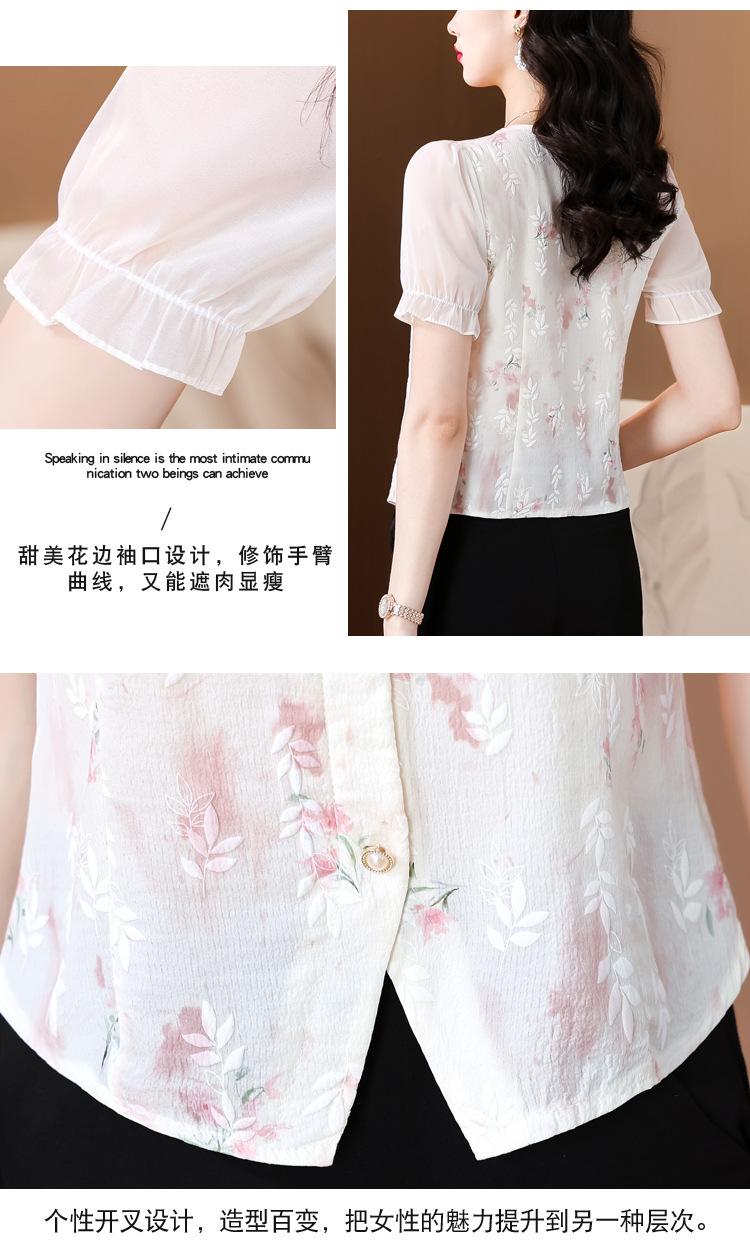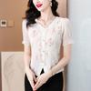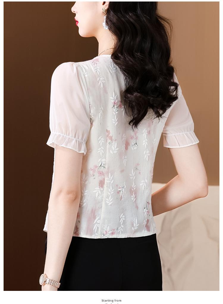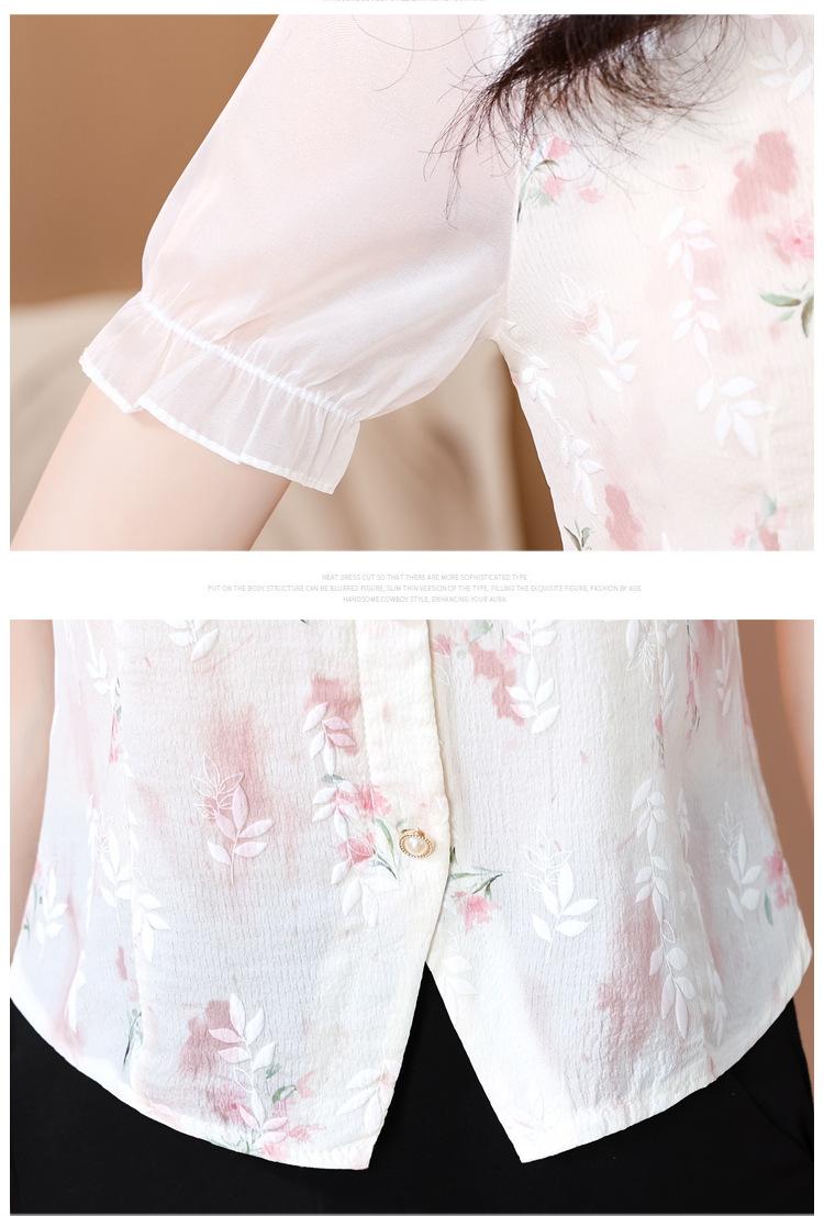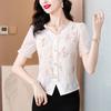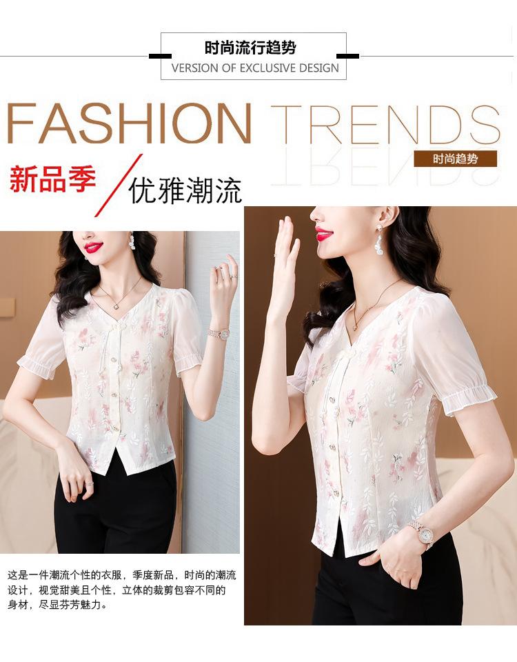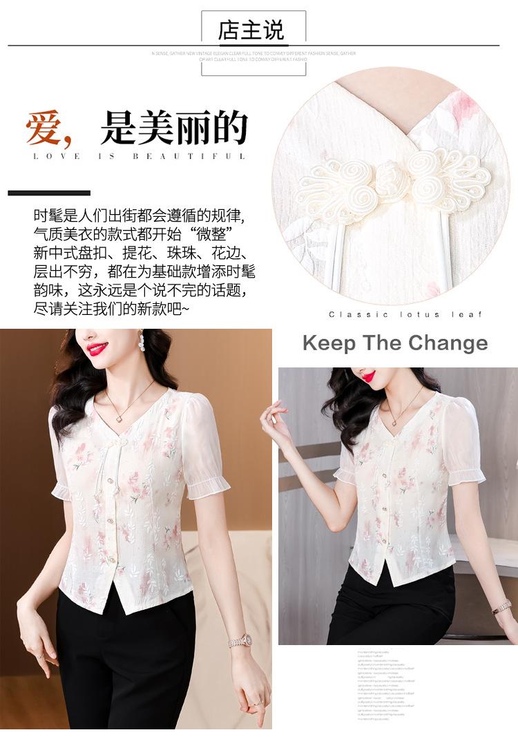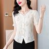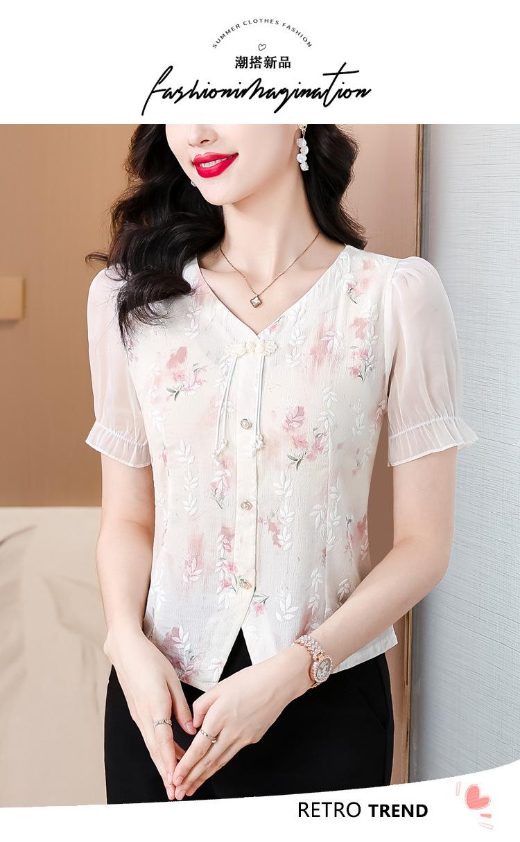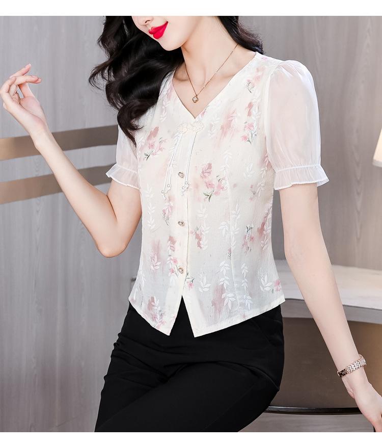Camisa de gasa con botones Guofeng para mujer, prenda de verano 2025, nueva blusa adelgazante con cuello en V y estampado para madres.