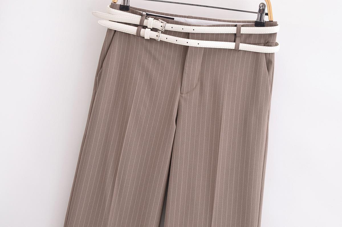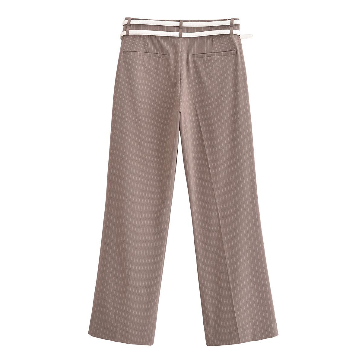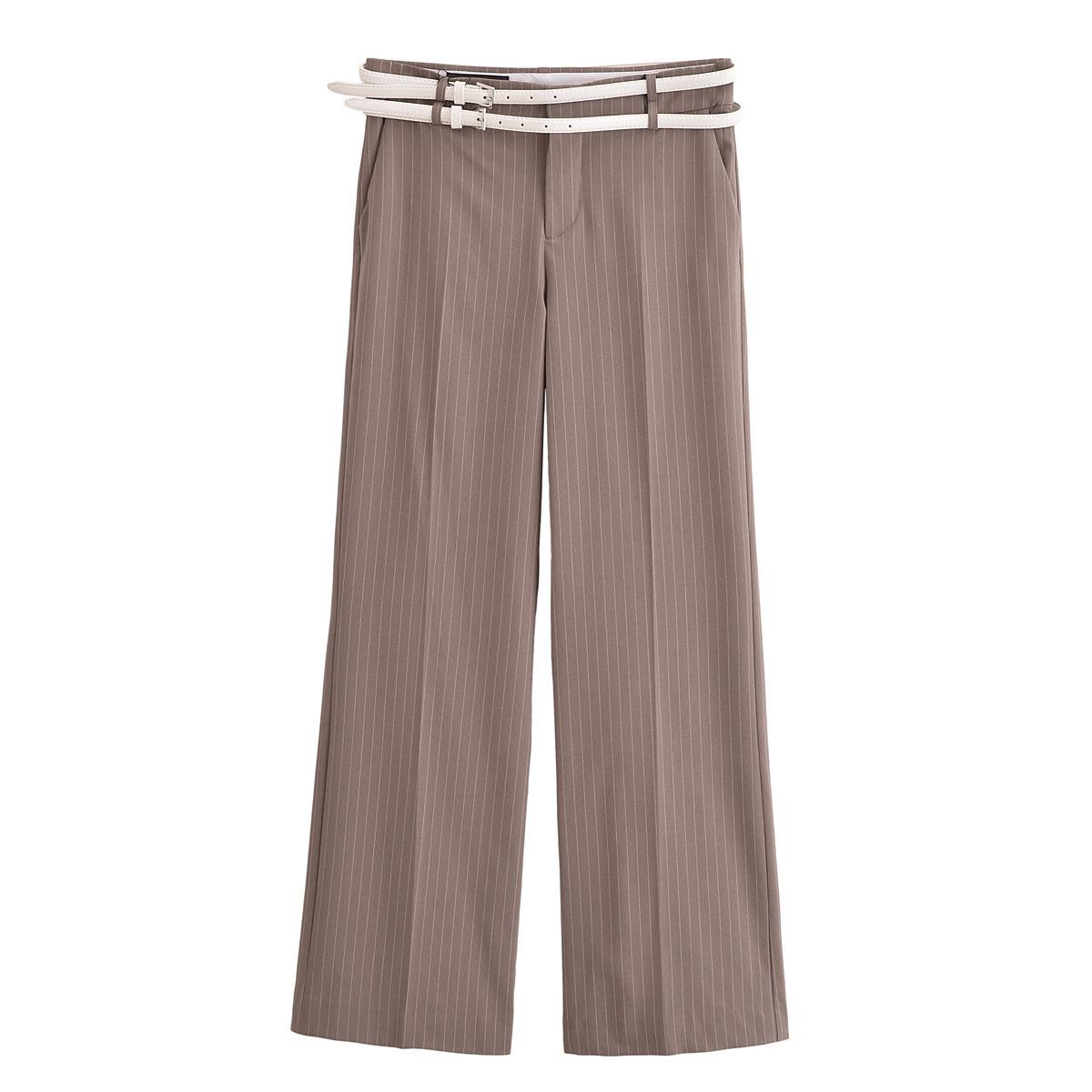 Pantalones rectos con doble cinturón y rayas para mujer, moda urbana transfronteriza europea y americana, primavera 2025, w040 2507