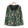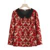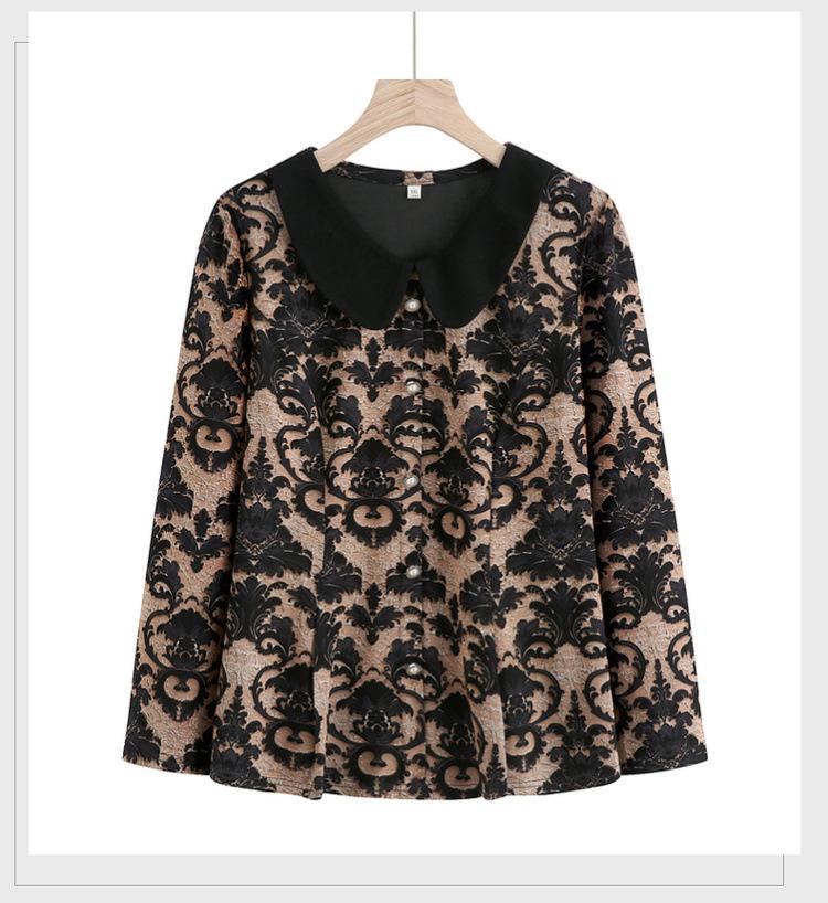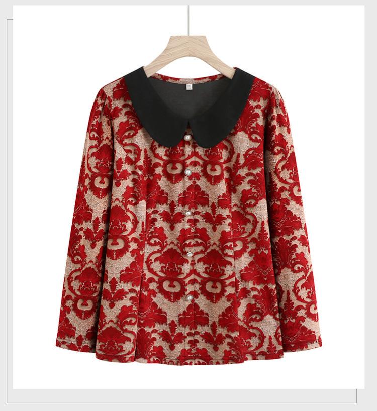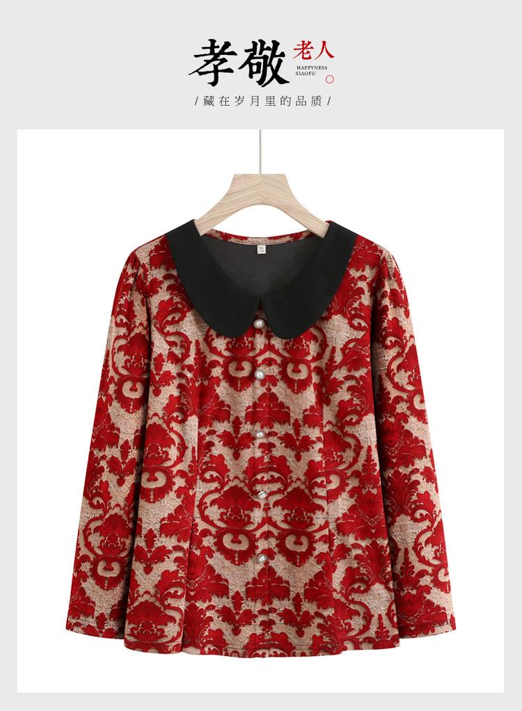 Camisa pequeña de estilo occidental con flores tridimensionales nuevas para mujeres de mediana edad y mayores, camisa básica de manga larga para madres extranjeras de mediana edad, ropa informal de primavera