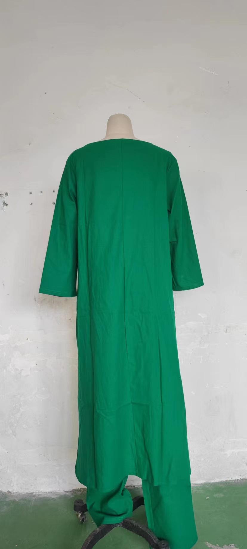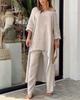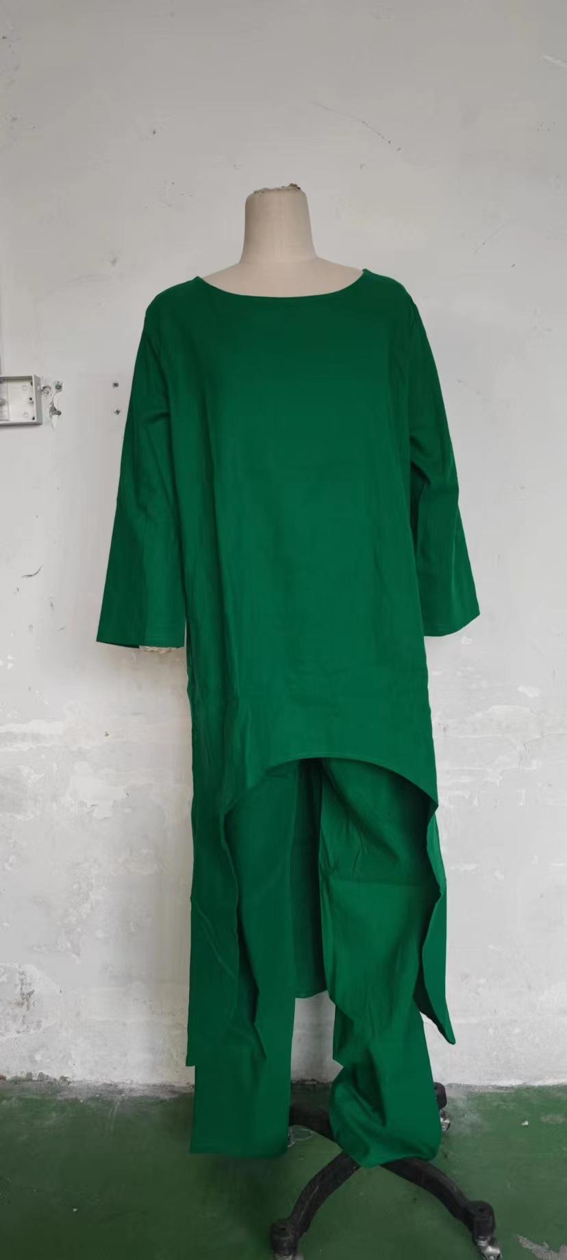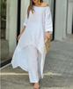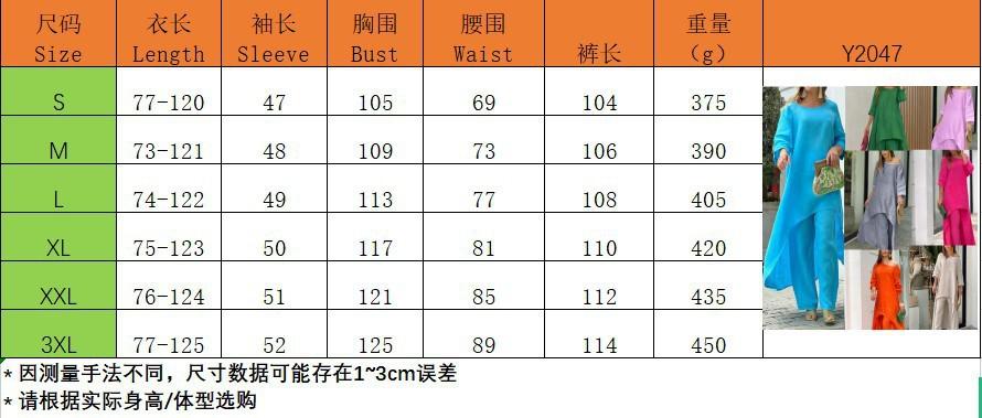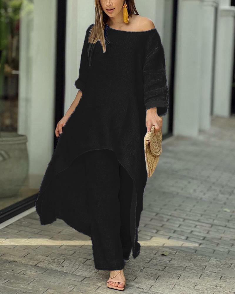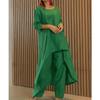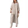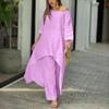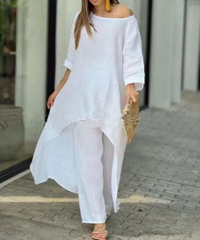 Conjunto de dos piezas de algodón y lino para mujer, moda europea y americana, informal, de talla grande, irregular, de manga larga, con pantalones de pierna ancha