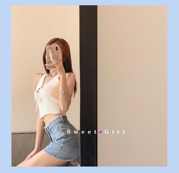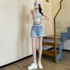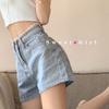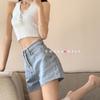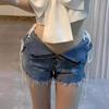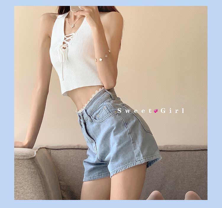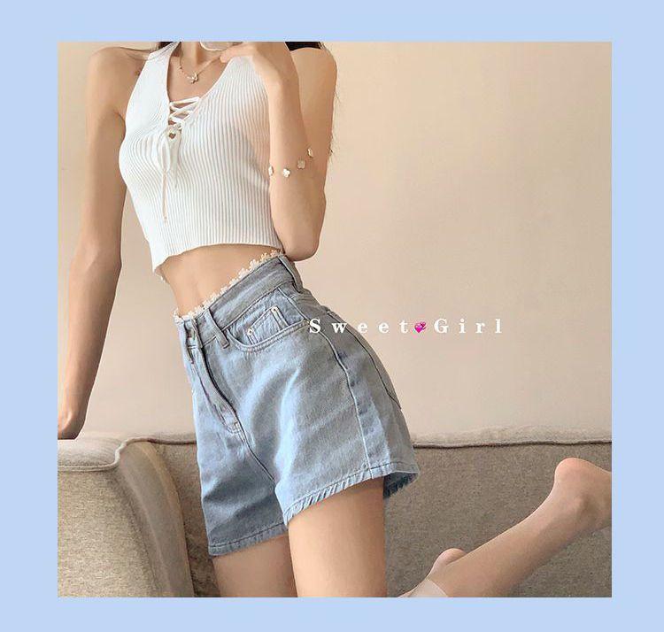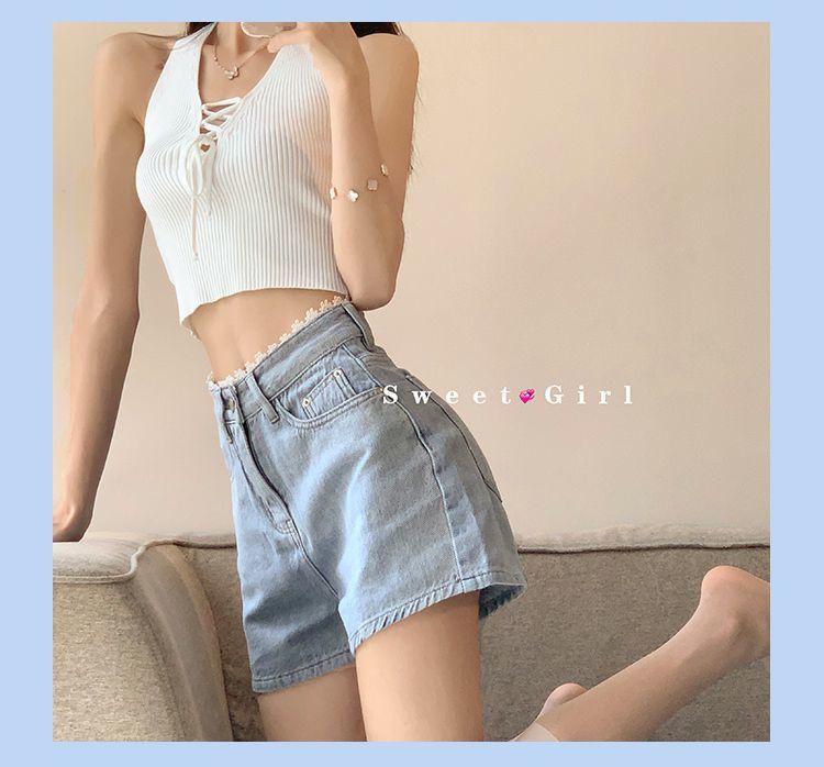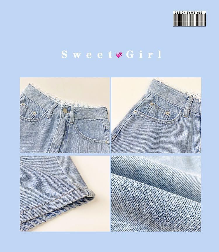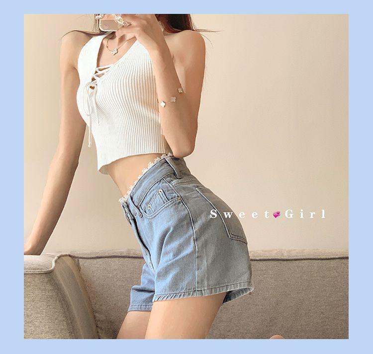 Pantalones cortos vaqueros de cintura alta con borde de encaje para mujer, pantalones cortos sexis de verano para mujer, pantalones adelgazantes de pierna ancha y sueltos a la moda