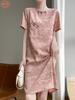 Vestido estilo chino Cheongsam 2024 Nuevo verano Estilo retro nacional Talla grande Elegante Slim-fit Adelgazante Color sólido Largo medio