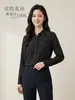 Estilo Nuevo Primavera y Otoño Crepé de Seda de Morera Camisa de Seda Estampada para Mujer Cuello Cuadrado Top Camisa Cárdigan Holgado de Manga Larga Ropa de Trabajo
