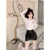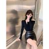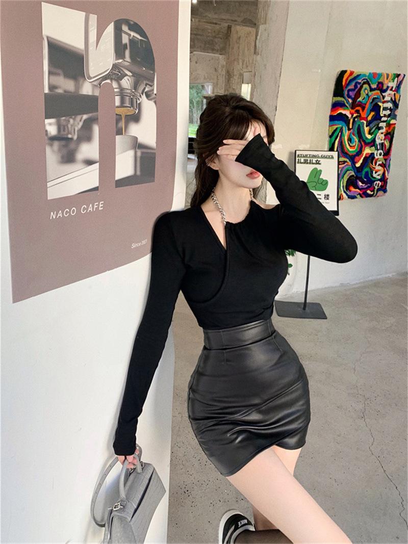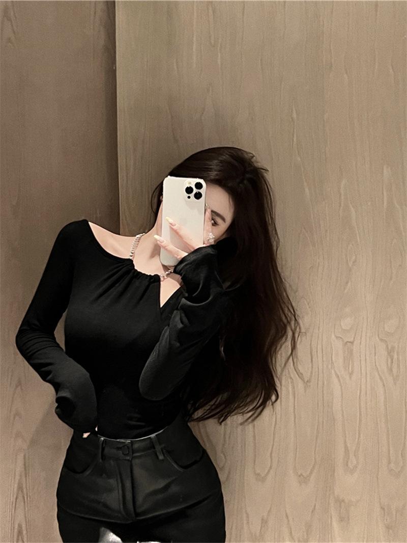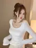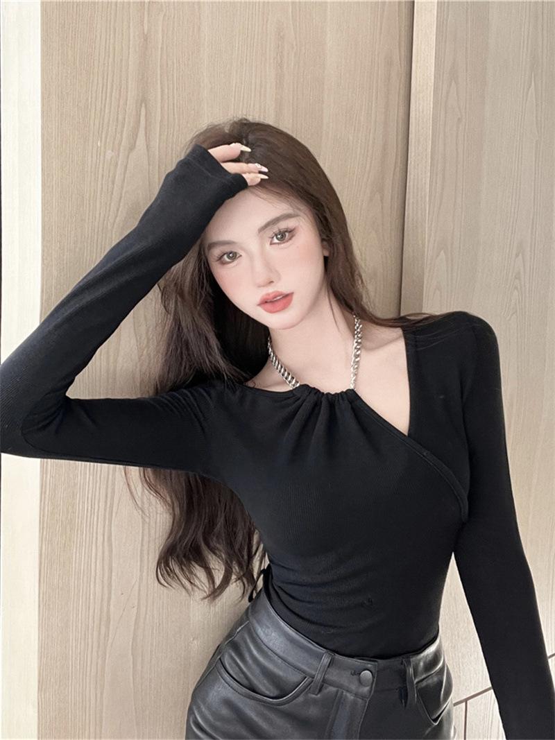 Camiseta de Otoño de Corte Slim Adelgazante Estilo Deseo Puro de Manga Larga Spice Girls Hombros Descubiertos Sexy Nicho Estilo Deseo Puro Top de Cuello Ins Mujeres
