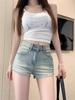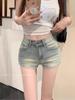Estilo Americano Chica Caliente Ropa Exterior Pantalones Cortos Jeans Verano para Mujer Nuevo Cintura Alta Viejo Ajustado Rectos Pantalones Cortos Pantalones Cortos