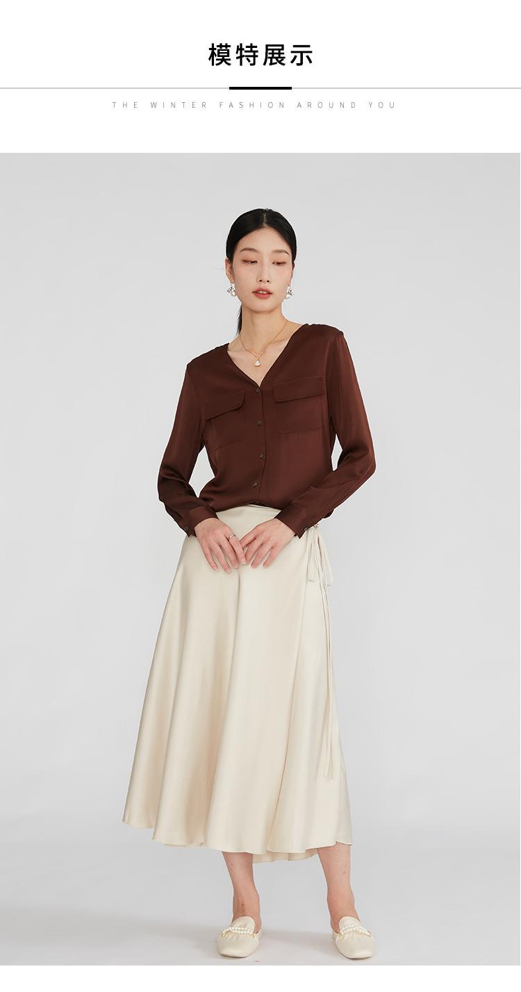 Tejido de seda, extremadamente cómodo al tacto, brillo elegante. La parte superior del cuerpo es agradable para la piel y cómoda, y la seda se conoce como "la segunda capa de la piel humana". La combinación de colores está llena de feminidad romántica, combinación de colores simple y elegante. El desperdicio en la fabricación de una prenda de seda es más del doble que el de una prenda común. Solo para hacer que las capas sean más refrescantes, este color es muy adecuado para el tono de piel. |