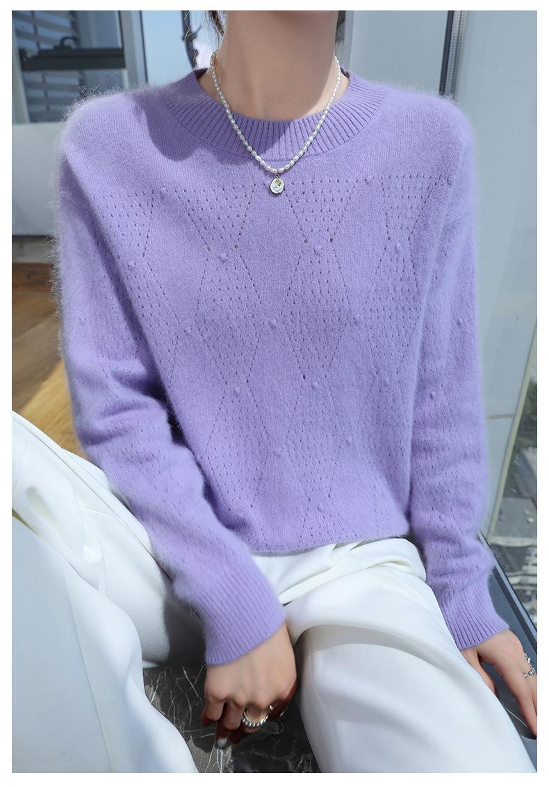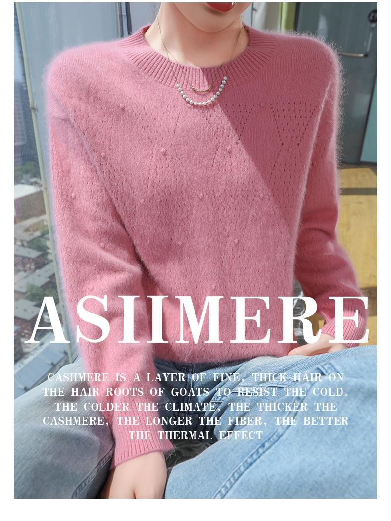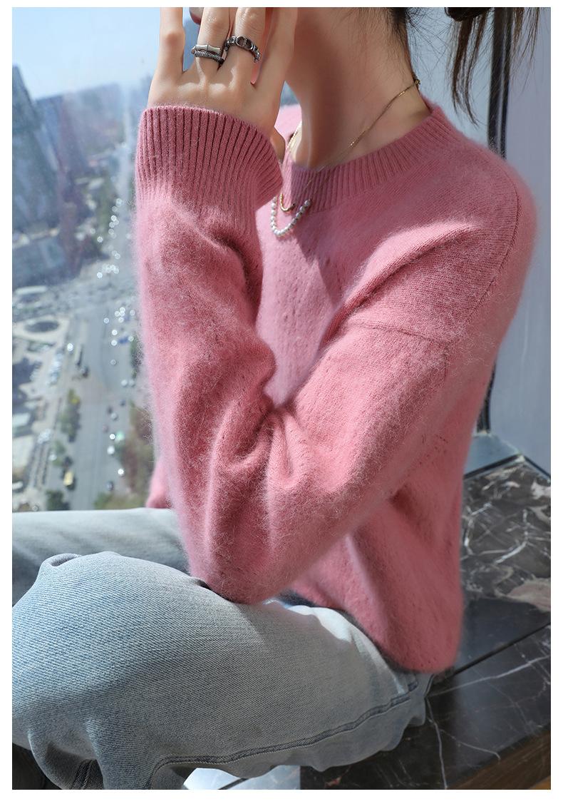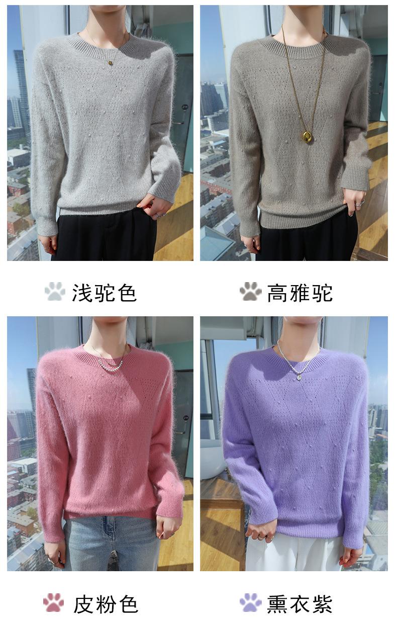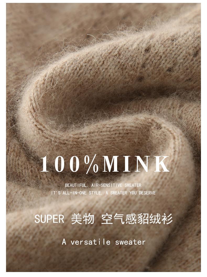 Suéter de punto de cuello redondo de visón, novedad de primavera y otoño de 2025, suéter holgado y calado, suéter de capa base cálido, ropa interior para mujer