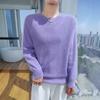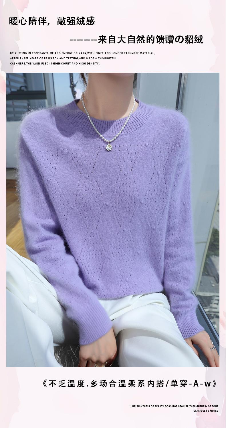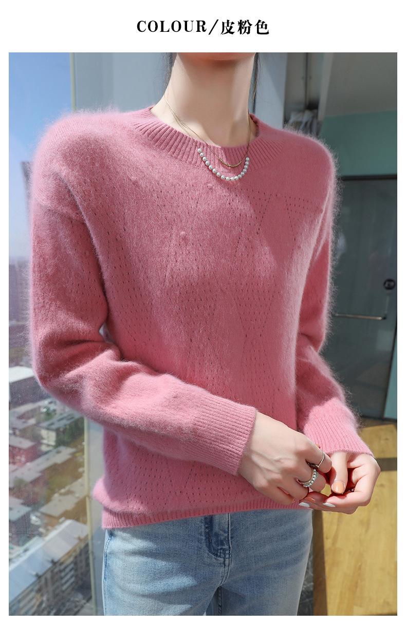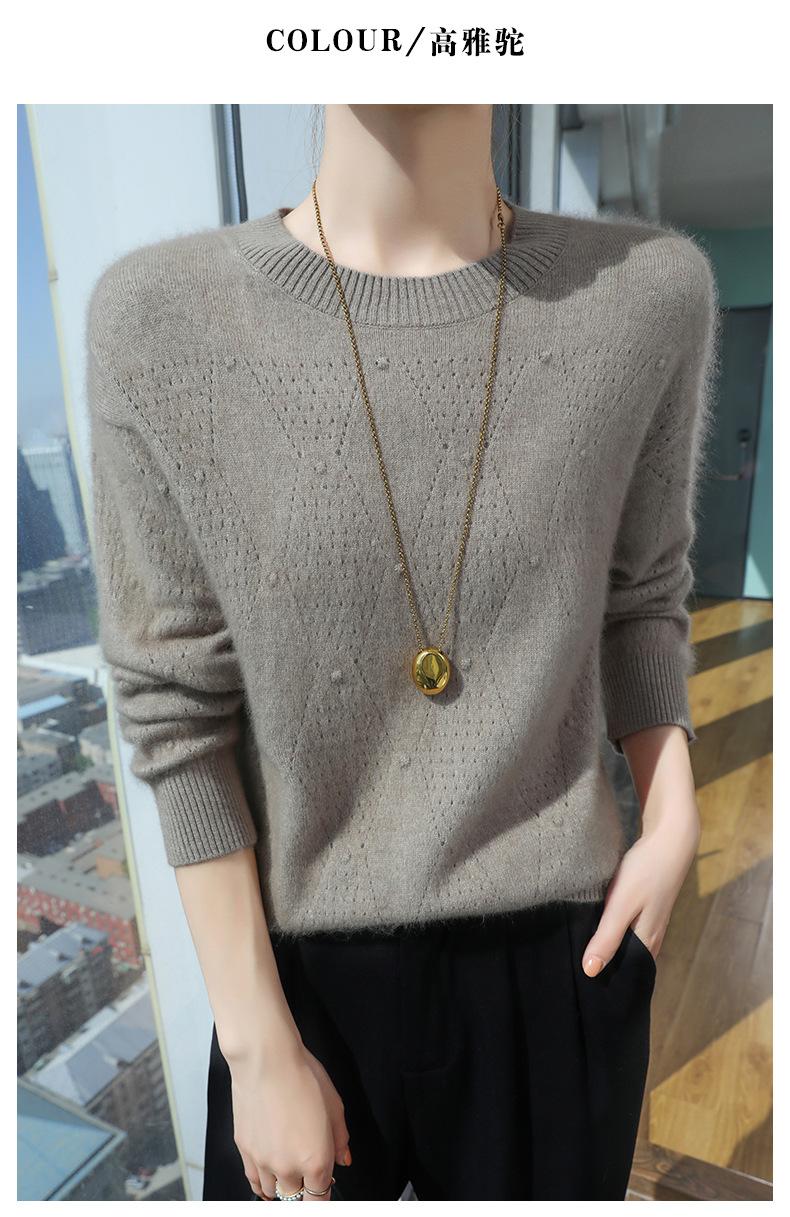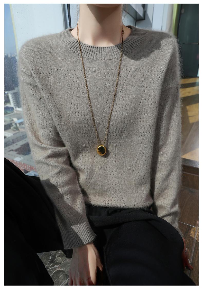 Suéter de punto de cuello redondo de visón, novedad de primavera y otoño de 2025, suéter holgado y calado, suéter de capa base cálido, ropa interior para mujer