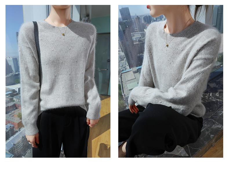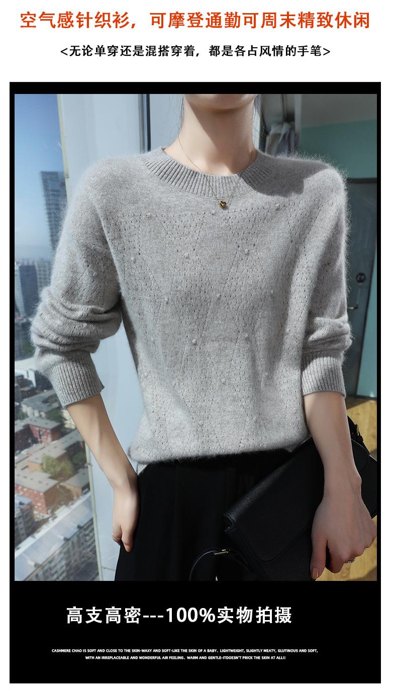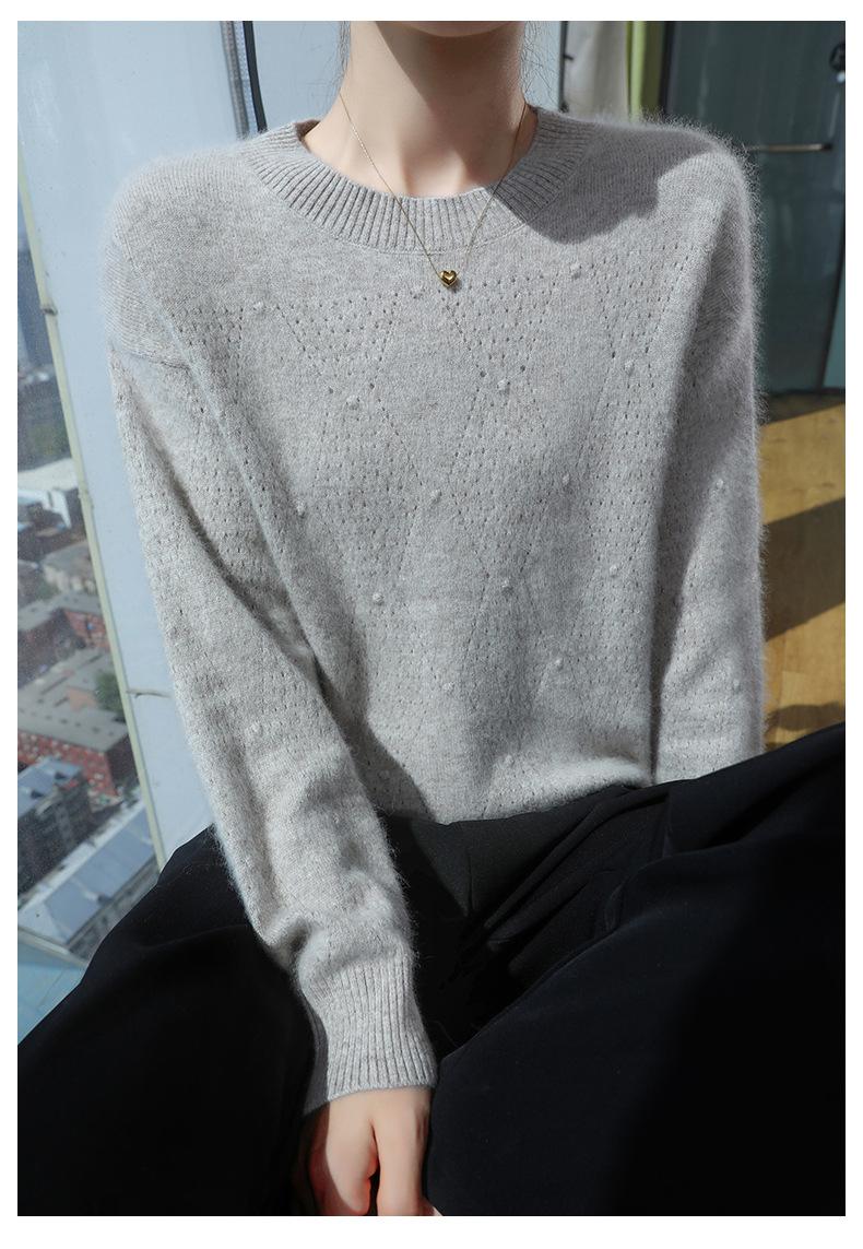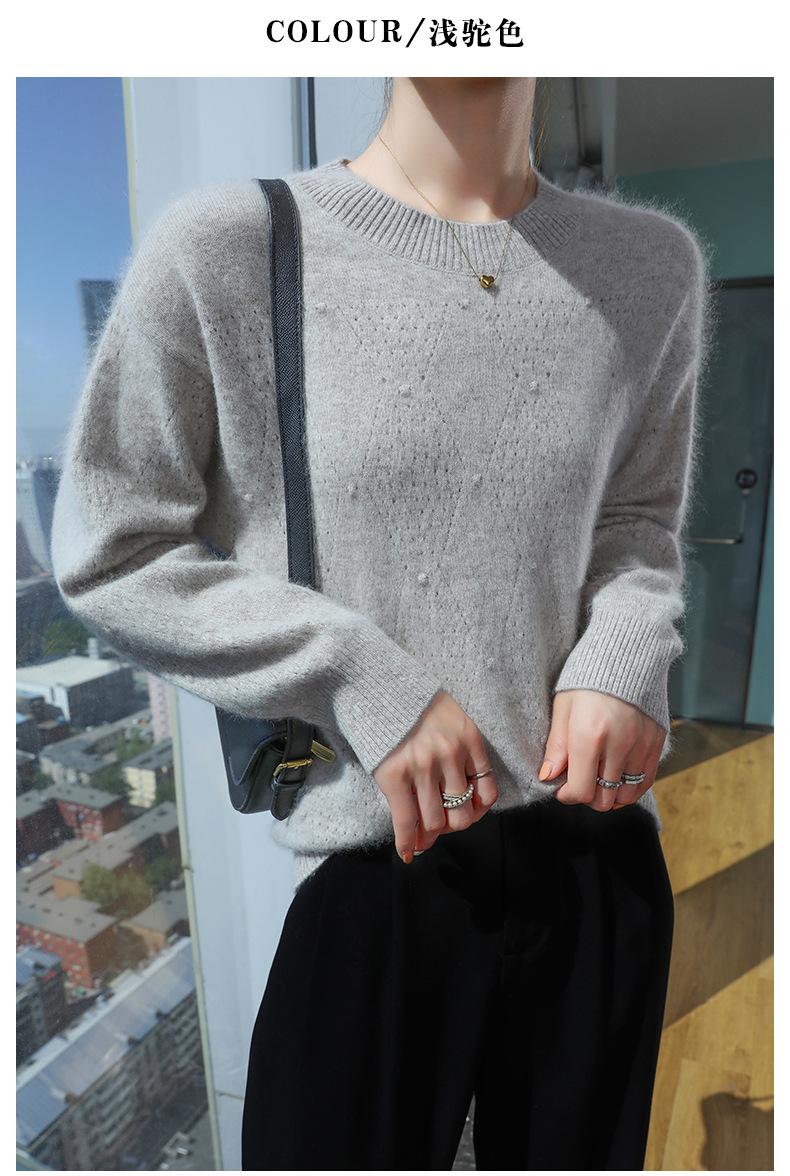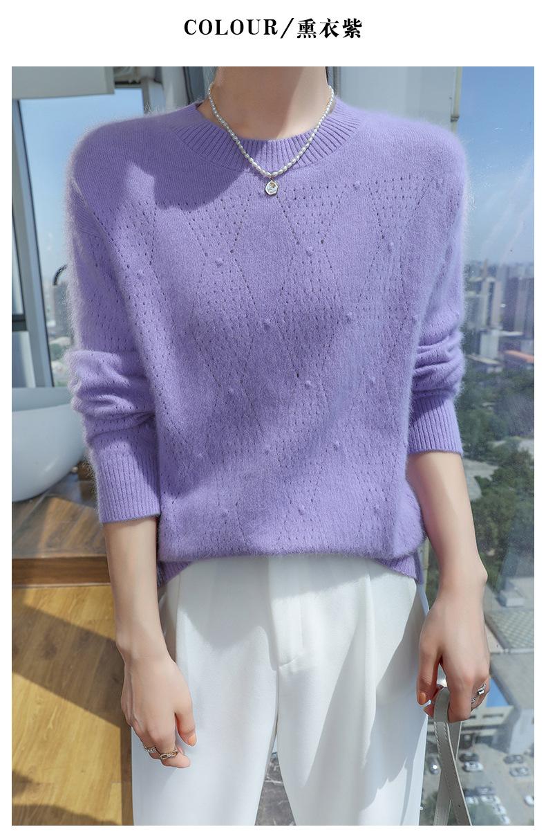 Suéter de punto de cuello redondo de visón, novedad de primavera y otoño de 2025, suéter holgado y calado, suéter de capa base cálido, ropa interior para mujer