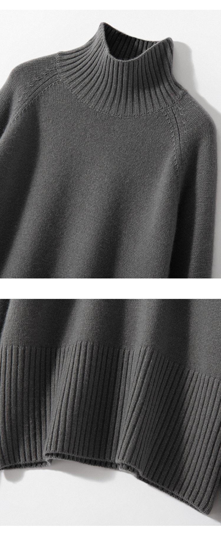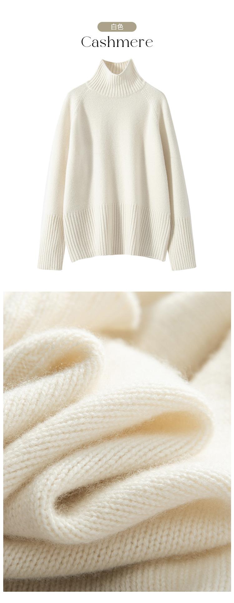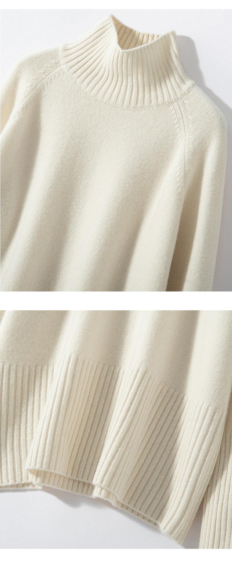 Suéter de cachemira de montaña de otoño e invierno con mangas raglán de cinco pines, camisa de base de punto para mujer, suéter grueso suelto de manga larga con cuello semialto