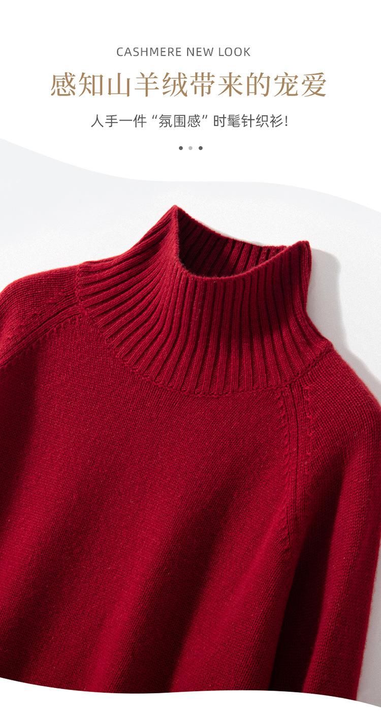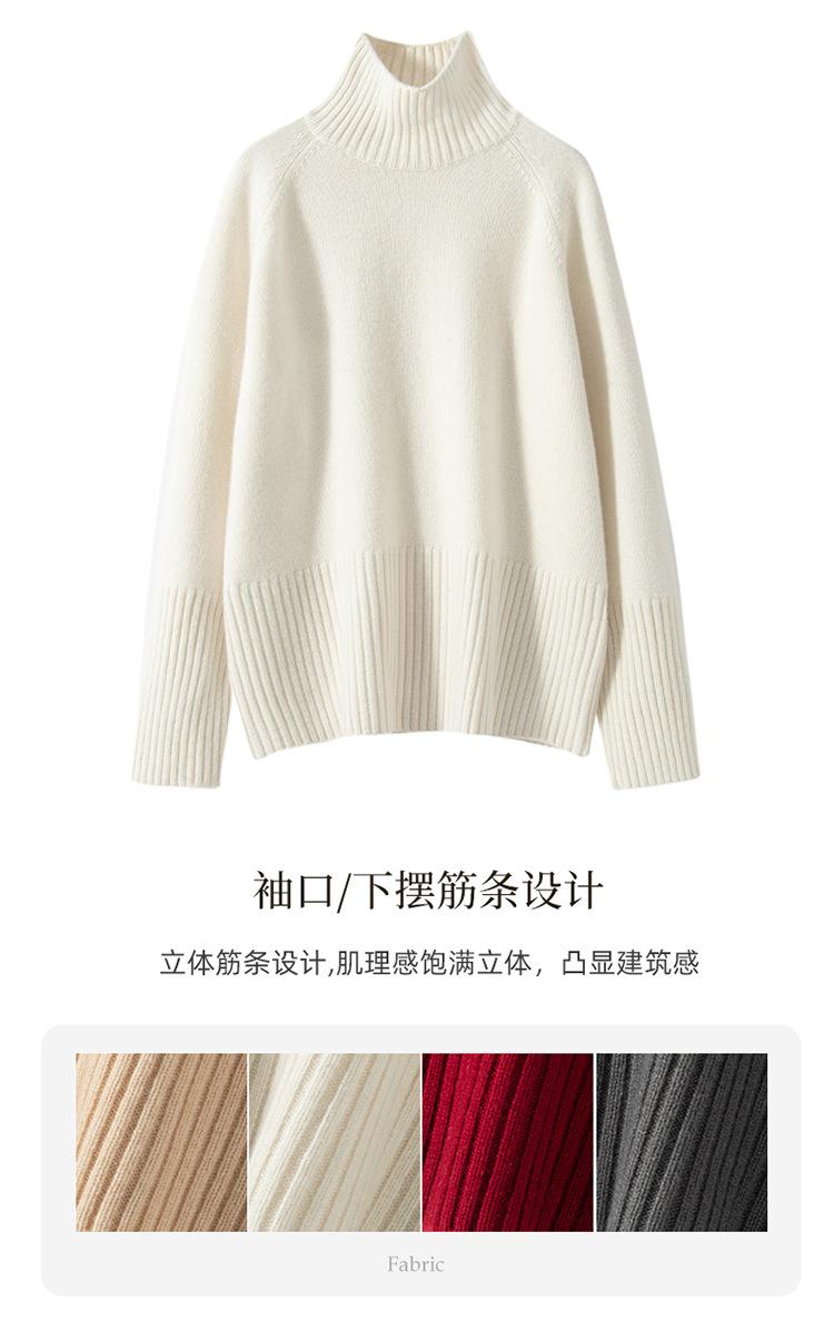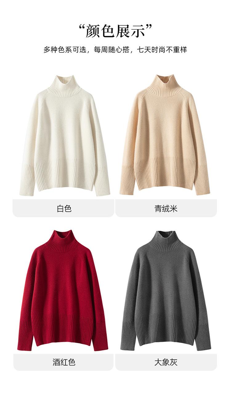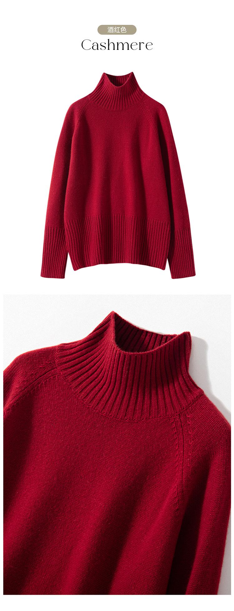 Suéter de cachemira de montaña de otoño e invierno con mangas raglán de cinco pines, camisa de base de punto para mujer, suéter grueso suelto de manga larga con cuello semialto