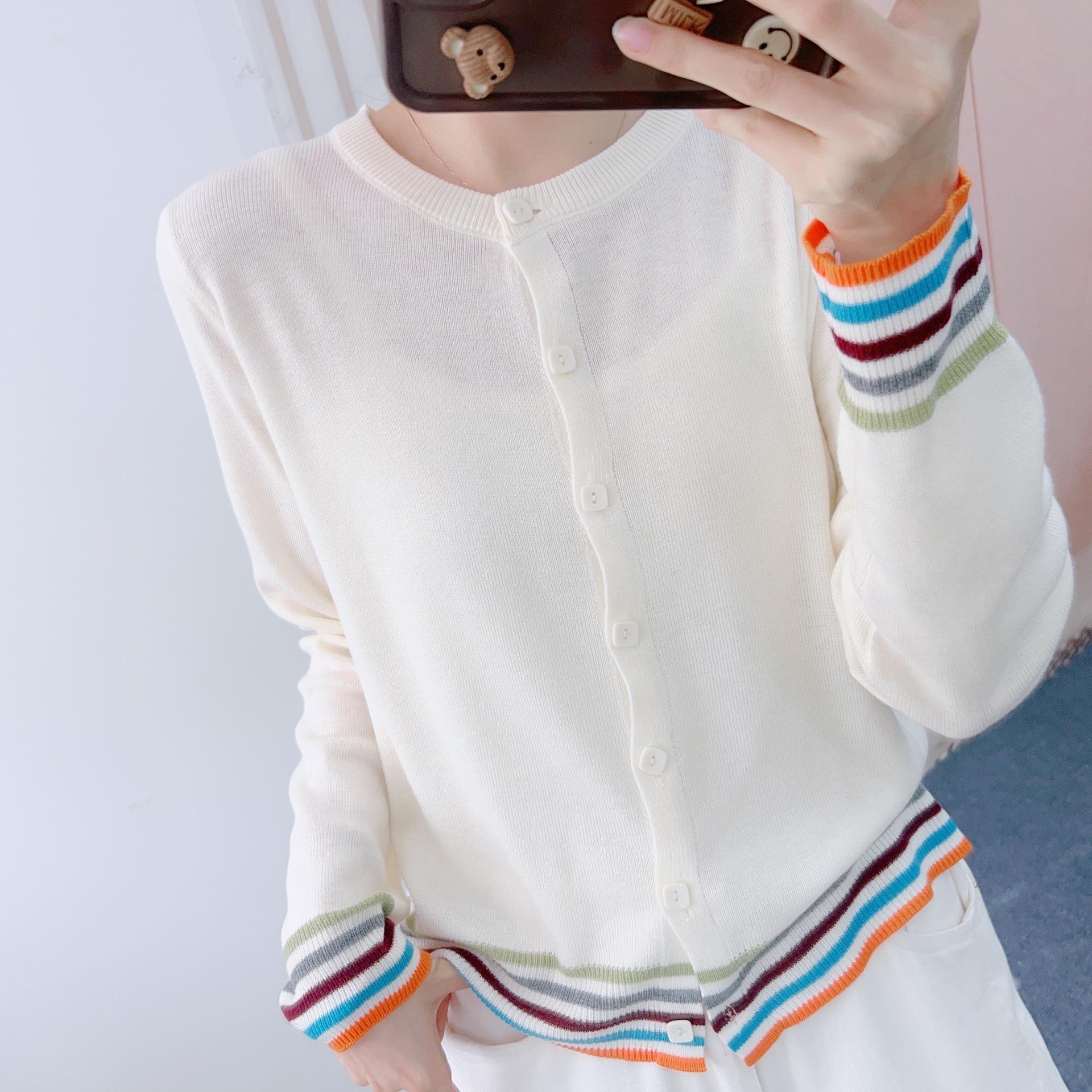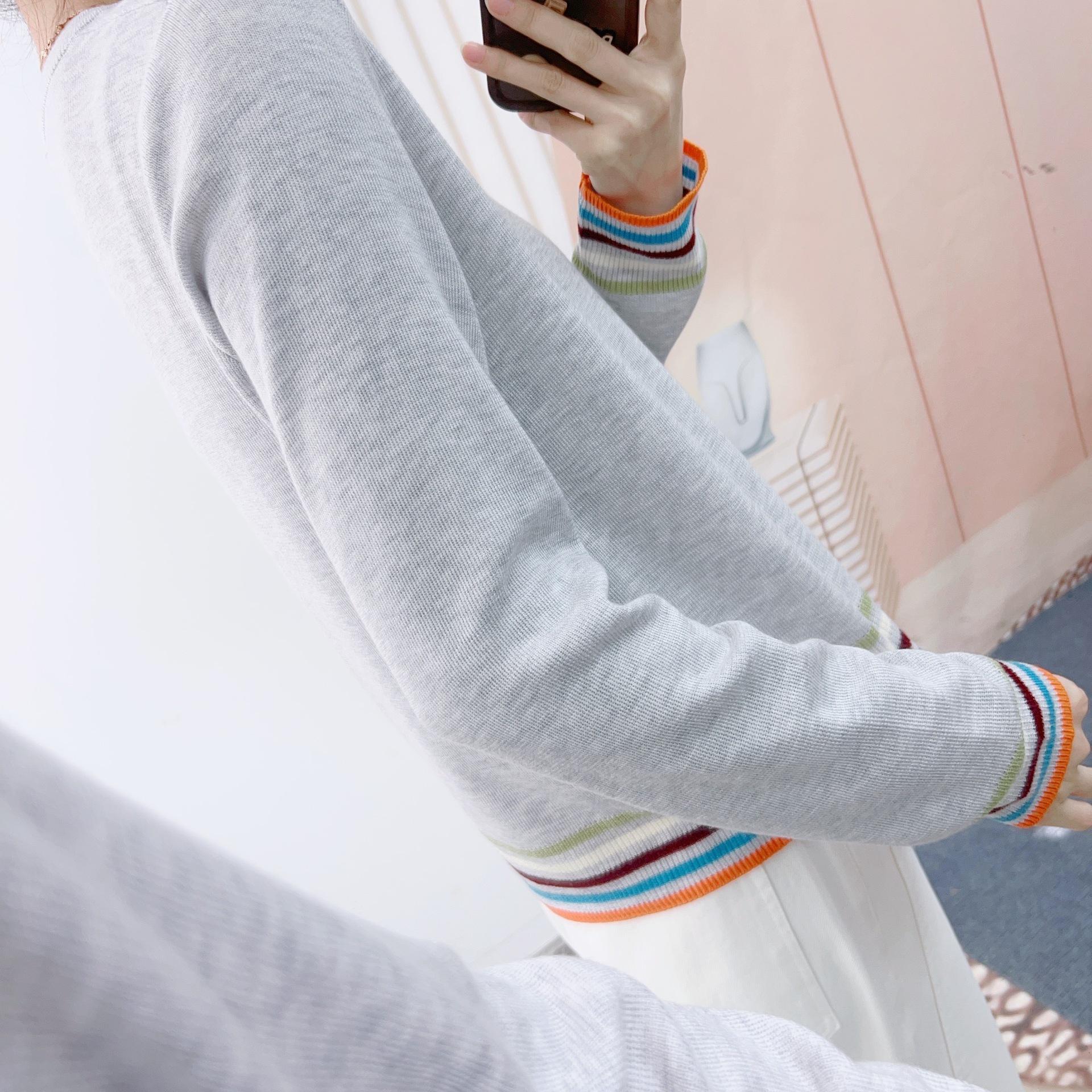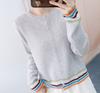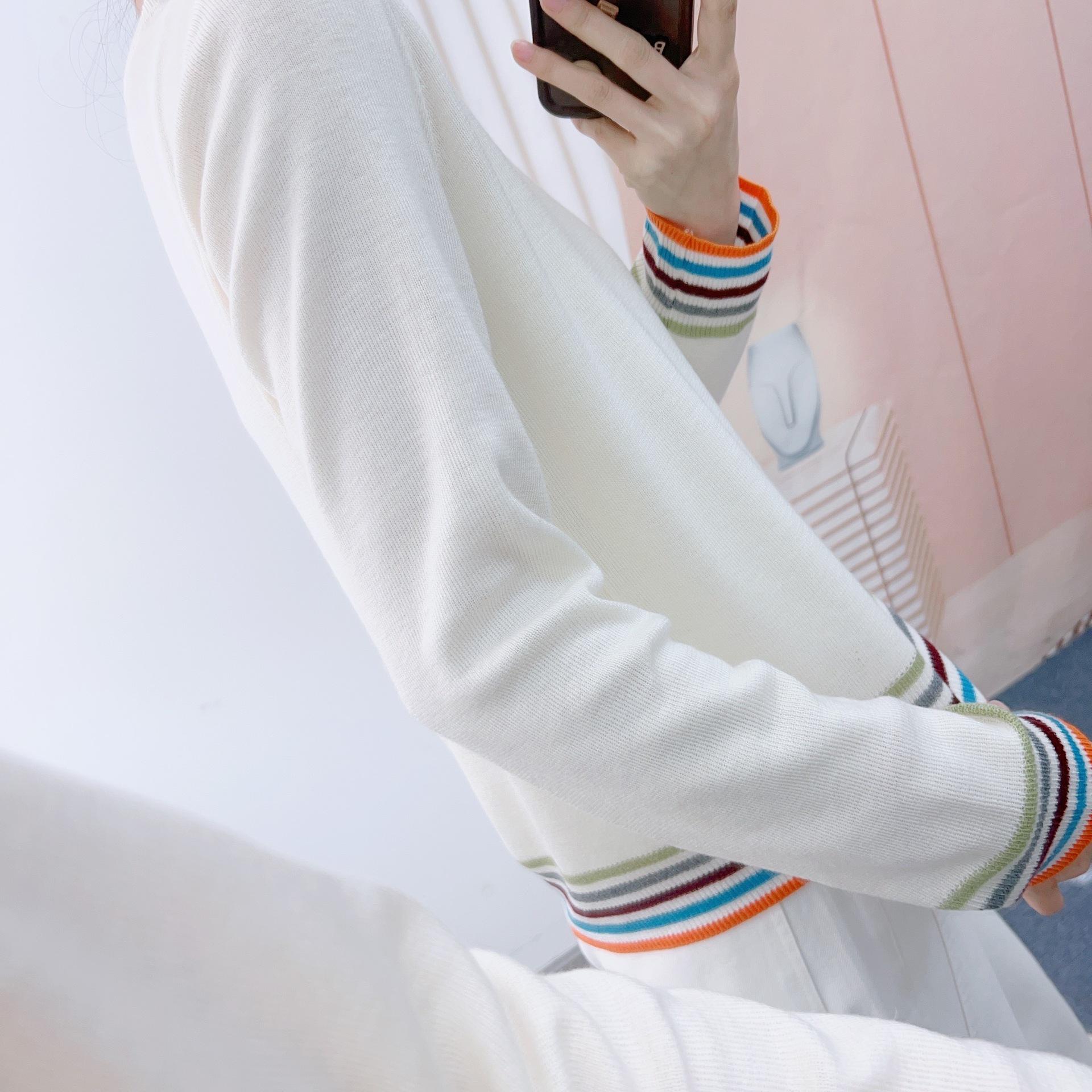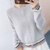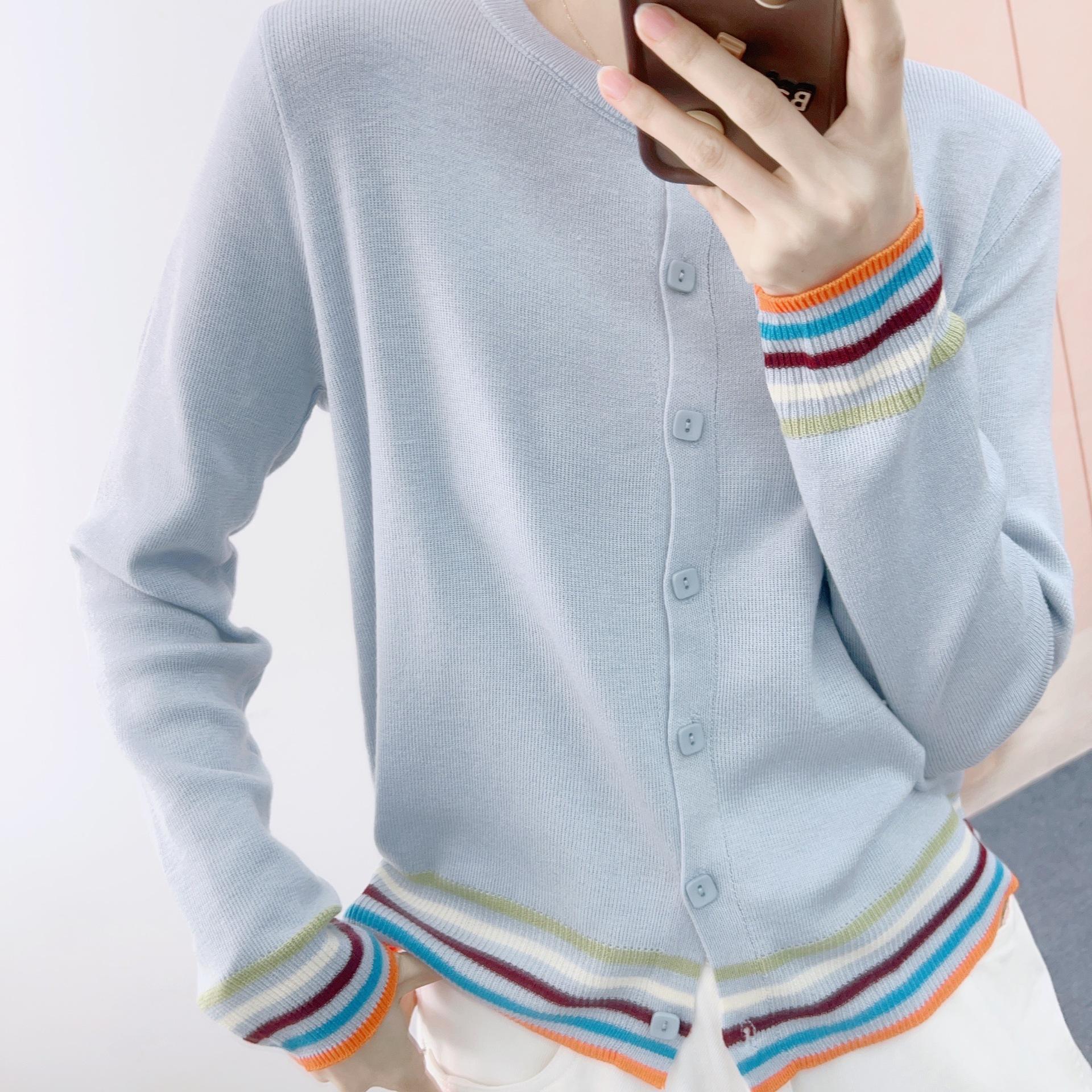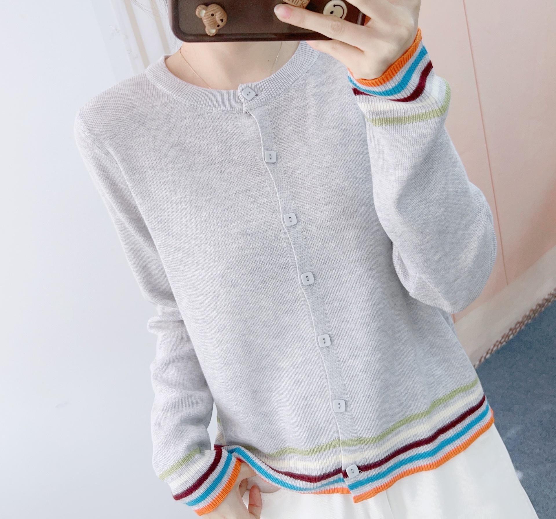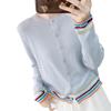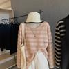 Primavera 2025 Casual Manga Rayada Versátil Estilo Coreano Hebilla Abierta Adelgazante Suave Suéter de Manga Larga 018