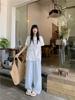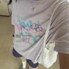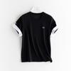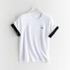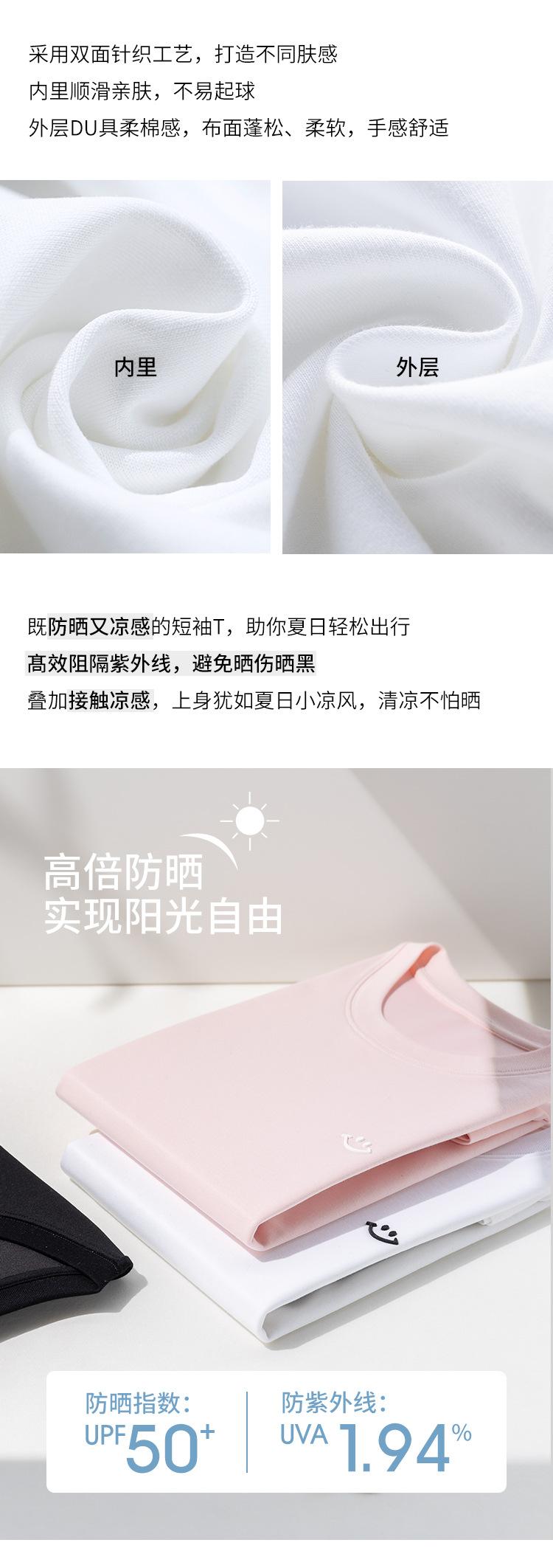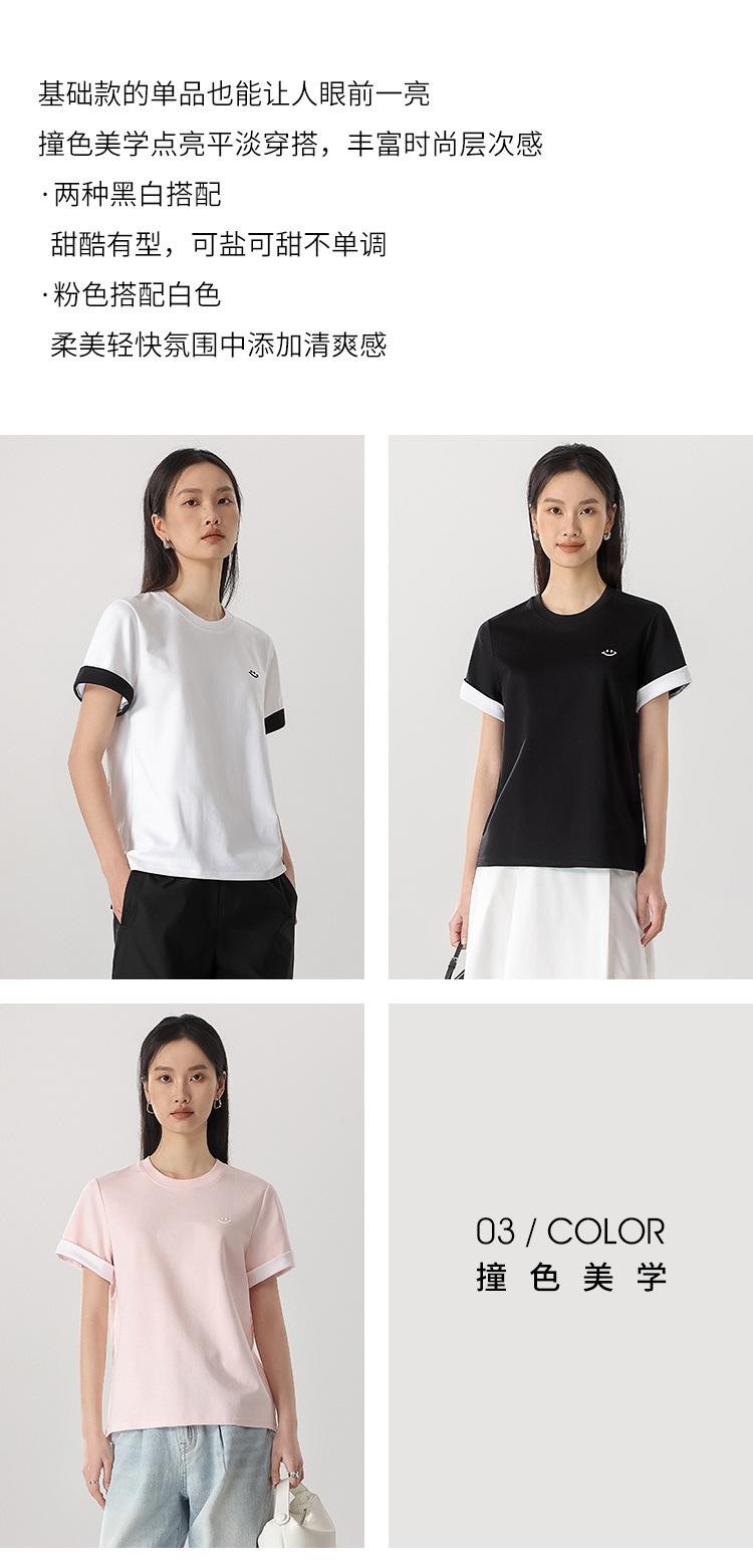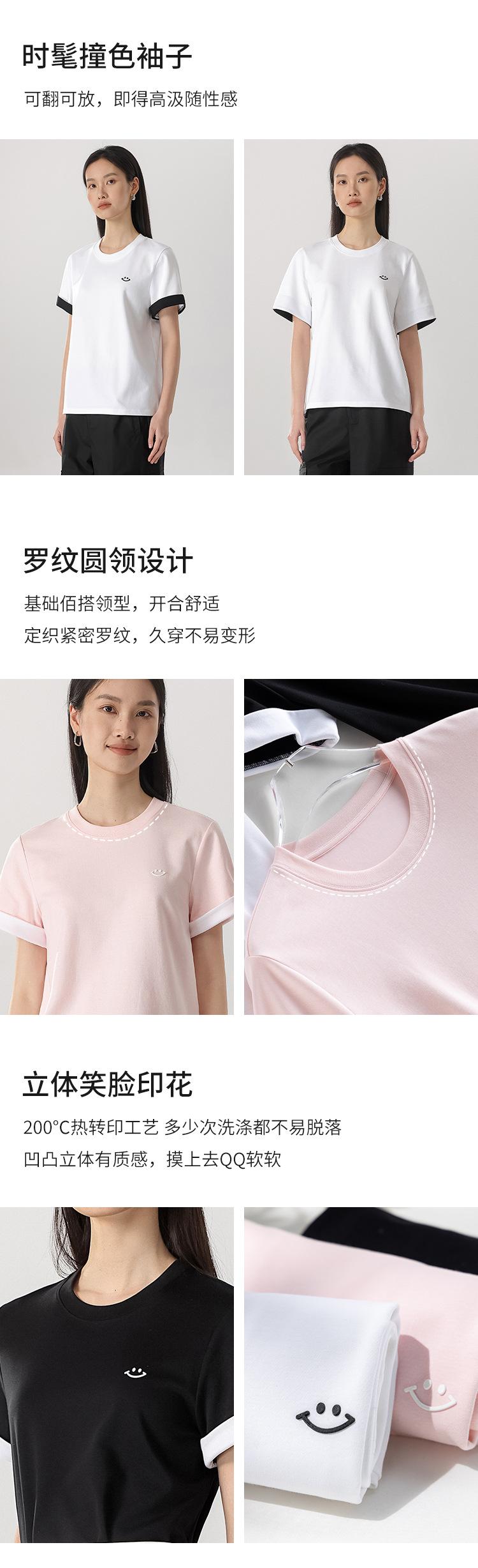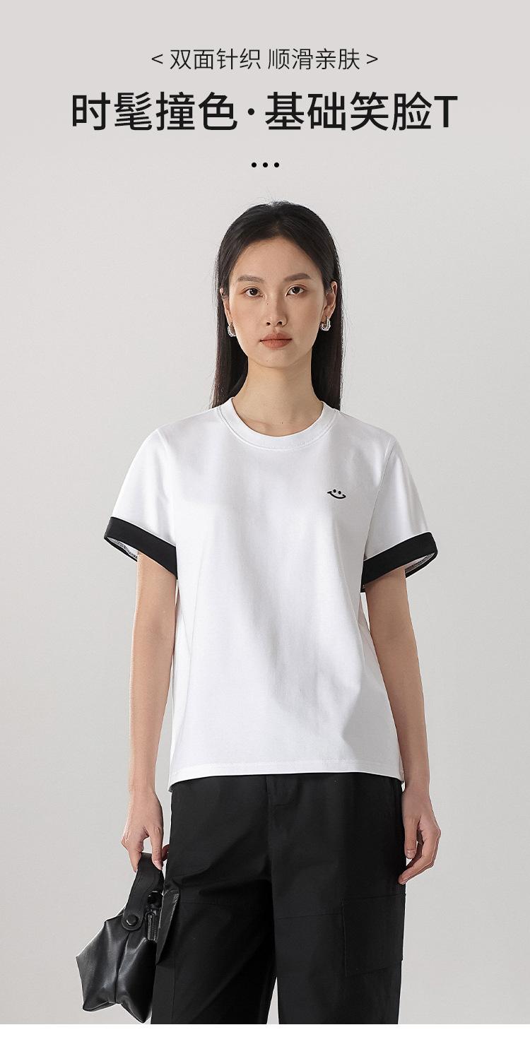 Camiseta de manga corta con protector solar para mujer (2025), cuello redondo, blanca, estampada, holgada, con puños interiores de color en contraste, primavera y verano.
