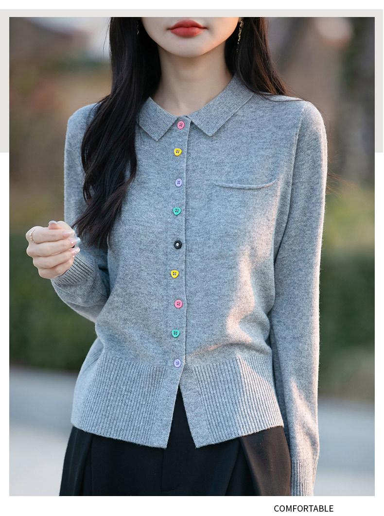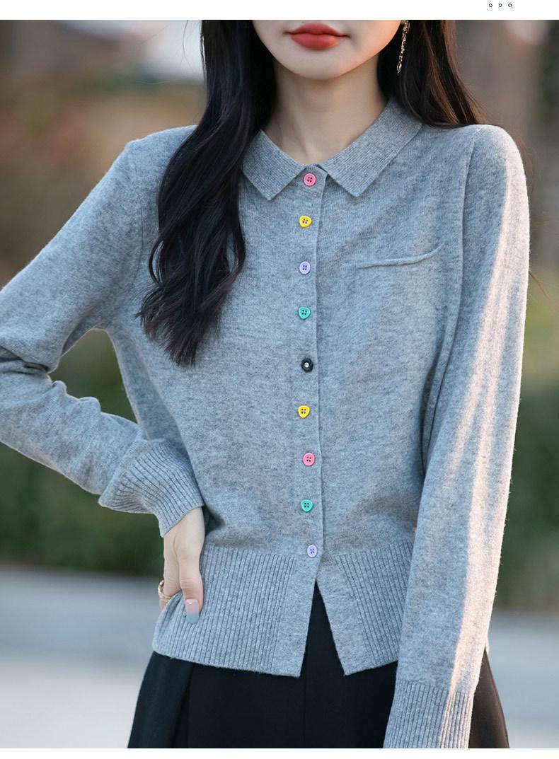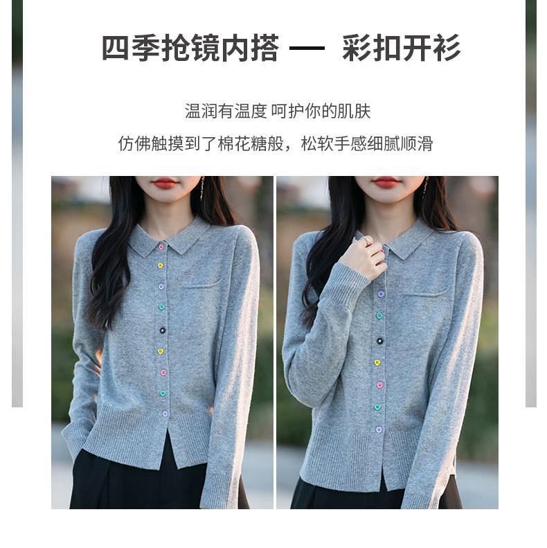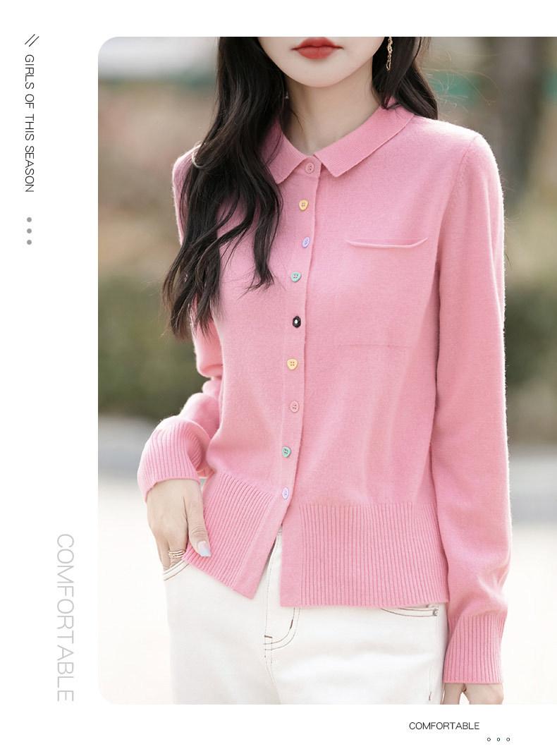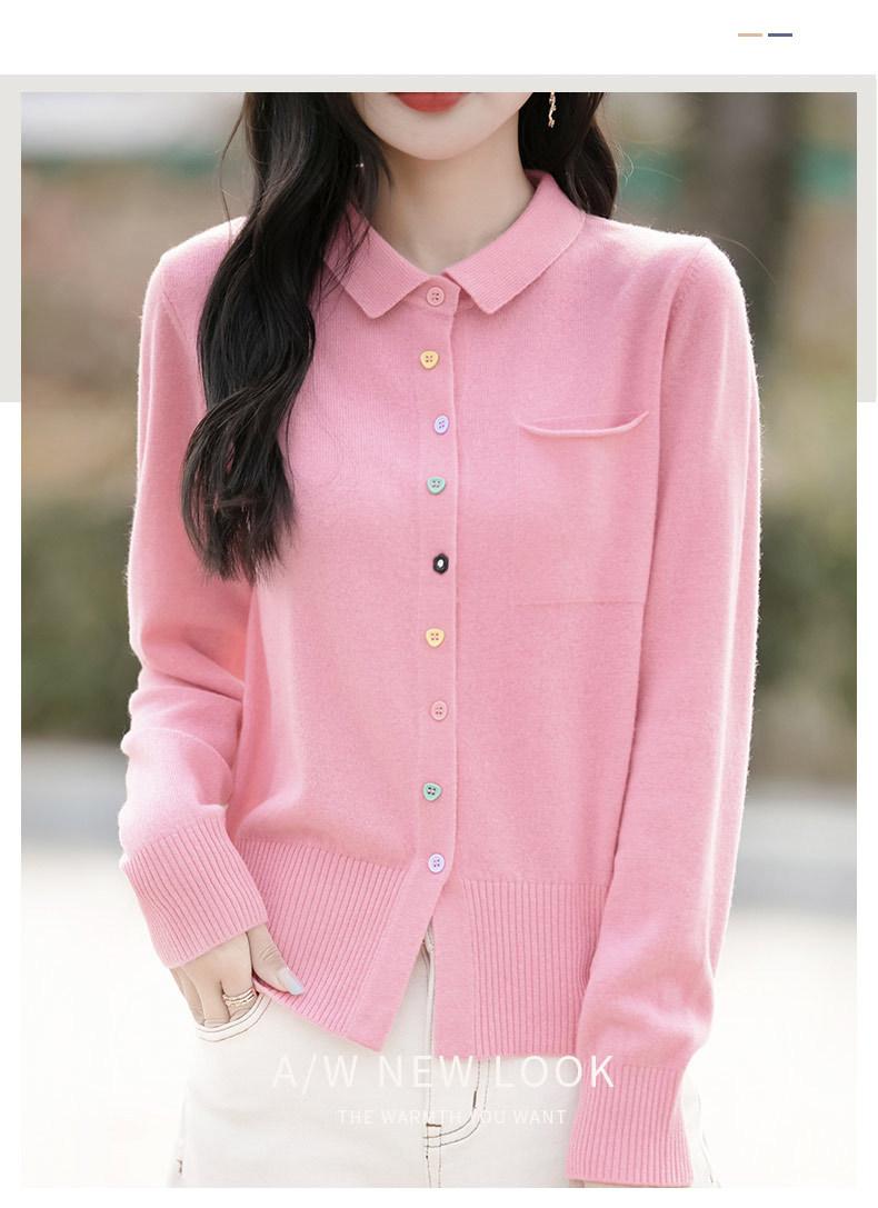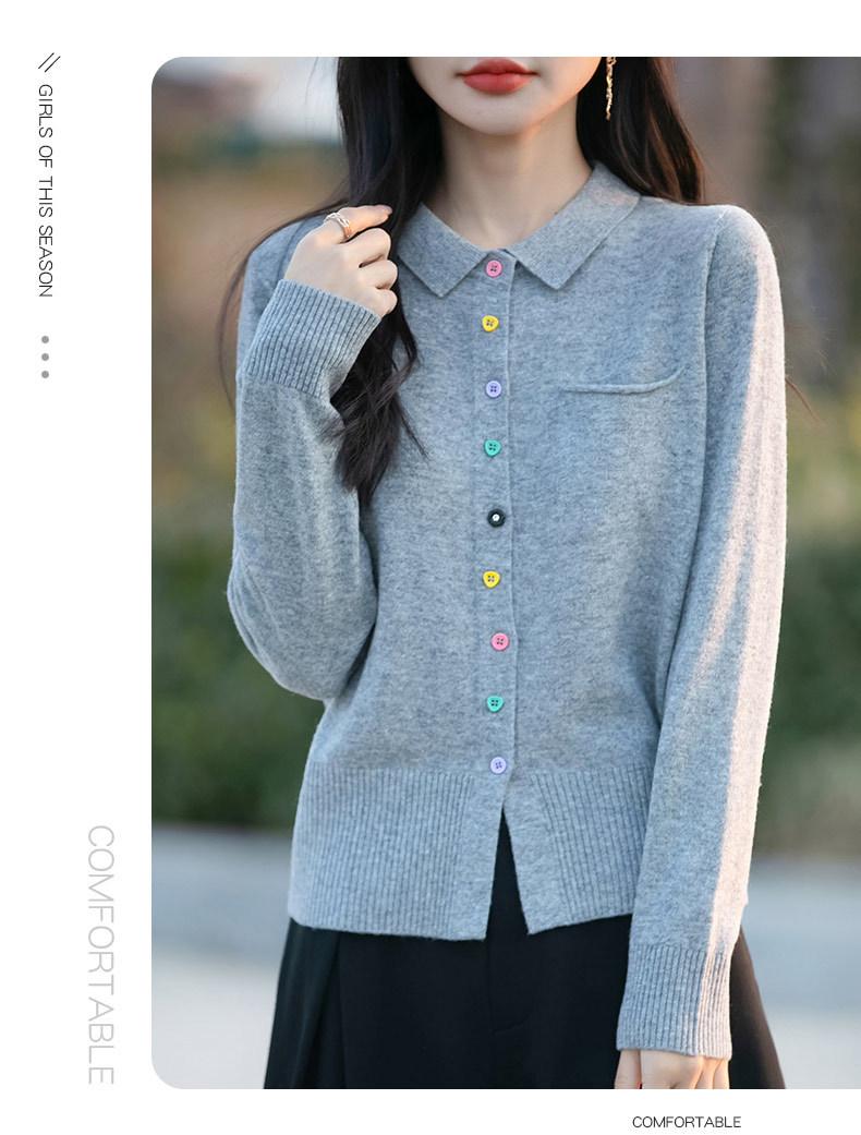 Cárdigan de punto con cuello polo y botones coloridos para mujer 2025 Nuevo exterior de manga larga con aspecto adelgazante suéter camisa que reduce la edad