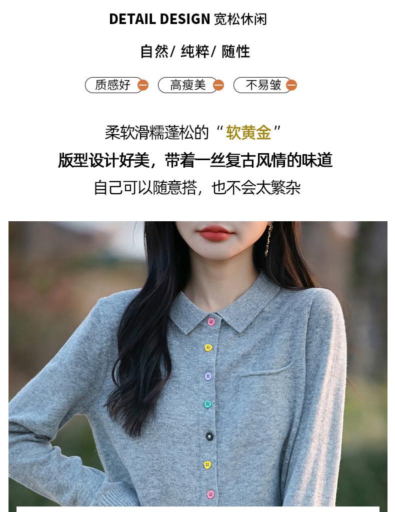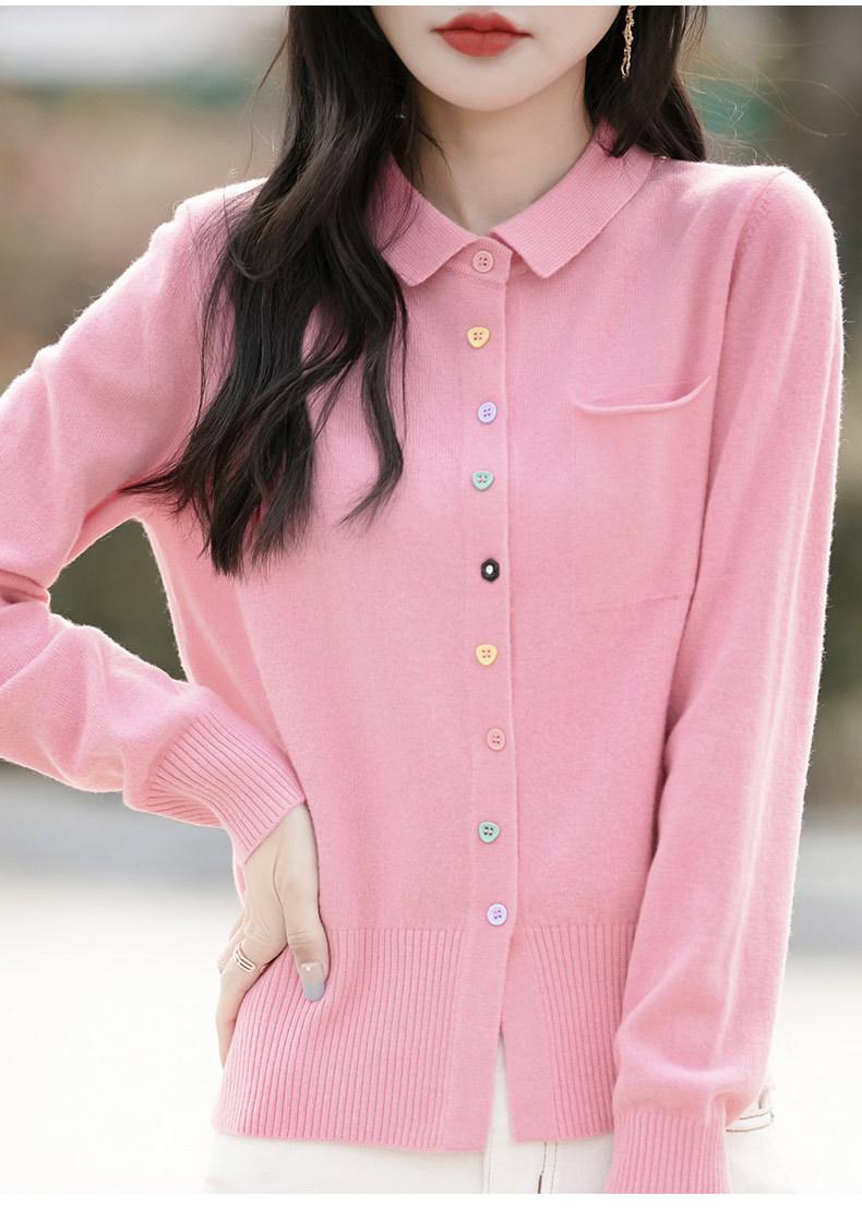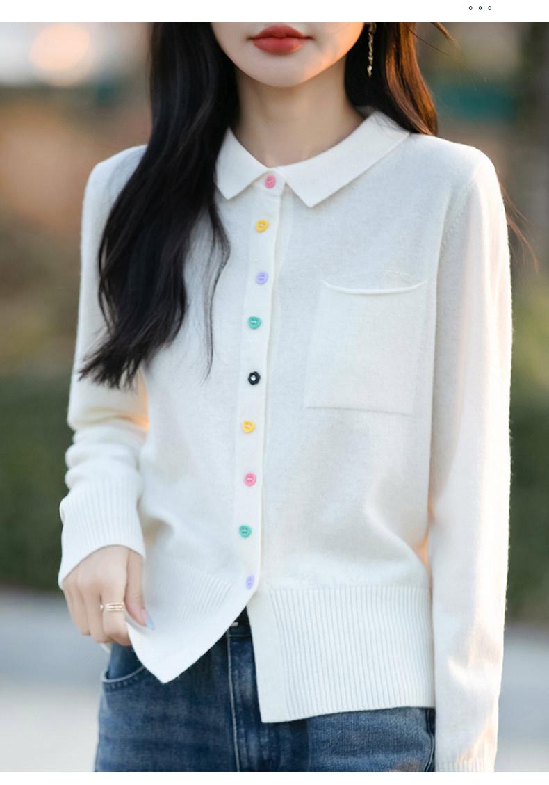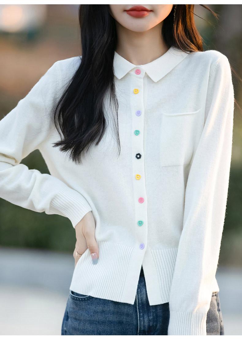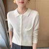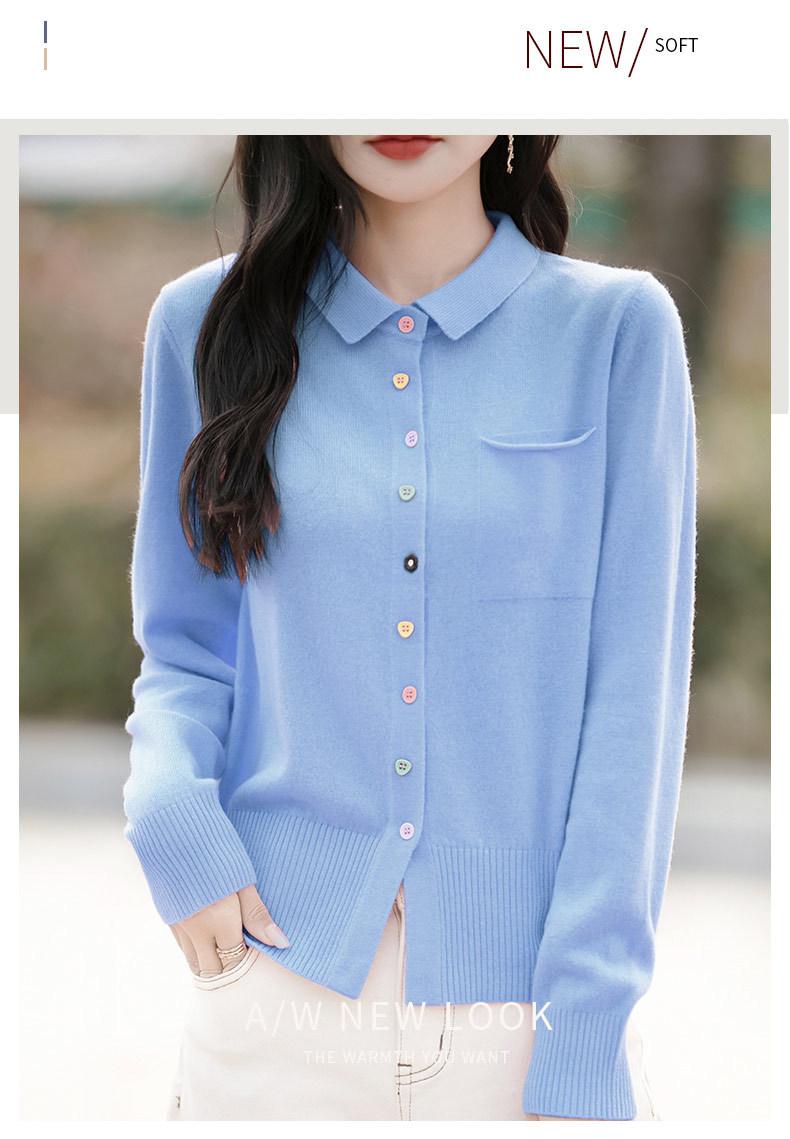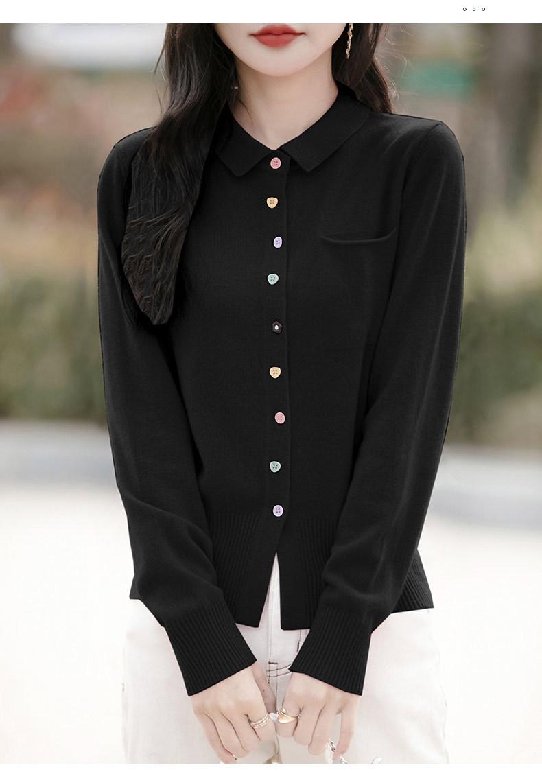 Cárdigan de punto con cuello polo y botones coloridos para mujer 2025 Nuevo exterior de manga larga con aspecto adelgazante suéter camisa que reduce la edad
