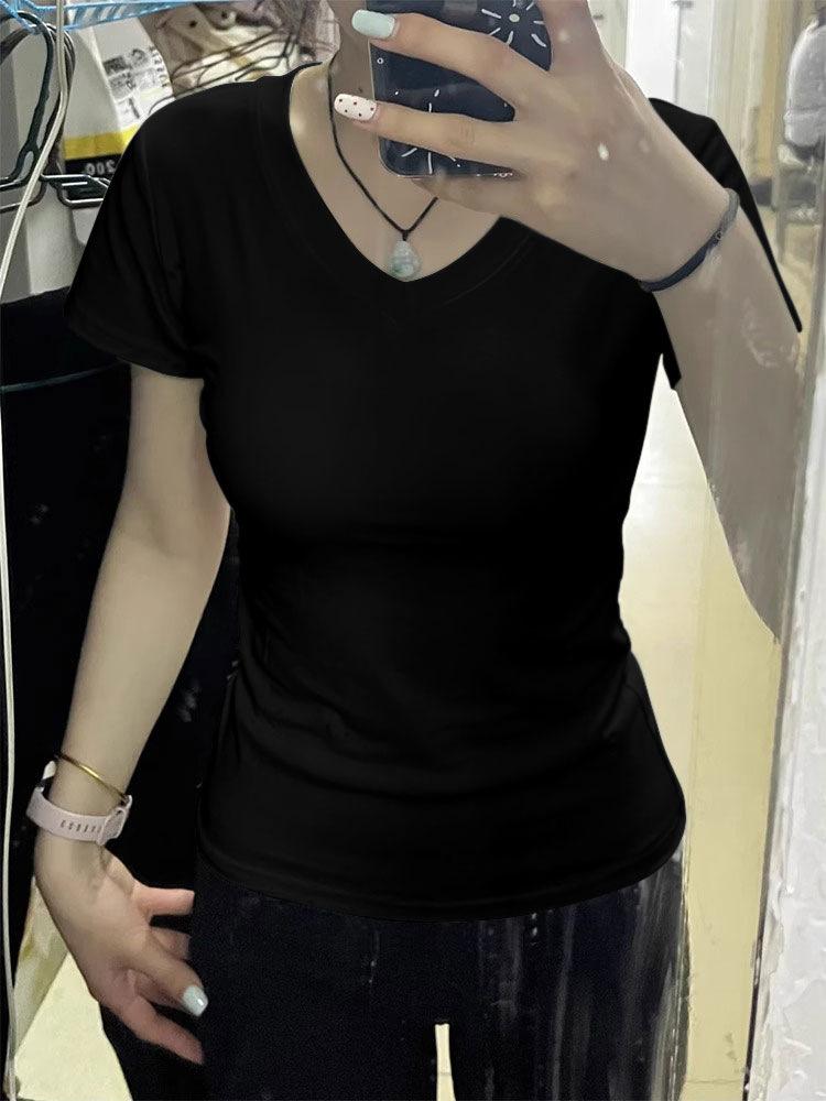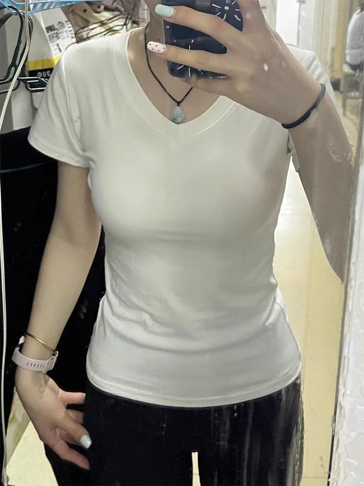 Camiseta entallada estilo Spice Girl americano Entallada Cintura ajustada Comodín Moderna Deseo puro Sexy Moda Chic Top plisado Ins