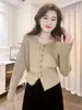 Cárdigan de punto elegante de estilo Chanel para mujer, otoño 2025, nuevo, único, súper bonito, falso, suéter azul de dos piezas