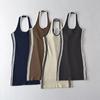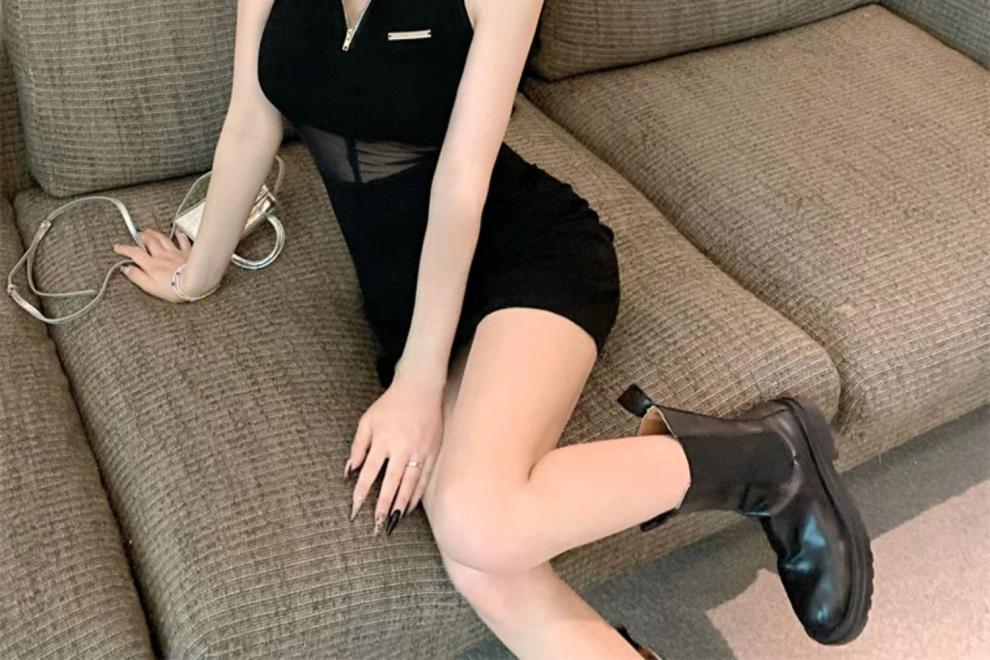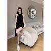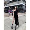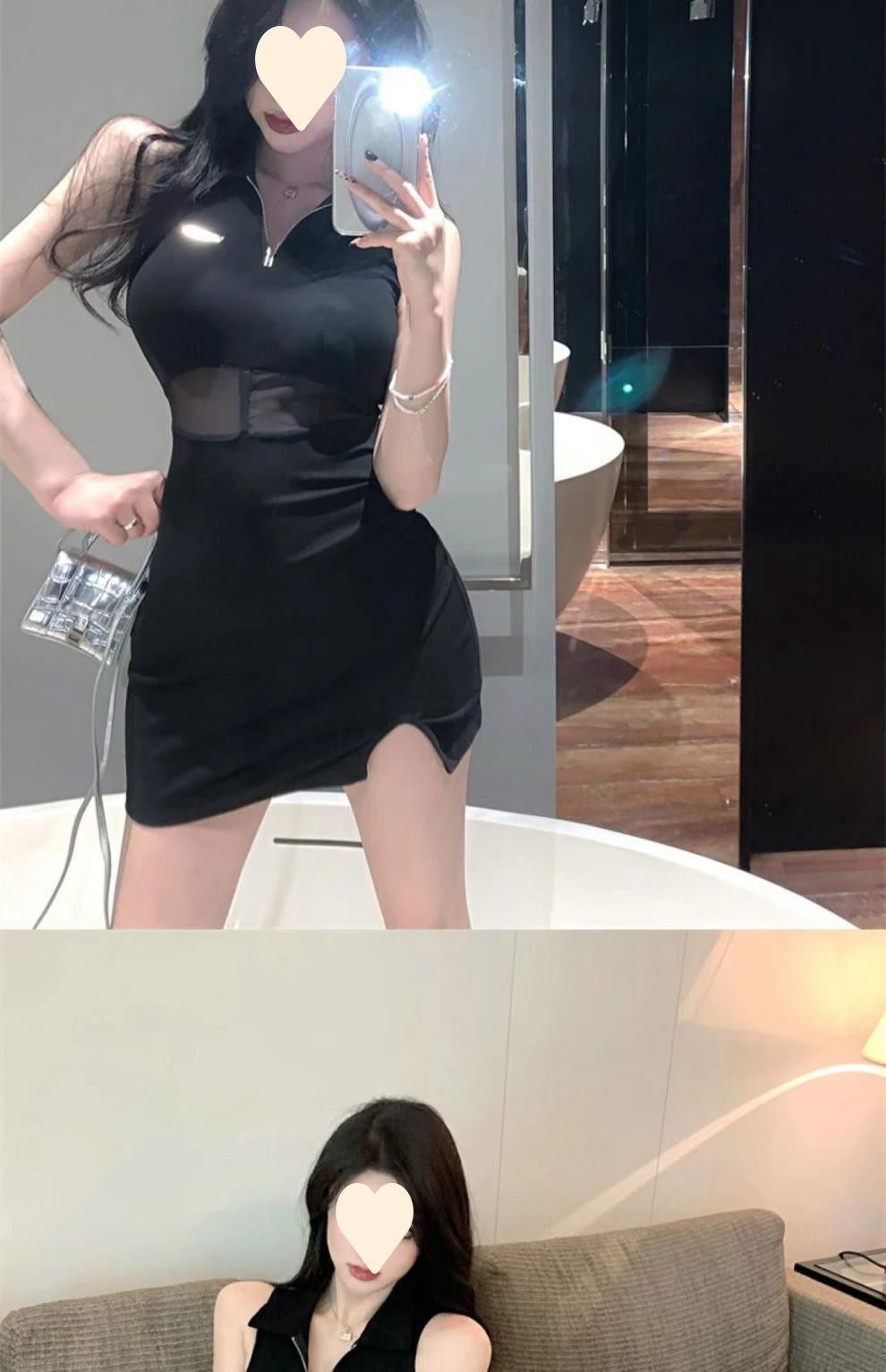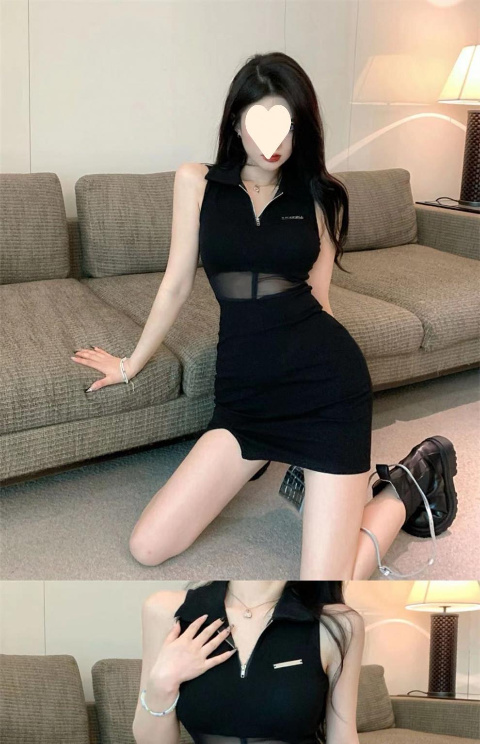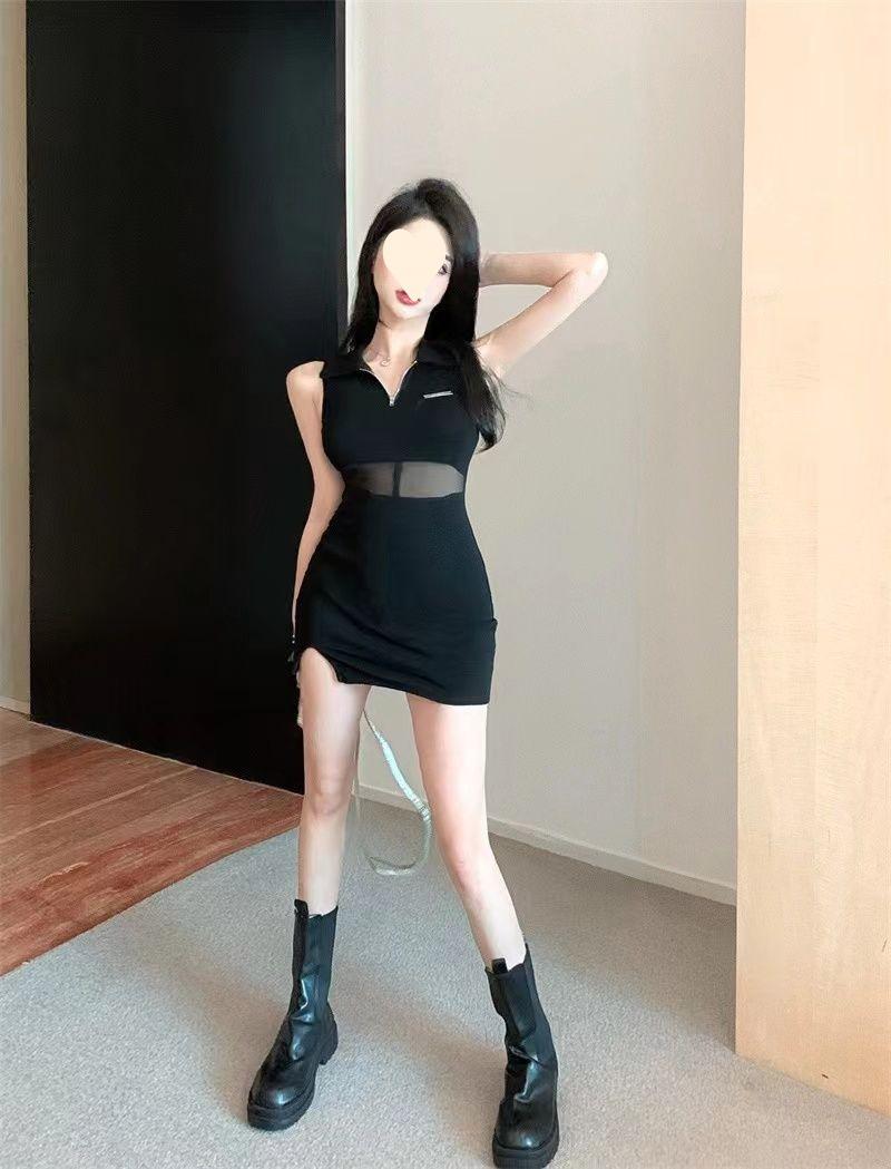 Vestido tipo chaleco sin mangas negro con solapa y costuras de malla de Spice Girl para mujer, falda sexy de cintura dividida en la cadera de verano